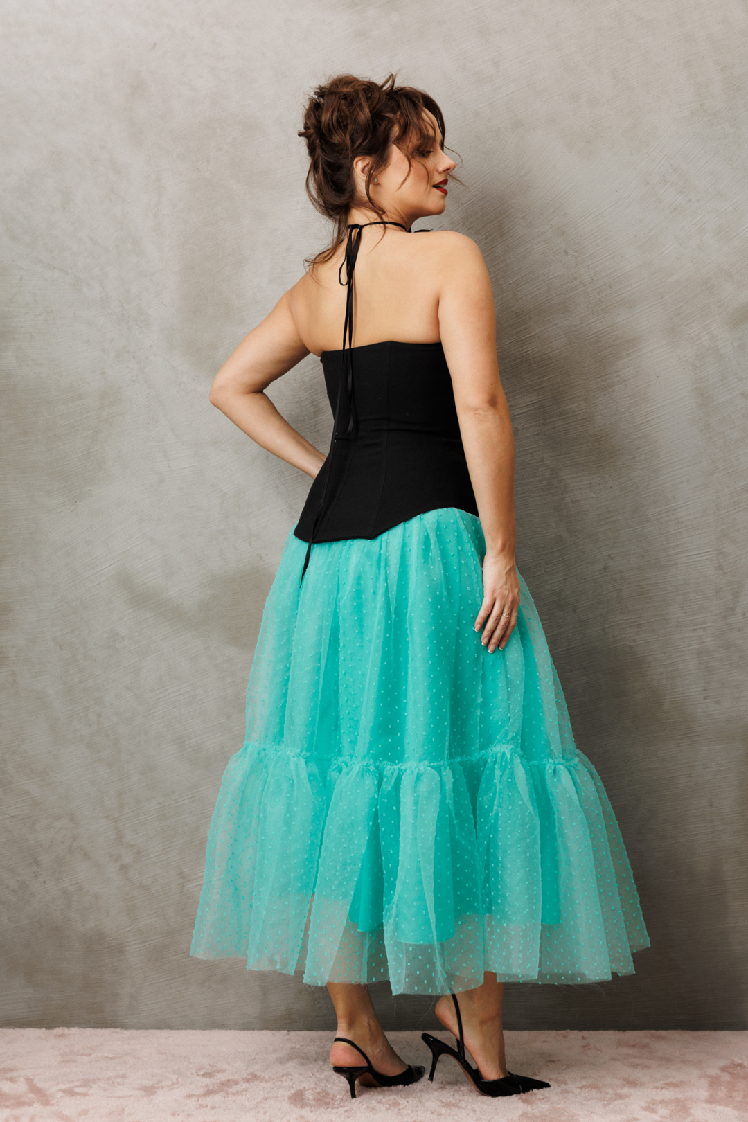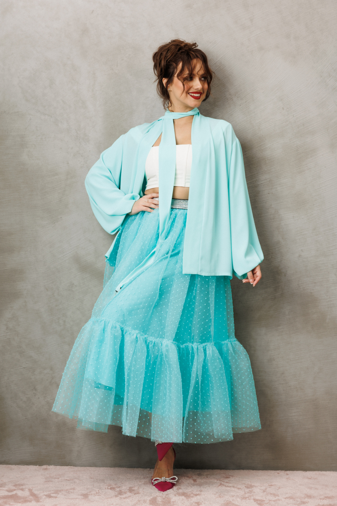 Оригинальная яркая юбка от бренда Anastasia, идеальный для любого случая. Юбка макси из 2-х видов ткани: верх с отрезным валаном из органзы, подкладка юбка солце из шифона. Пояс на декоративной резинке. Фасон универсален, а использование резинки на поясе повышает комфортность носки, позволяя юбке адаптироваться под индивидуальные особенности фигуры. Юбку легко сочетать с различными верхами: топ, блузка, футболка, кружевной жакет, свитер или жакет из тексиля - все это позволит создавать различные образы на разные случаи. Длина по спинке 68см. Длина рукава (с манжетой): 60см. Длина юбки: 90 см