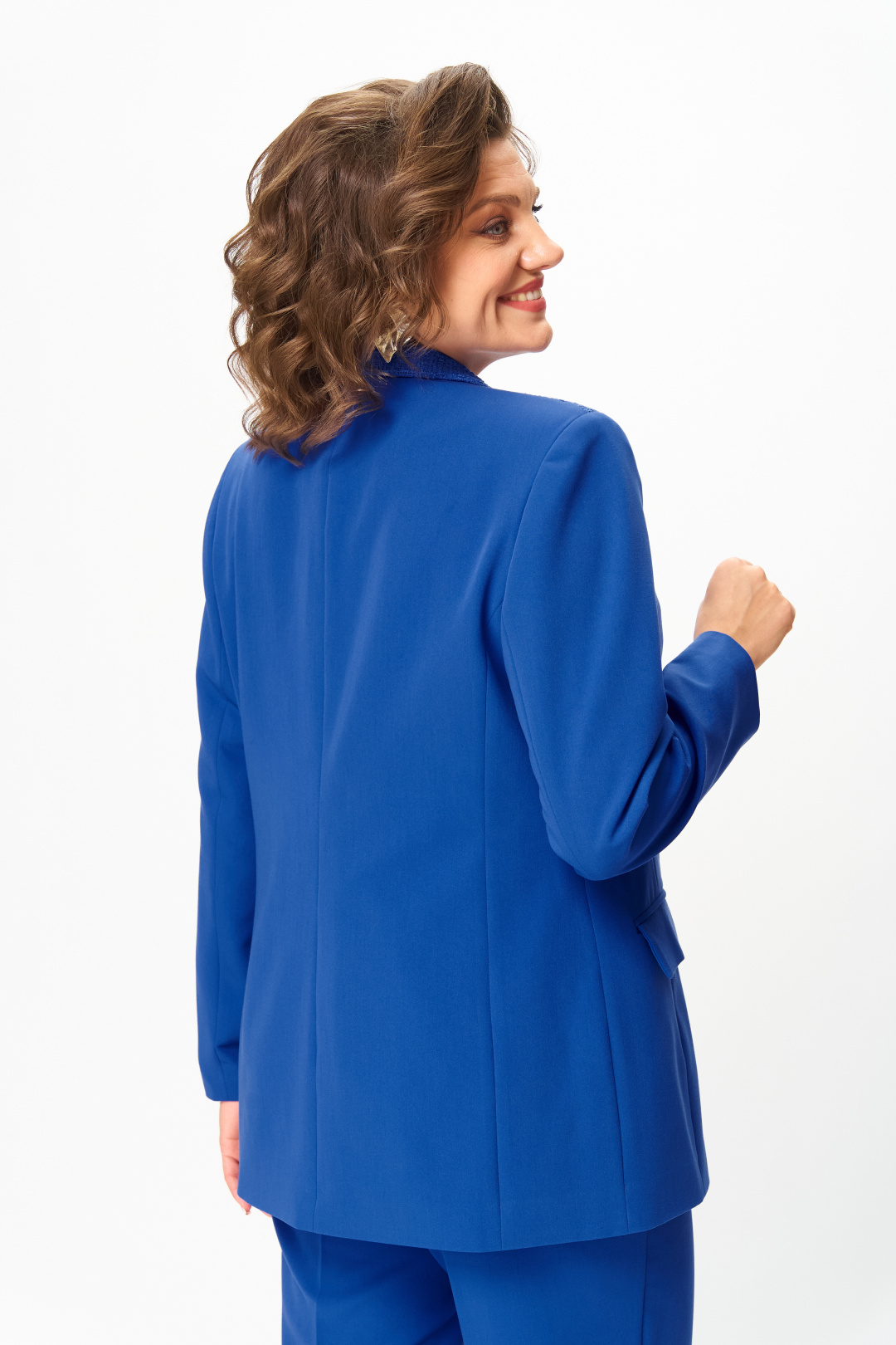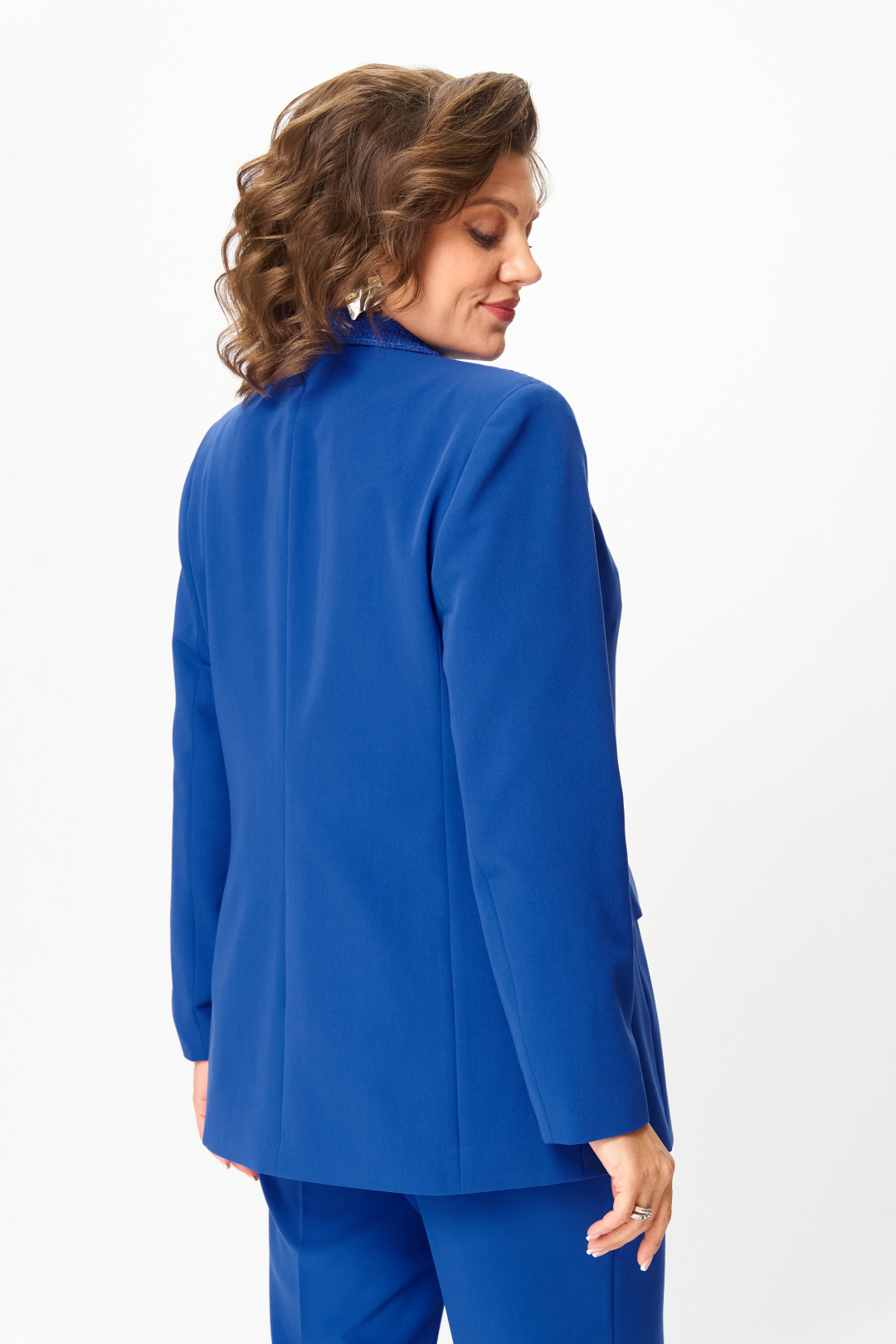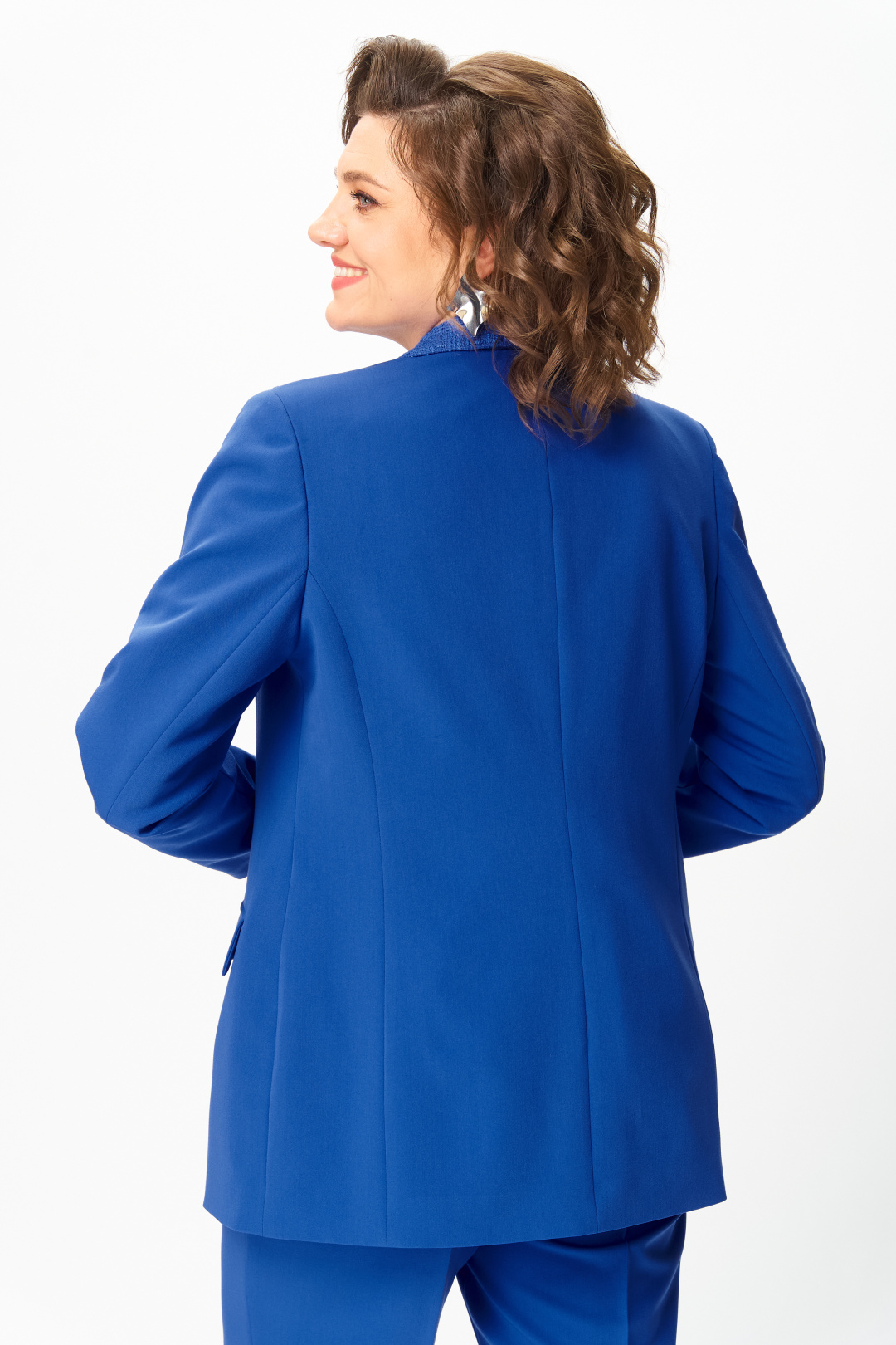 Костюм полуприлегающего силуэта, состоящий из жакета и брюк, выполнен из однотонной костюмной ткани. Ткань верха имеет механическое растяжение благодаря содержанию в ней эластана. Брючный костюм идеальный вариант как на торжественные мероприятия, так и отличный офисный вариант.