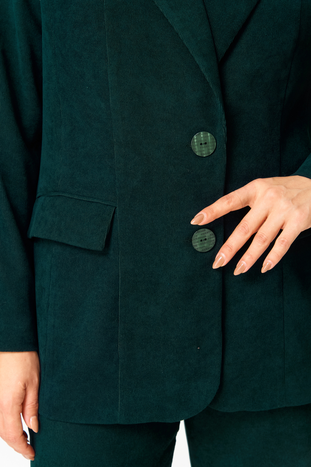 Представляем вам стильный блейзер от Anastasia Mak. Этот блейзер из вельвета станет идеальным дополнением к вашему гардеробу. Классический прямой крой идеально подчеркнет вашу фигуру и современный стиль, оставаясь комфортным и теплым. Блейзер легко комбинируется, позволяя составлять как повседневные образы, так и деловые, корпоративные и даже вечерние. Вельветовый материал придает образу дополнительную фактуру, хлопок в составе материала гарантирует комфорт даже при длительной носке. Блейзер на подкладке. Полочка блейзера с центральной застежкой на две петли пуговицы. Полочка с вертикальными рельефами и прорезными карманами с клапанами. Горловина V-образной формы с отложными лацканами и воротником пиджачного типа. Спинка со средним швом и вертикальными рельефами. Рукав втачной, двухшовный. Блейзер на плечиках.