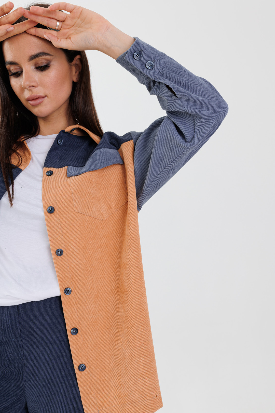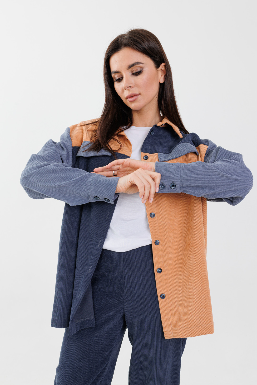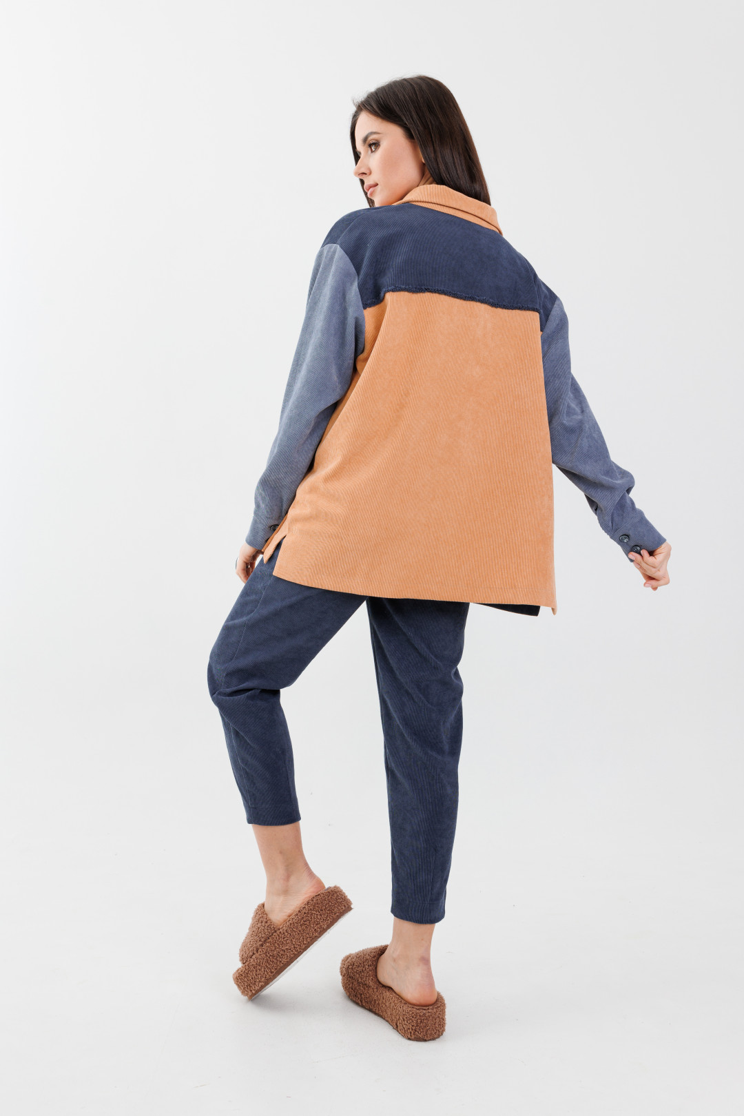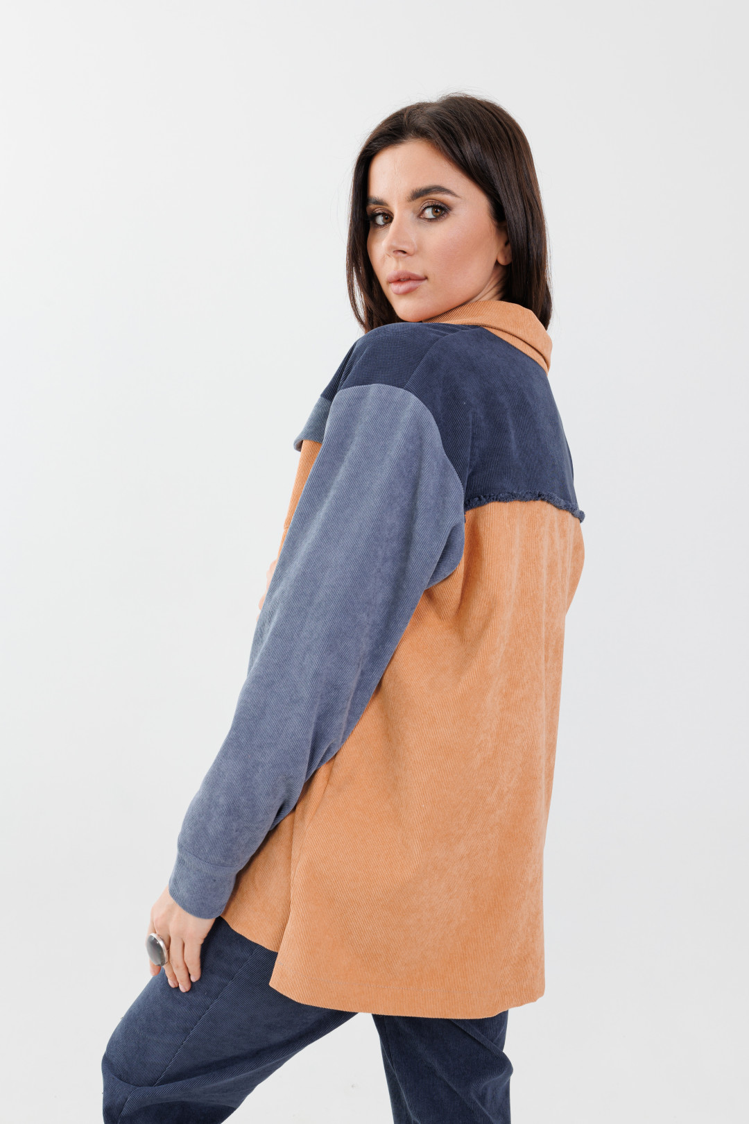 Рубашка прямого силуэта в стиле пэчворк, длина до середины бедра. По спинке кокетка декорированная бахромой.