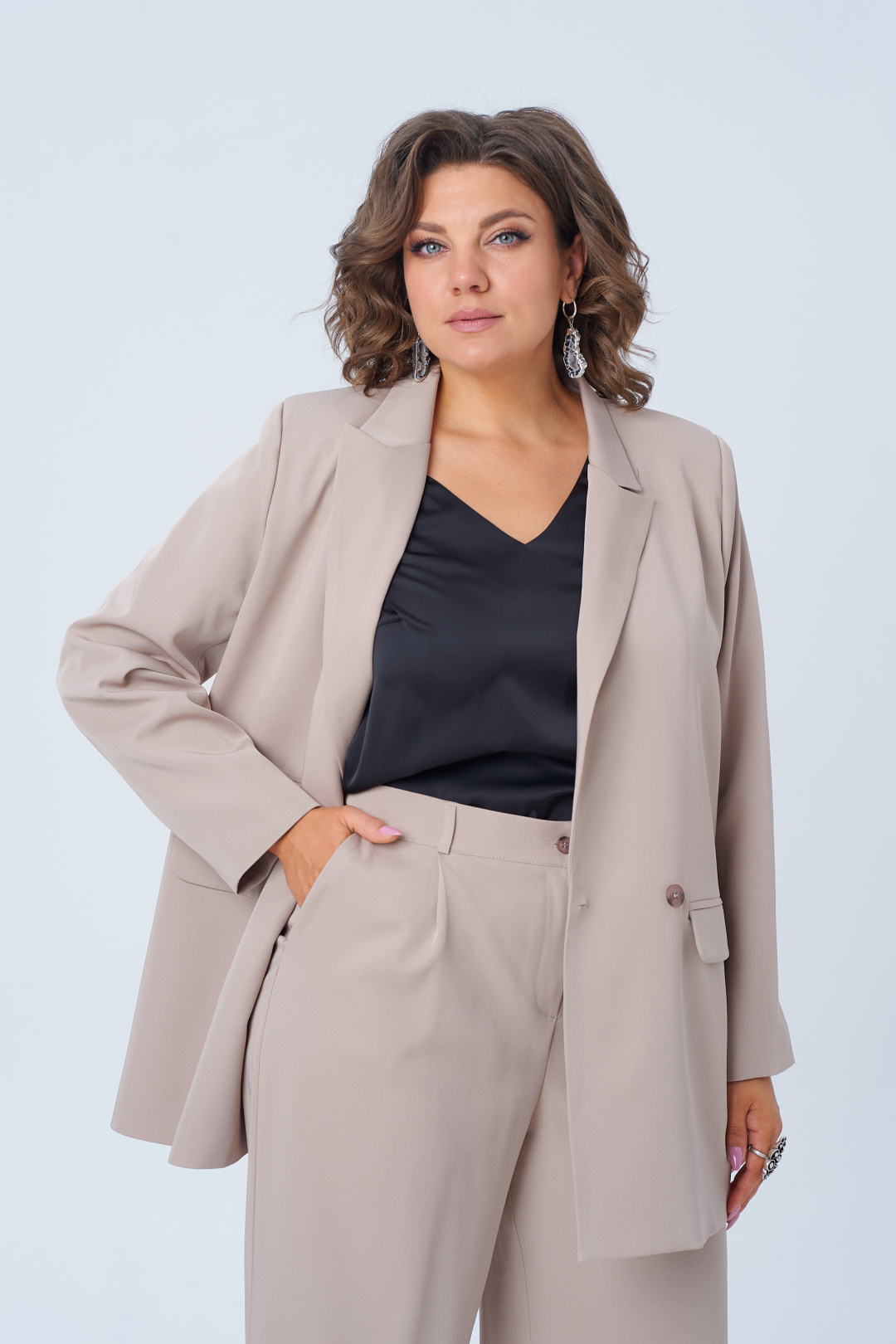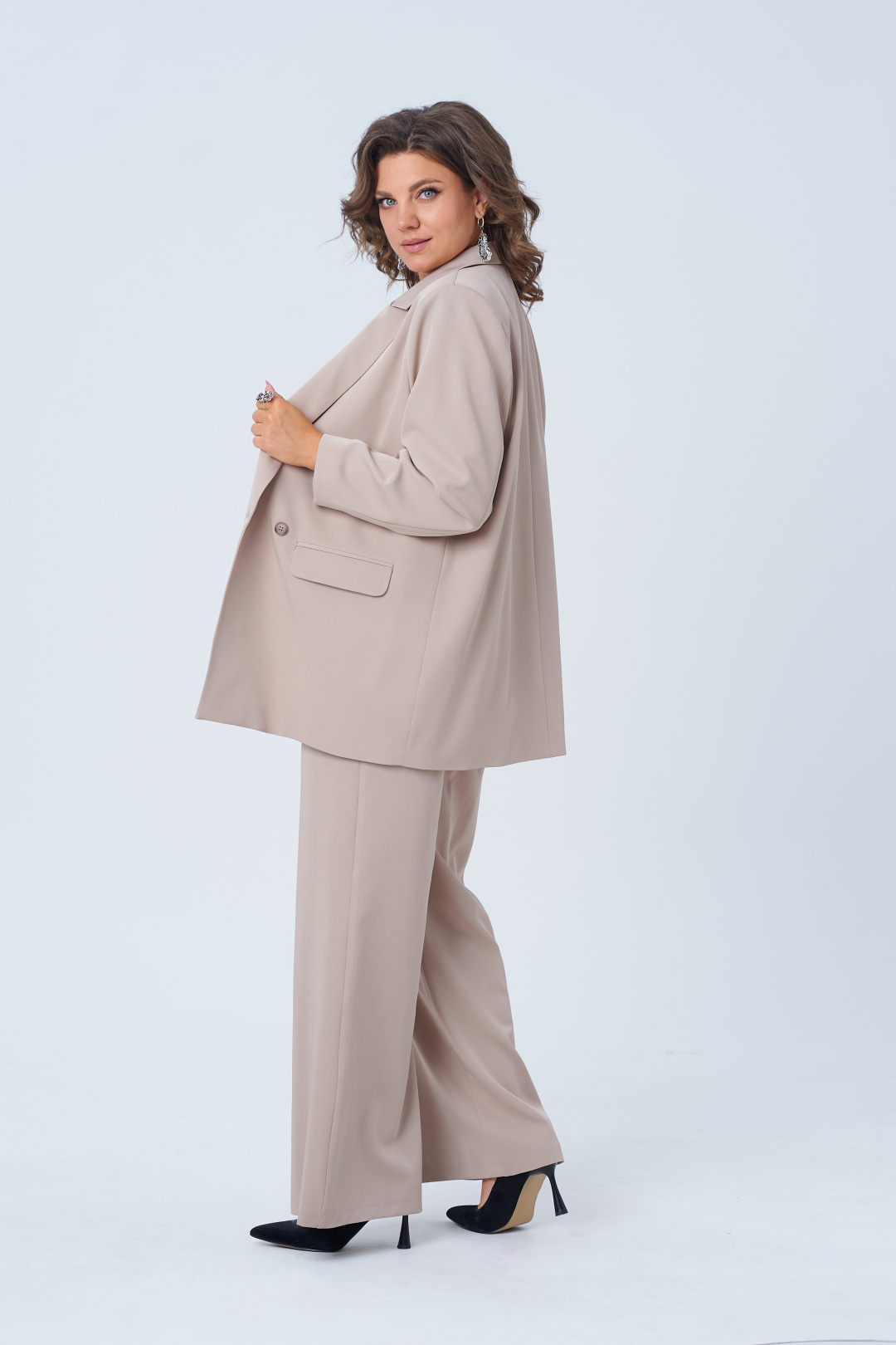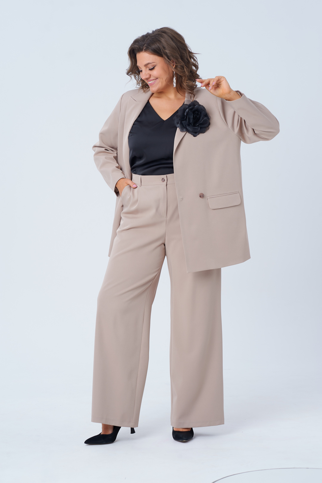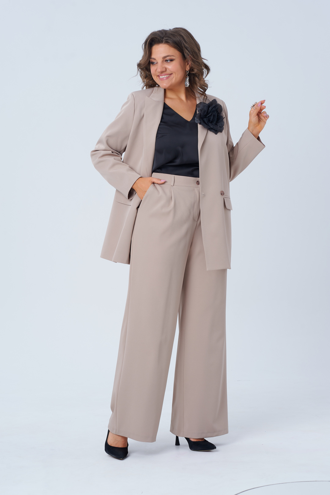 С этим костюмом от Анелли ты станешь королевой свадеб, олицетворением элегантности на деловых встречах, а вечерние ужины превратятся в сказочные моменты, когда ты прогуливаешься с непринужденной грацией.