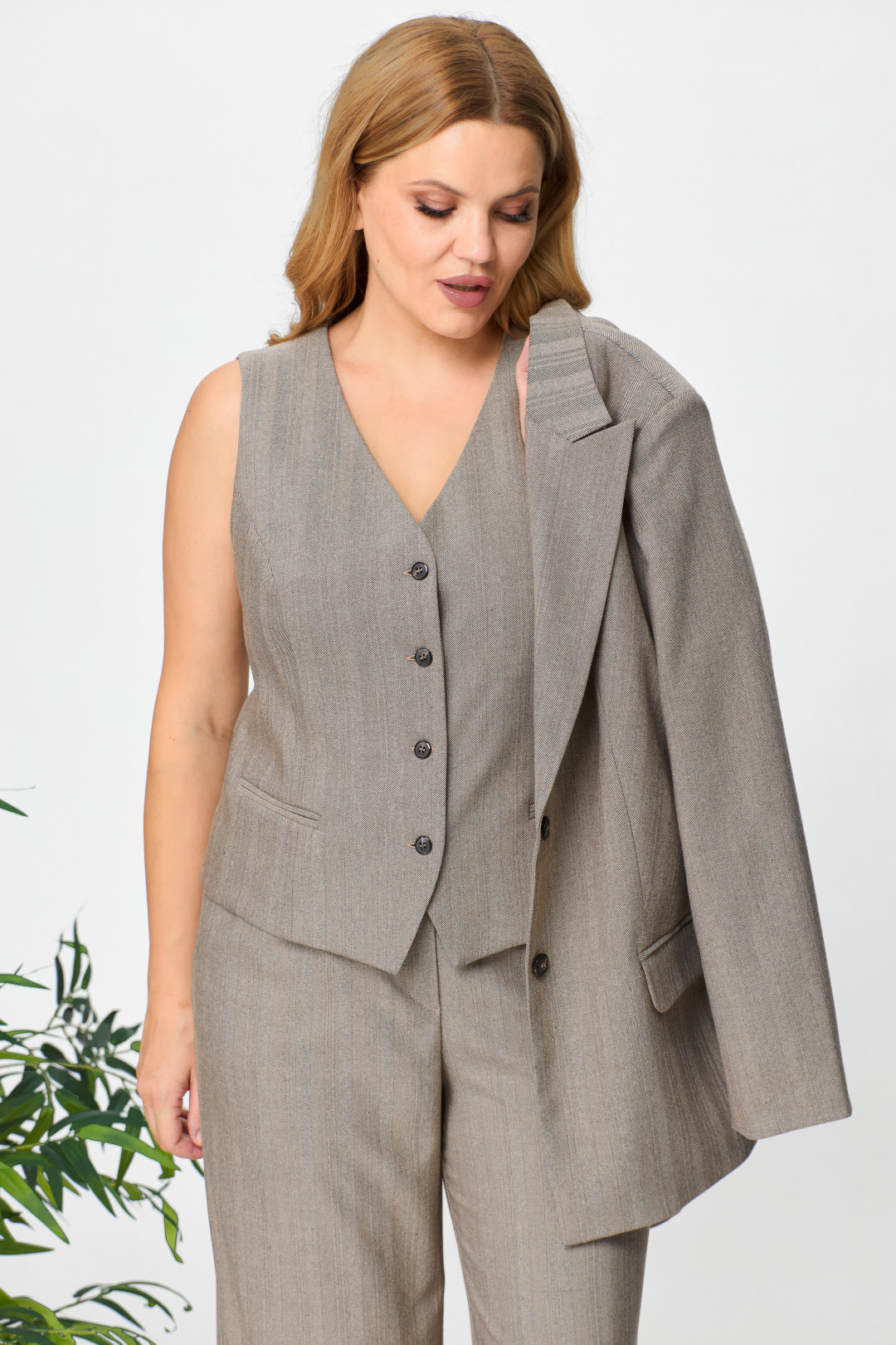 Этот костюм - это шик и универсальность. Жакет бойфренда сочетает в себе элегантность и комфорт, прямые брюки придают вам стройность и уверенность, а жилет завершает образ, добавляя нотку роскоши. Все это - актуальная классика, которая никогда не выйдет из моды.