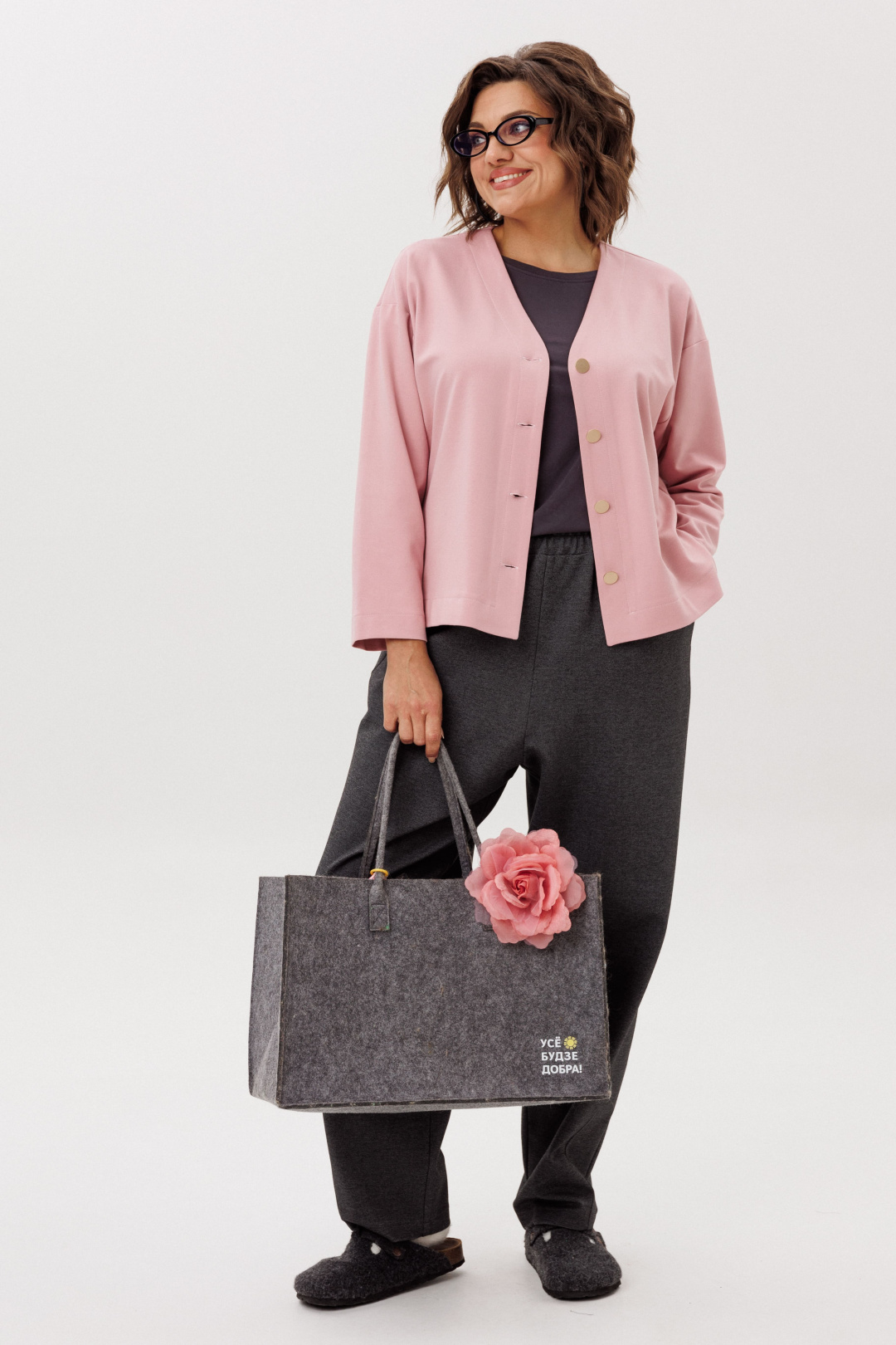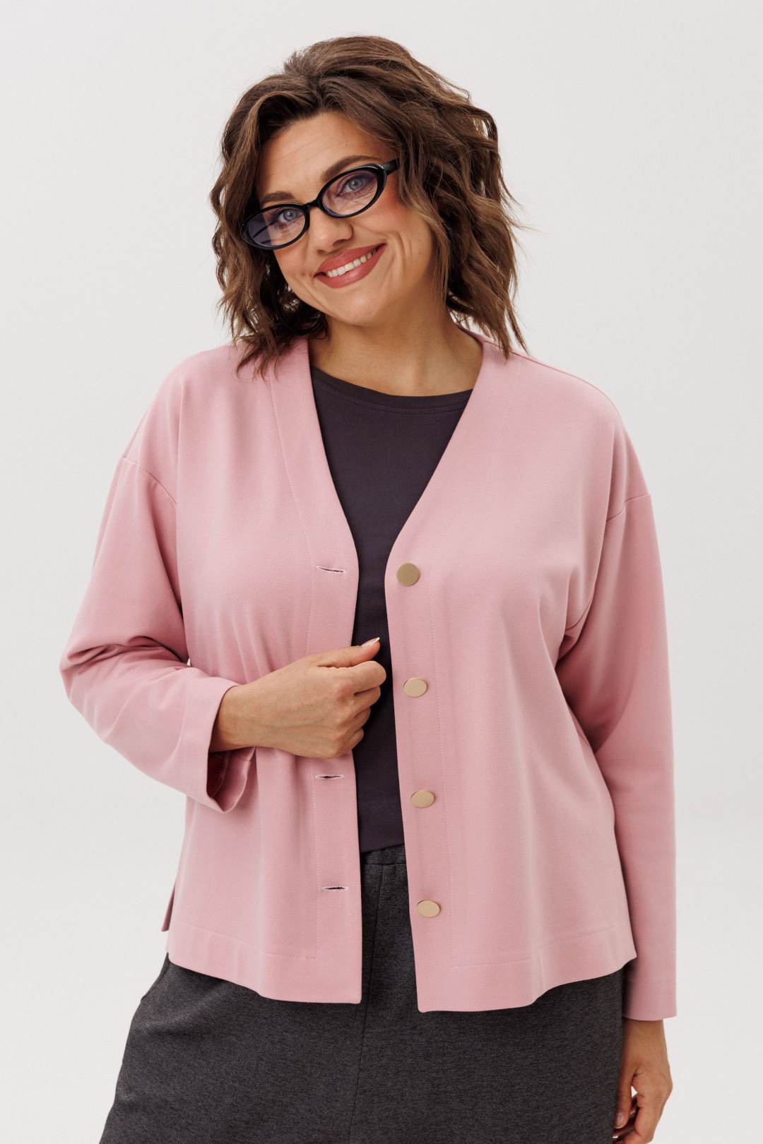 Его прямой силуэт со спущенным плечом и изящными разрезами по бокам струится легко и свободно, подчеркивая достоинства, не сковывая движений. Глубокий V-образный вырез горловины добавляет образу женственности и строгой элегантности, а классическая застежка на красивые пуговицы завершает безупречный вид.
