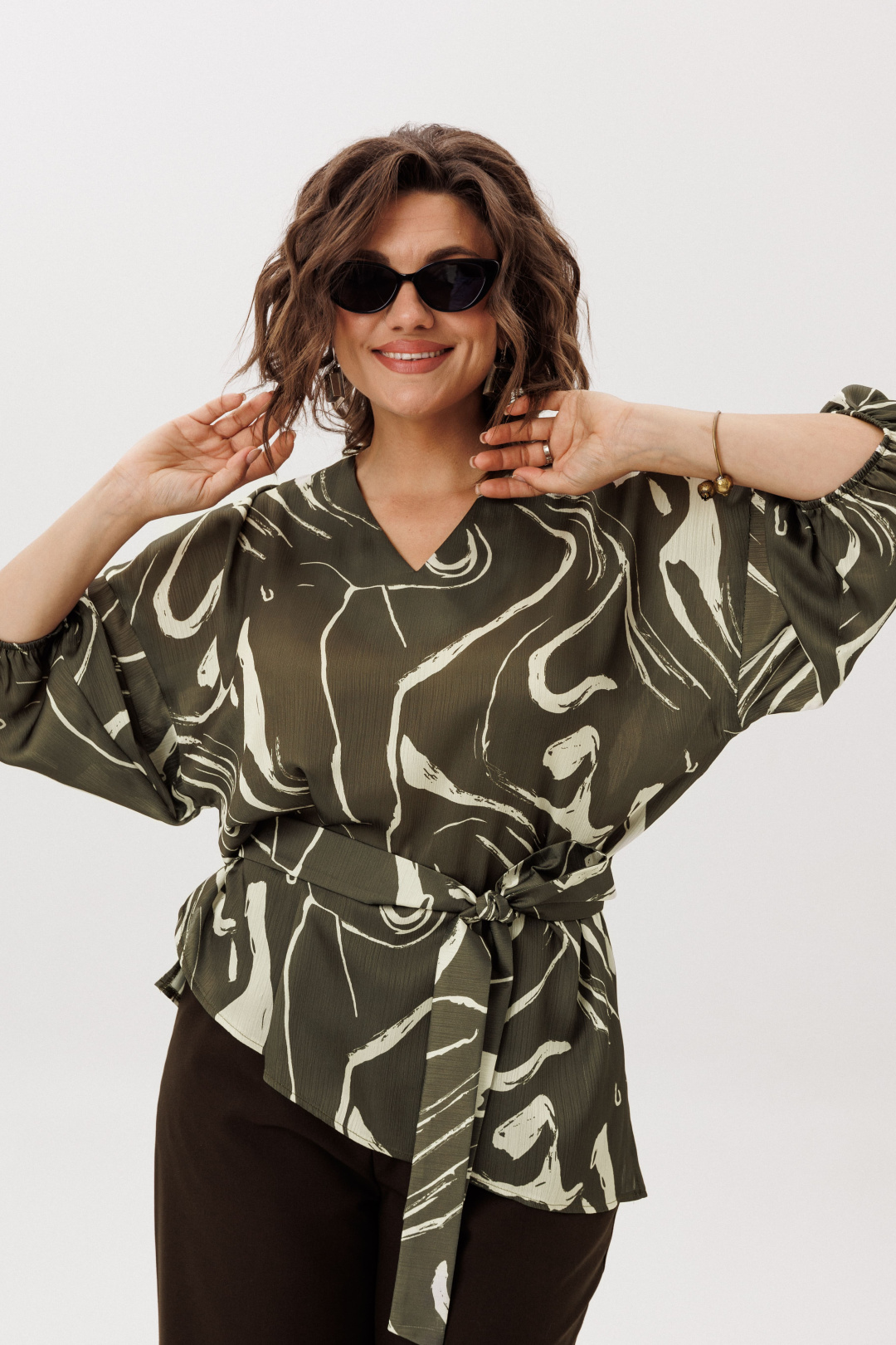 Главная особенность этой модели — продуманная многозадачность. Пояс в комплекте позволяет вам самостоятельно создавать нужный образ: затяните его, чтобы подчеркнуть талию и создать фигуру «песочные часы», или отпустите для расслабленного силуэта в стиле бохо. Завершает картину асимметричный низ с разрезом — деталь, которая делает блузу по-настоящему уникальной и визуально вытягивает силуэт.