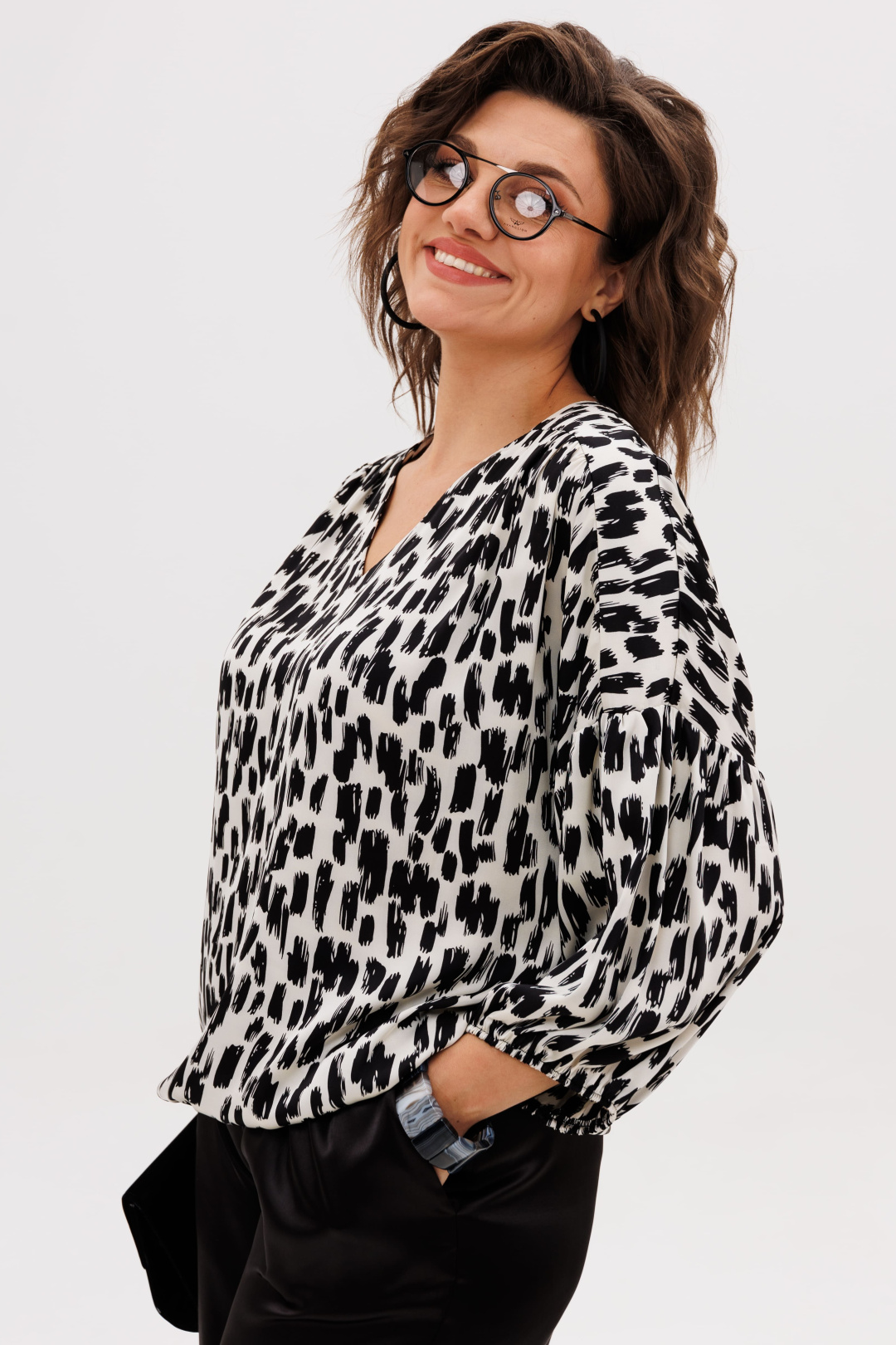 Но главная тайна этой модели скрыта в ее сердце — эластичная резинка, проходящая по всему низу блузы. Эта деталь полностью меняет правила игры. Теперь вы сами становитесь творцом своего образа: укоротите блузу для дерзкого современного вида или отпустите ее для струящегося, романтичного силуэта. Она послушно следует за вашим желанием, подстраиваясь под настроение и ситуацию.