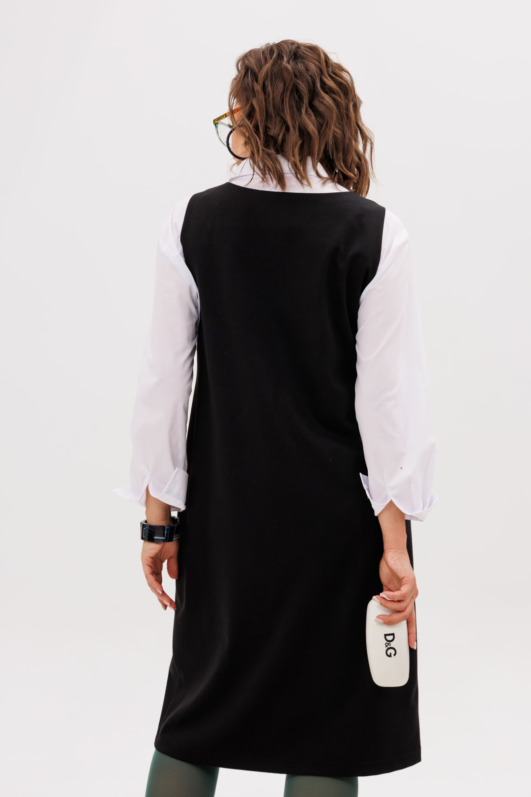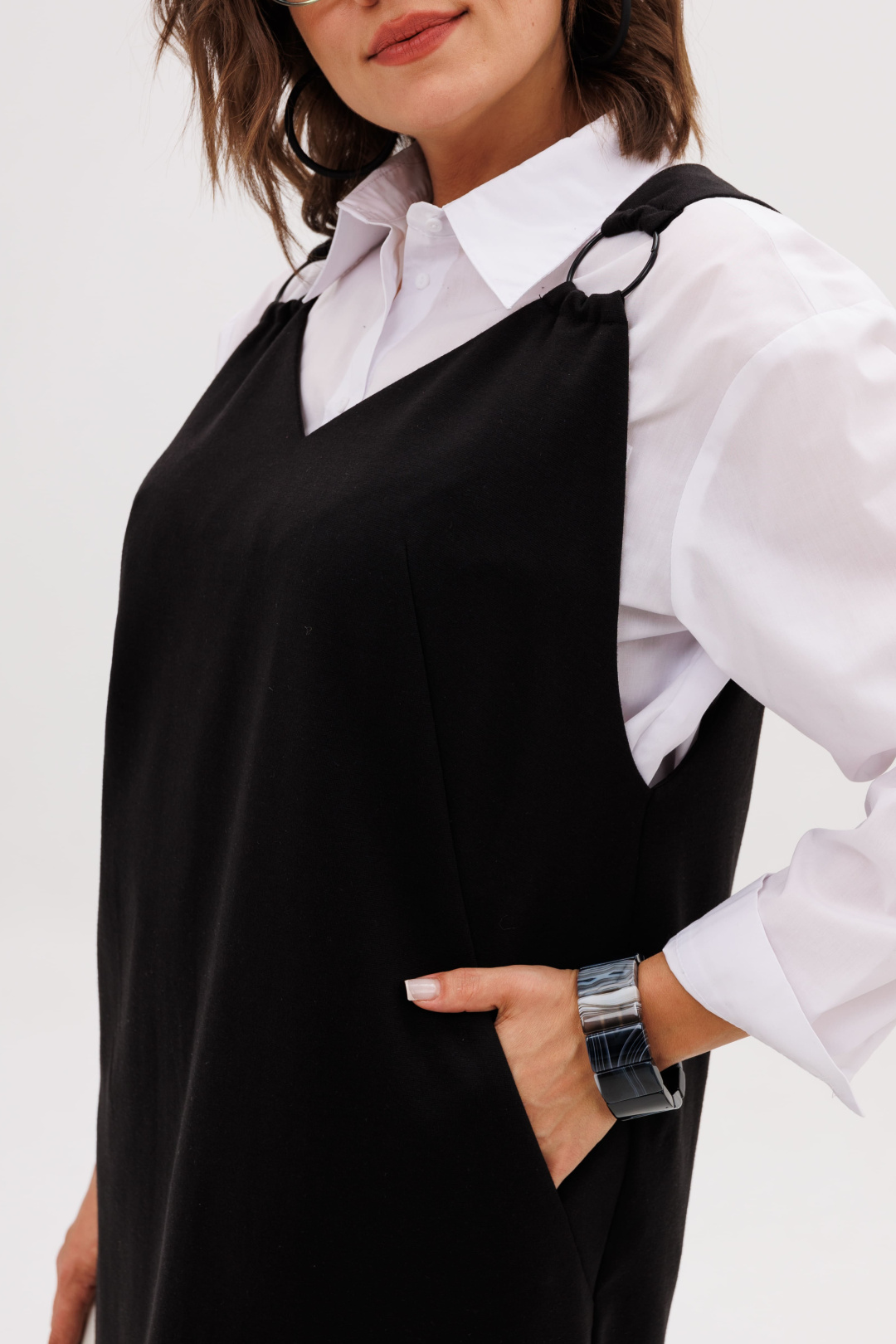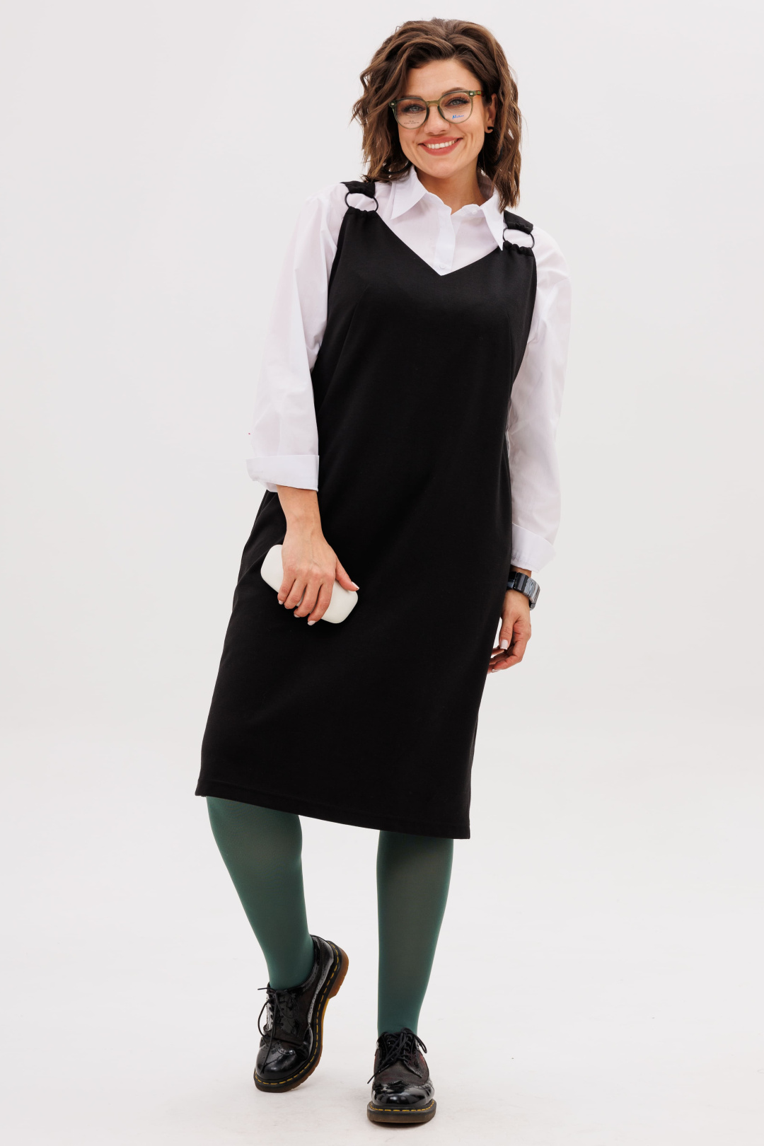 Практичность модели подчеркивают два аккуратных кармана. Особый шарм сарафану придают декоративные кольца на лифе, делая его современным и стильным. Универсальность модели позволяет легко комбинировать ее с рубашками, лонгсливами и другими базовыми вещами, создавая многогранный образ для любого дня.