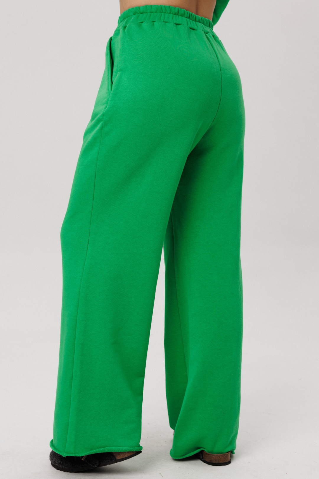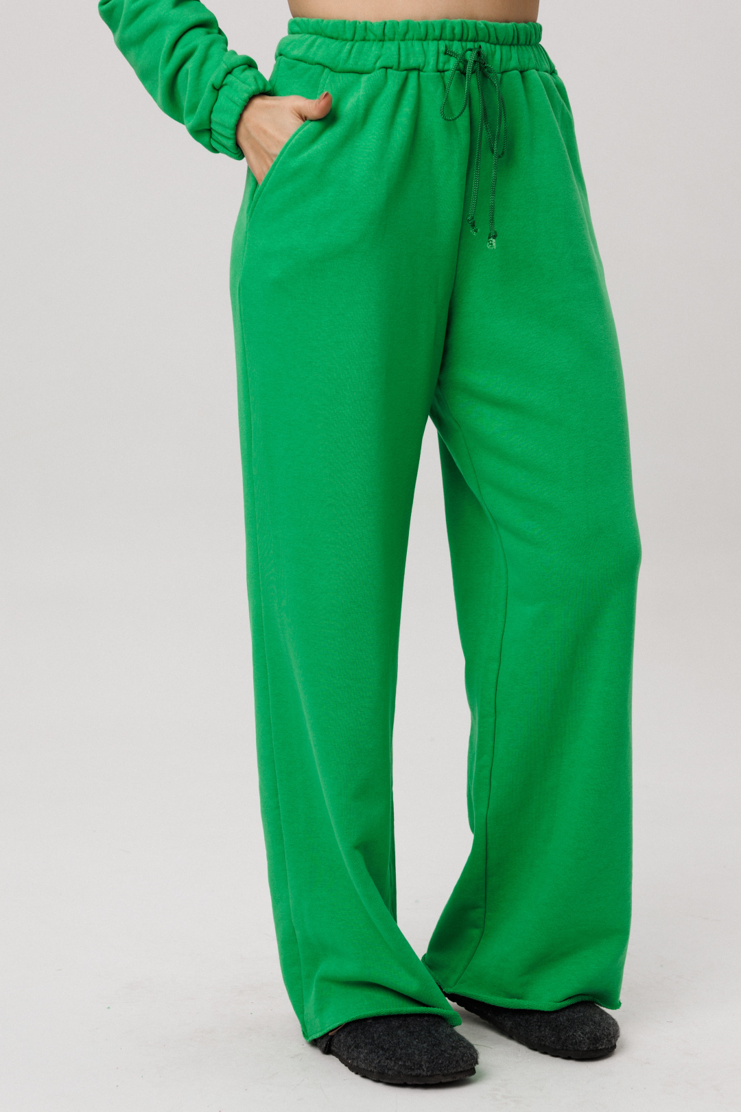 Брюки продолжают философию комфорта, предлагая прямую посадку на эластичном поясе, который мягко сидит по фигуре, не стесняя движений. Лаконичный дизайн дополнен практичными боковыми карманами. Подлинной изюминкой всего комплекта становятся намеренно открытые срезы, привносящие в образ ноту дерзкого шика.