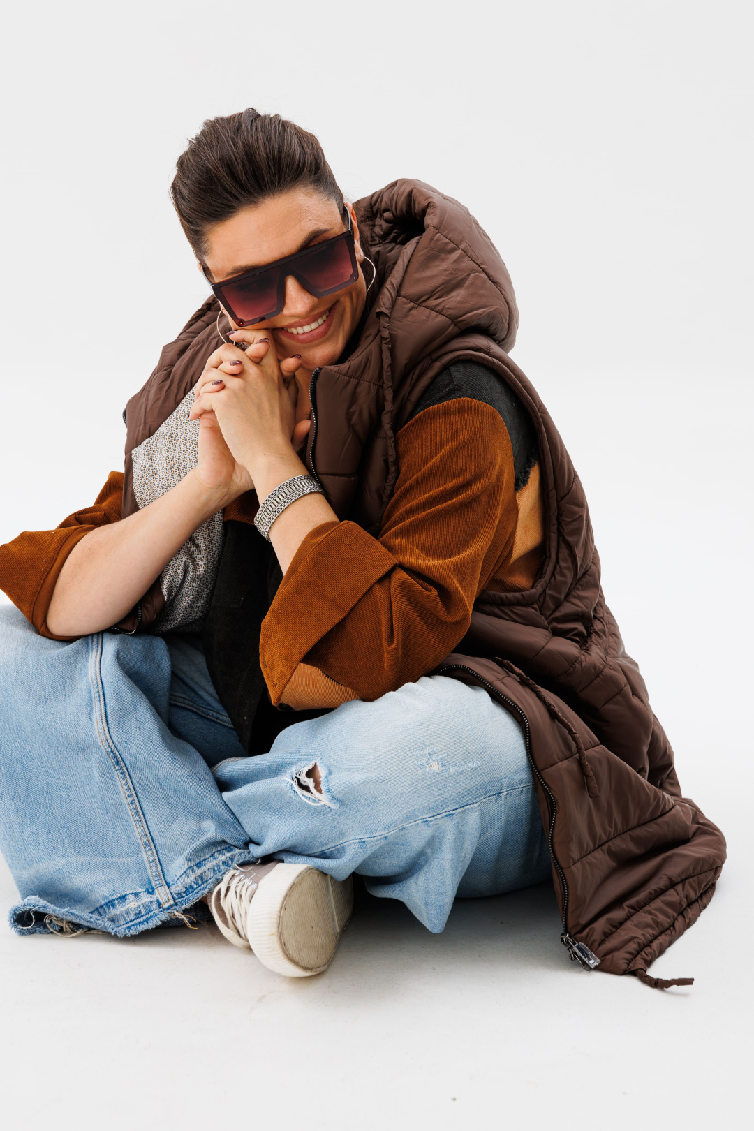 Также на модели собран образ с жилетом 1386 от Анелли.