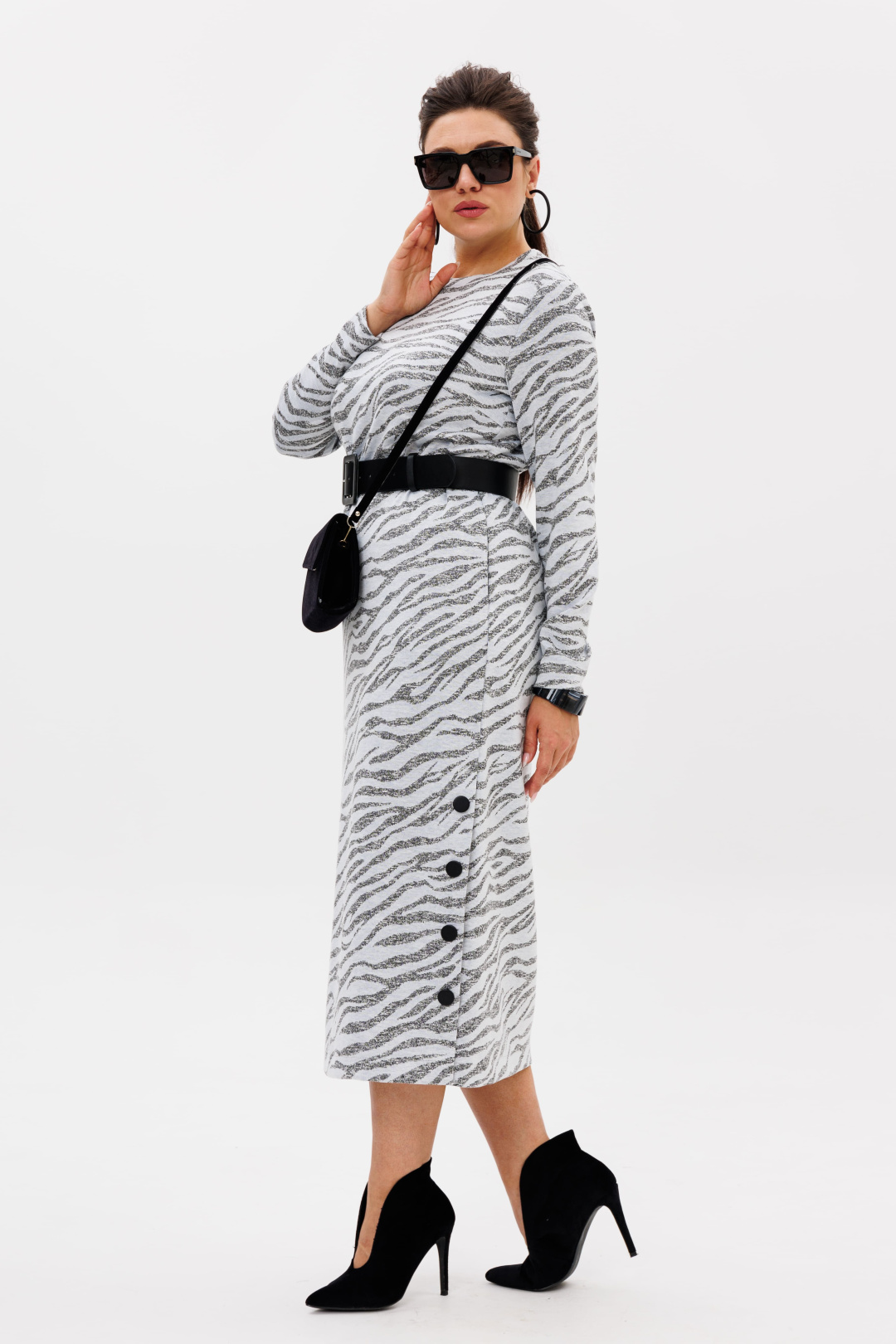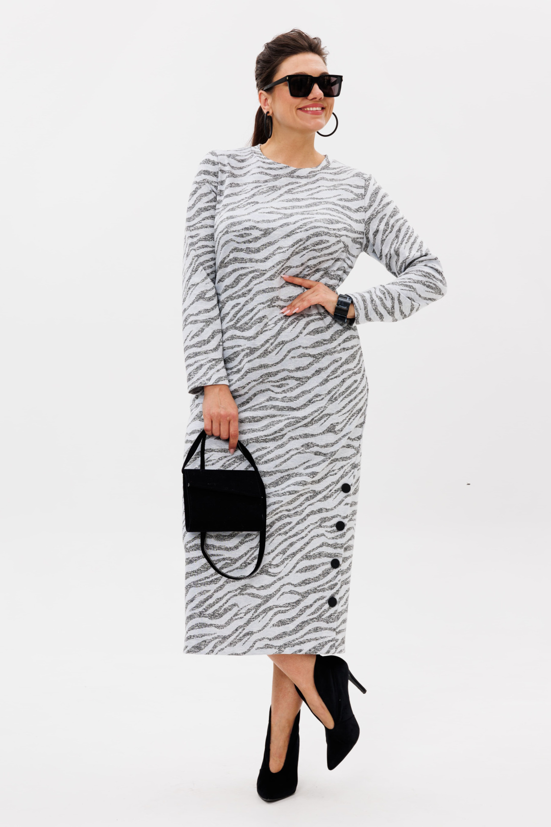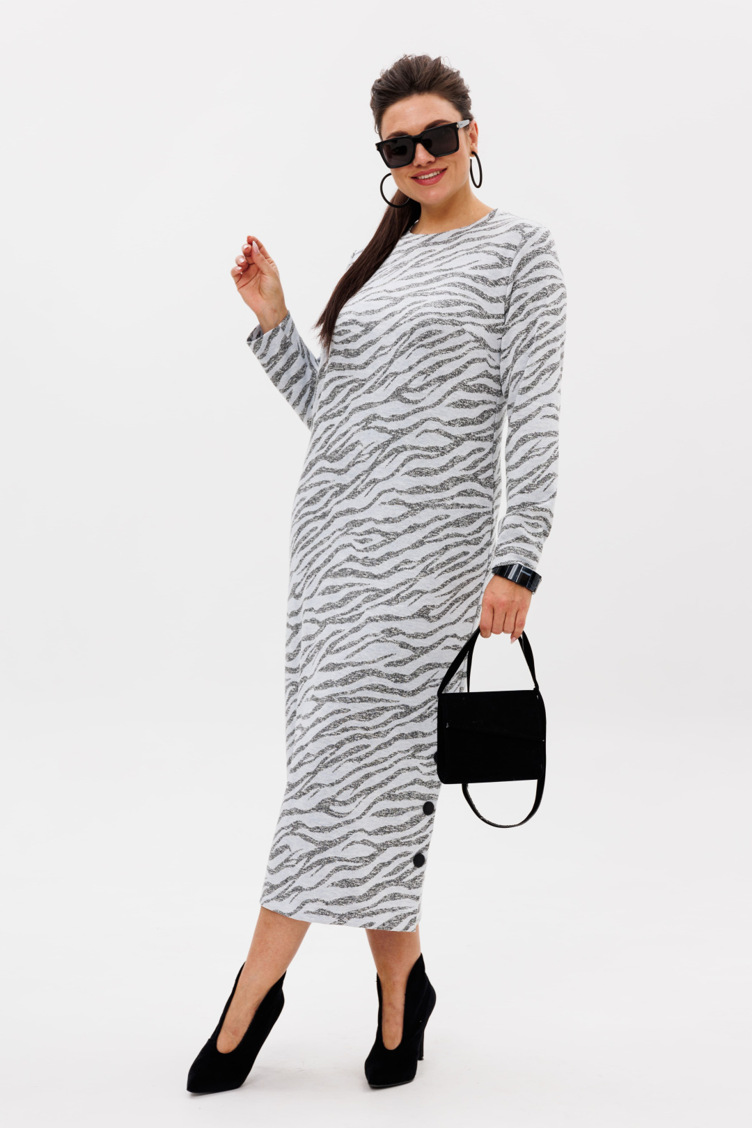 Яркий и необычный принт привлекает внимание и выделяет ваш образ, подчеркивая вашу индивидуальность. В таком платье вы всегда будете выглядеть стильно и чувствовать себя уверенно, сохраняя при этом комфорт и лёгкость движений.