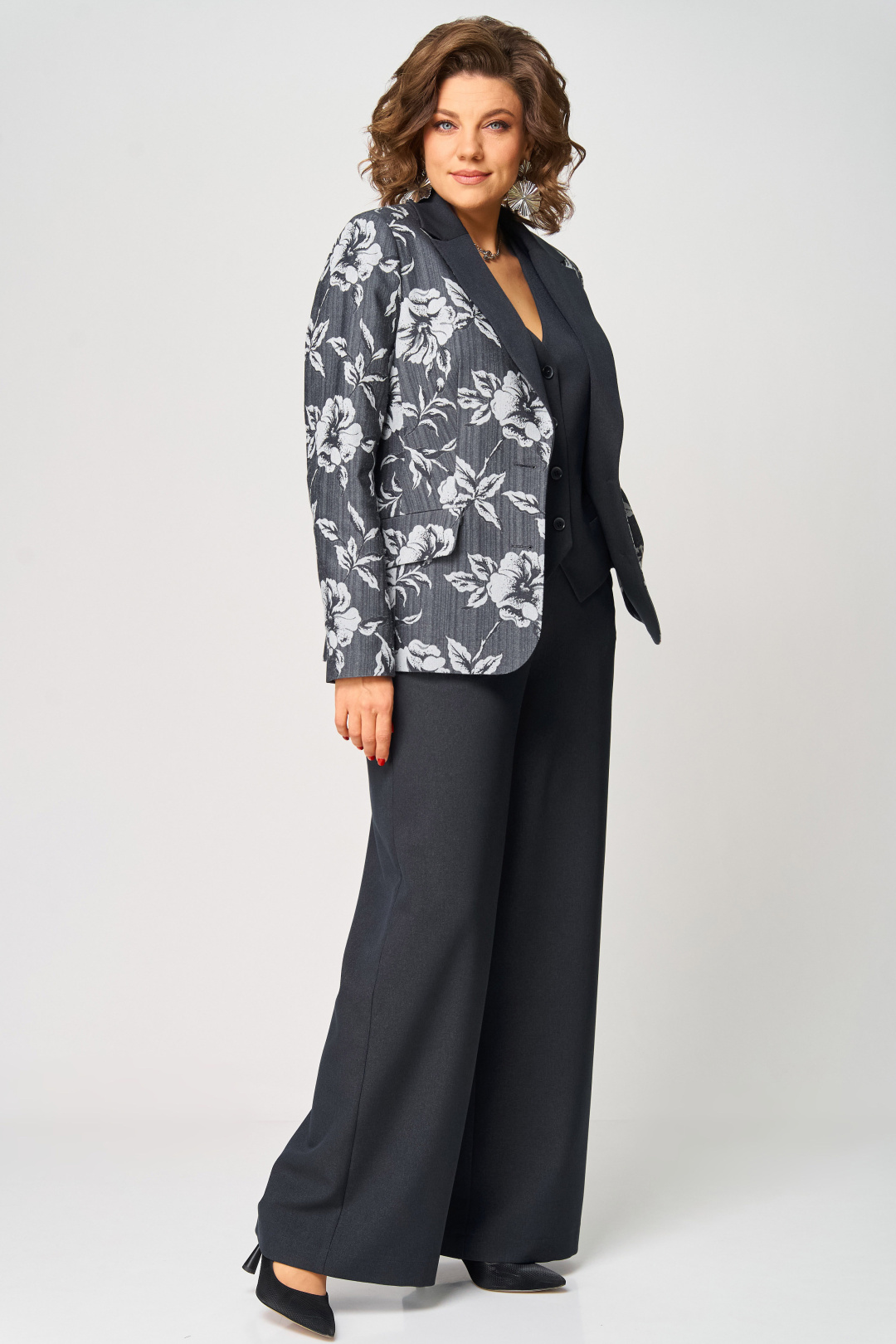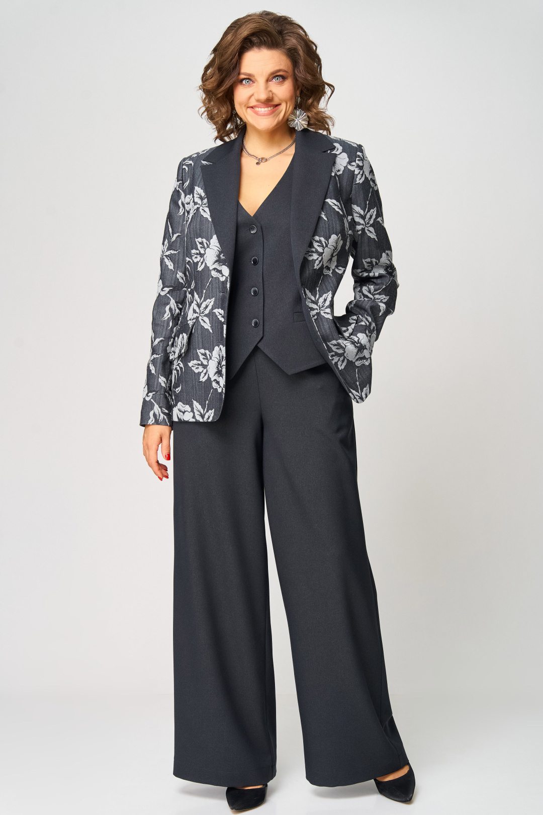 Изысканный брючный комплект-тройка с широкими брюками подчеркнет Ваш стиль и придаст образу элегантность.