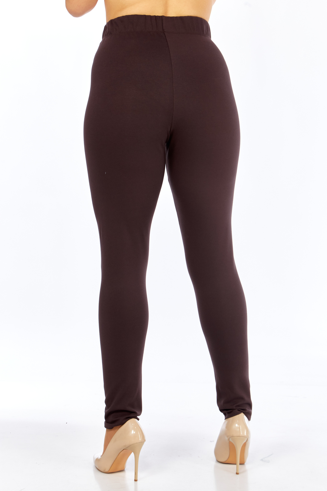 Эти стильные леггинсы выполнены из качественного плотного трикотажа темно-коричневого цвета, обеспечивая идеальное облегание и комфорт. Модель с высокой посадкой до талии и широким цельнокроеным поясом на резинке (4-5 см) подчеркивает силуэт, делая акцент на линии талии. Низ леггинсов прямой, а штанина удлиненная, что придает изящество общему виду. Доступны в ростах 164 и 170, эти леггинсы идеально подходят для создания как повседневных, так и более элегантных образов.
