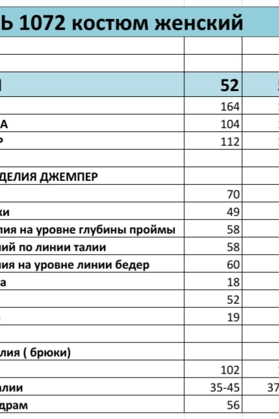 РАЗМЕРЫ | 52 | 54 | 56 |