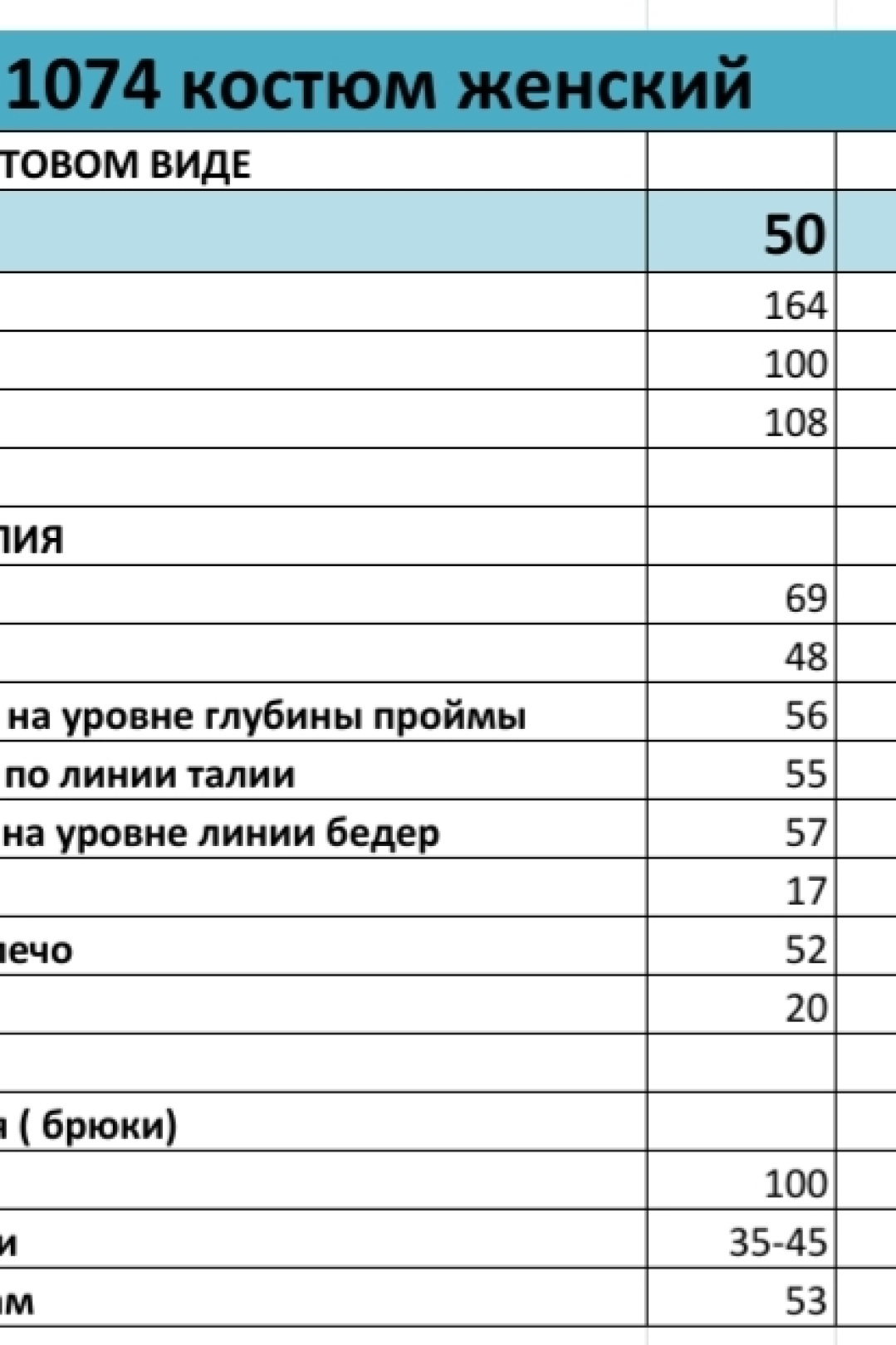 РАЗМЕРЫ | 50 | 52 | 54 |