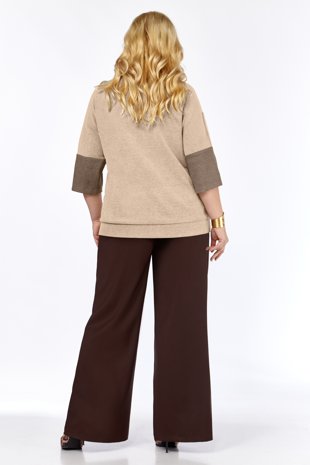 Женский двухпредметный комплект состоит из свободного трикотажного джемпера и текстильных широких брюк "палаццо".