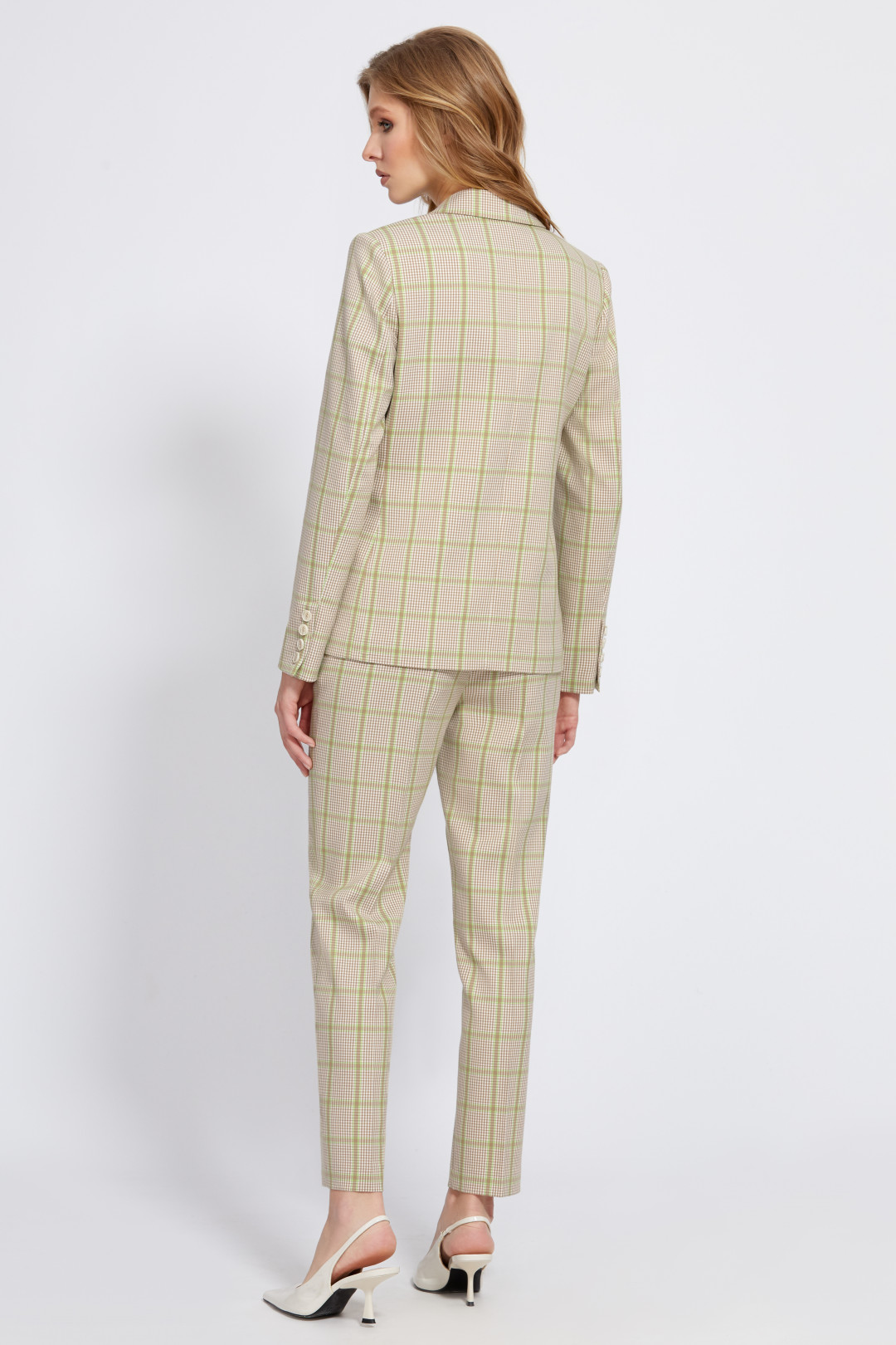 | Классический жакет полуприлегающего силуэта с отложным воротником и лацканами будет уместен и в гардеробе офиса и в повседневном образе. Перед с глубоким вырезом с застёжкой на две петли-пуговицы, двумя функциональными карманами с рамками и одним карманом-обманкой с клапаном. Рукава втачные двухшовные со шлицами и отделочными пуговицами. Модель сшили из мягкой приятной ткани с добавлением вискозы. Снизить градус формальности помогает дизайн – интересное сочетание яркой клетки трендового цвета с классической молочно-бежевой мелкой «гусиной лапкой». На подкладке. |