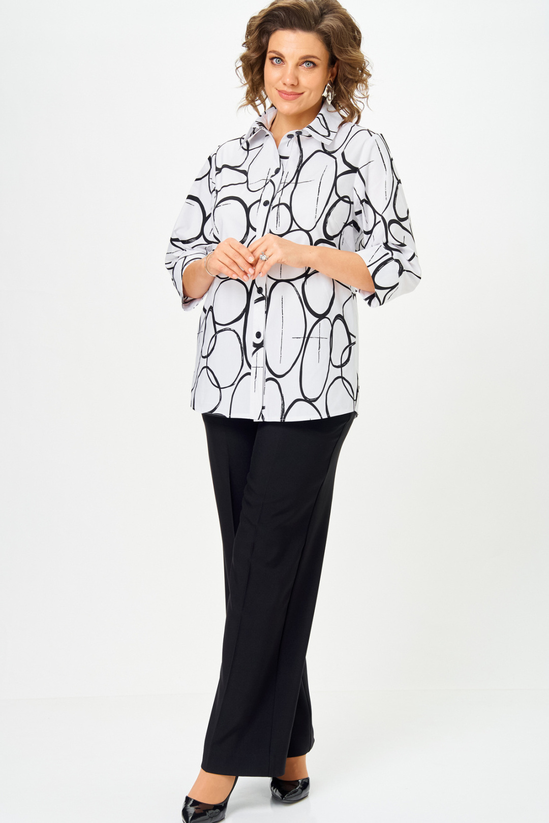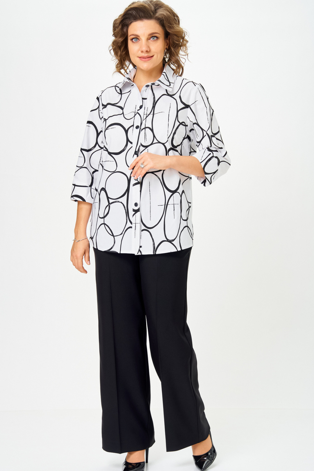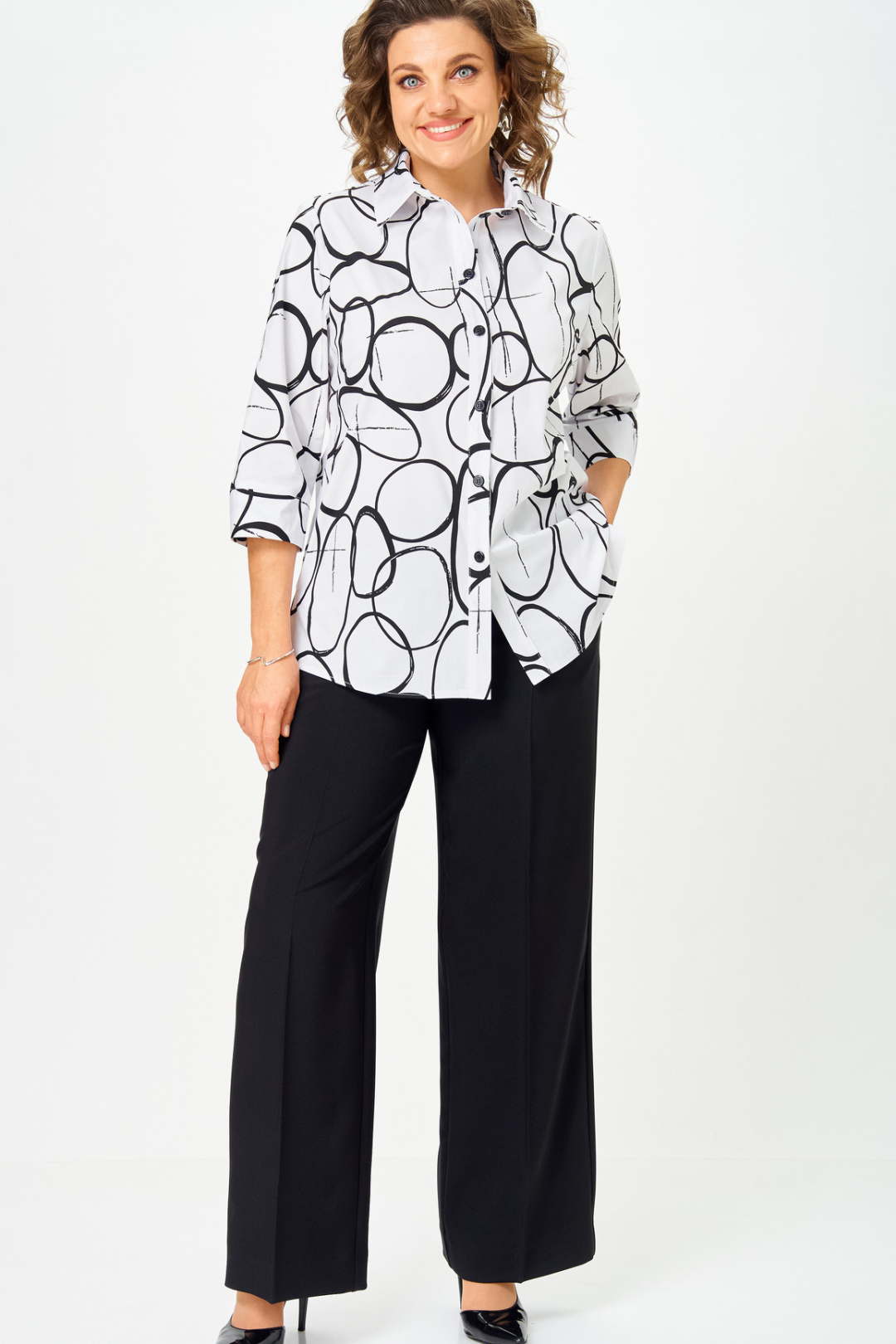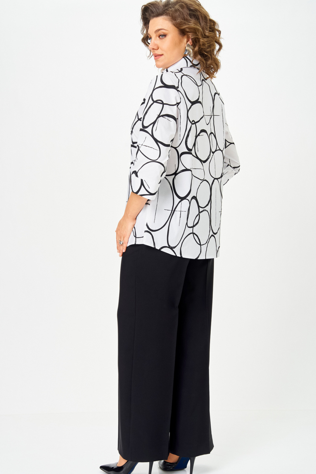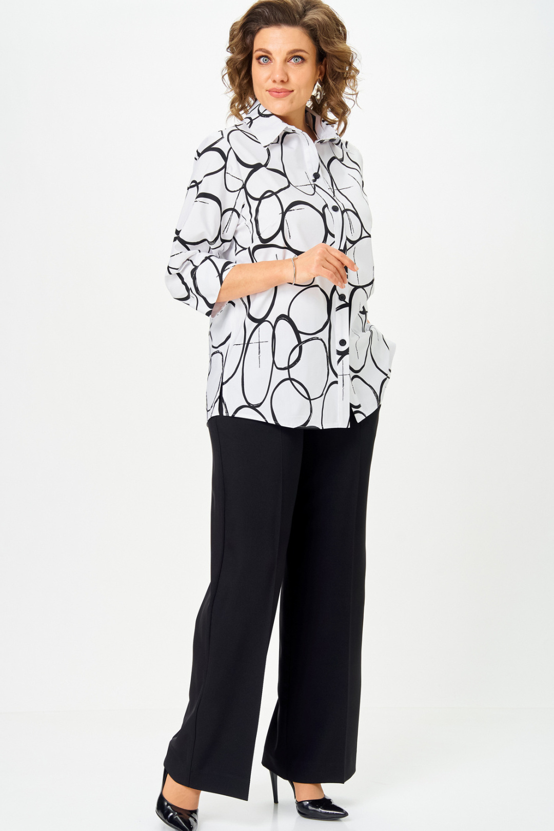 Этот комплект сбалансированный ансамбль для современной деловой женщины. Мы объединили две вещи, которые составляют основу стильного и практичного гардероба. Верх: блуза прямого кроя из нежного текстиля. Рукава 3/4 с манжетами и отложной воротник дарят образу лёгкость и утонченность. Центральная застежка на пуговицы и боковые разрезы добавляют практичности. Длина по спинке 74 см, длина рукава 45. Низ:Брюки-палаццо, модель идеального кроя, создает изящный силуэт и невероятный комфорт. Скрытые карманы и фасон с высокой талией делают их одновременно стильными и практичными. Длина брюк от талии по боковому шву 103 см.