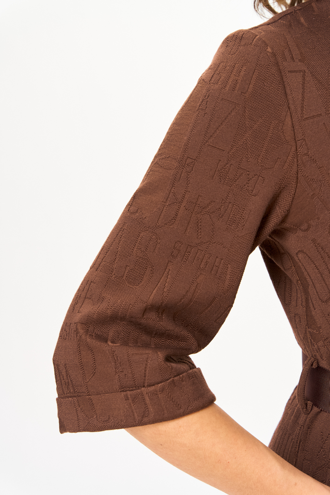 Платье полуприлегающего  силуэта, отрезное по линии талии, юбка шестиклинка, расширенная к низу. На уровне бедер карманы с отложенным клапаном. На лифе по переду центральный шов, горловина V-образная.