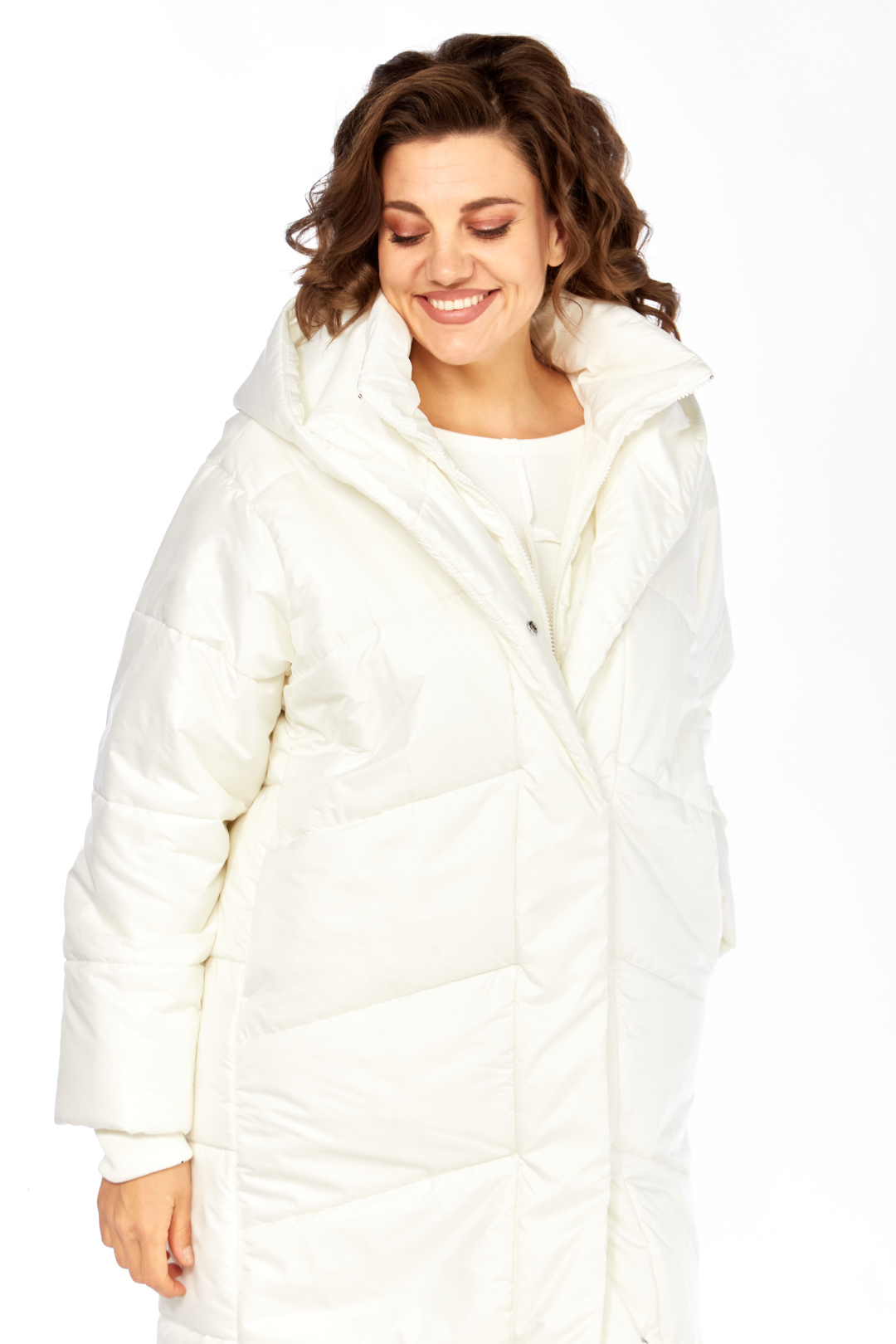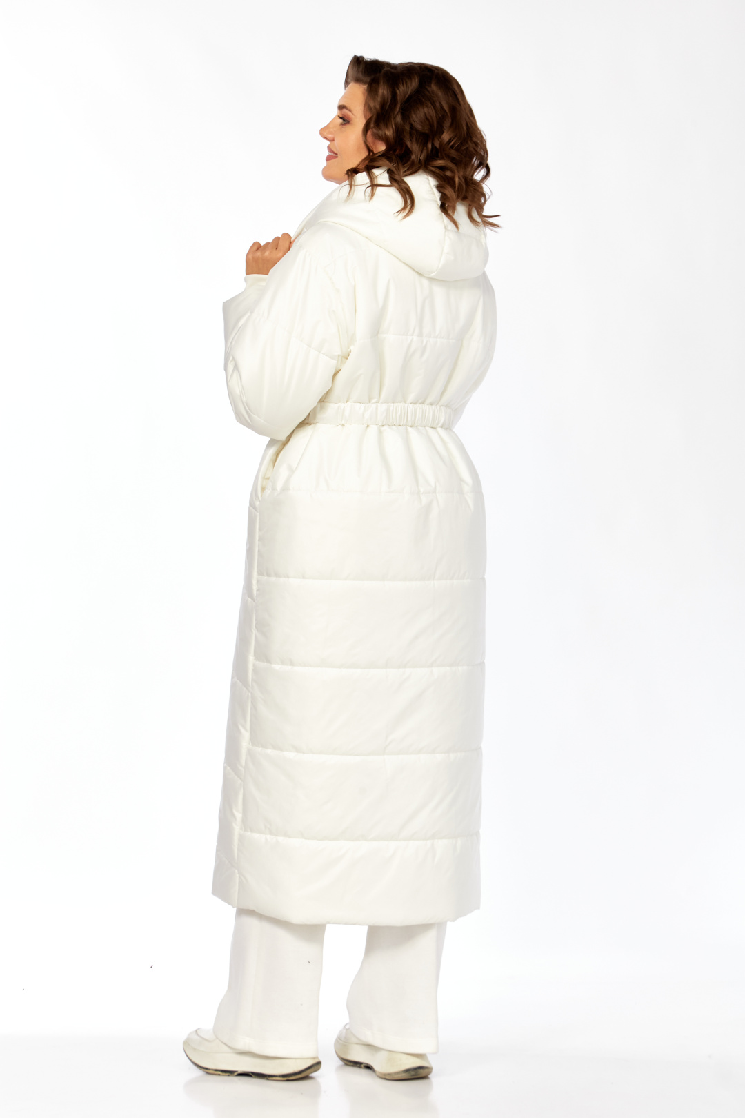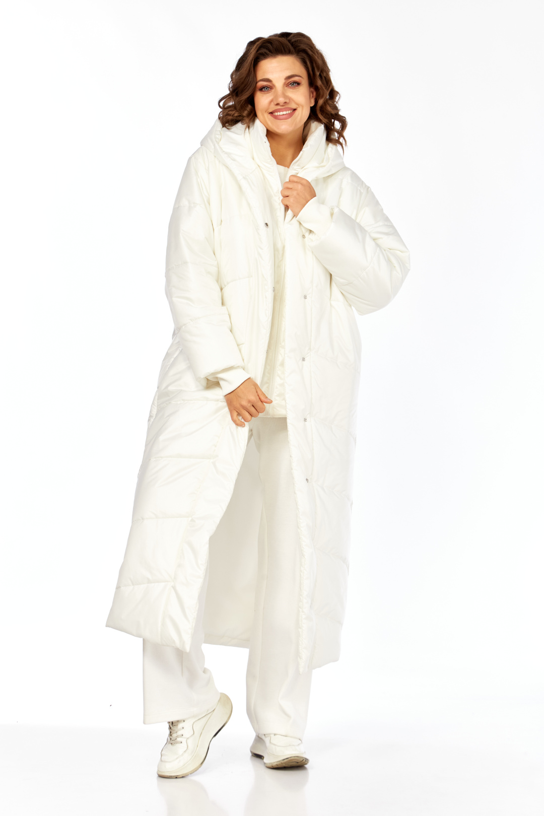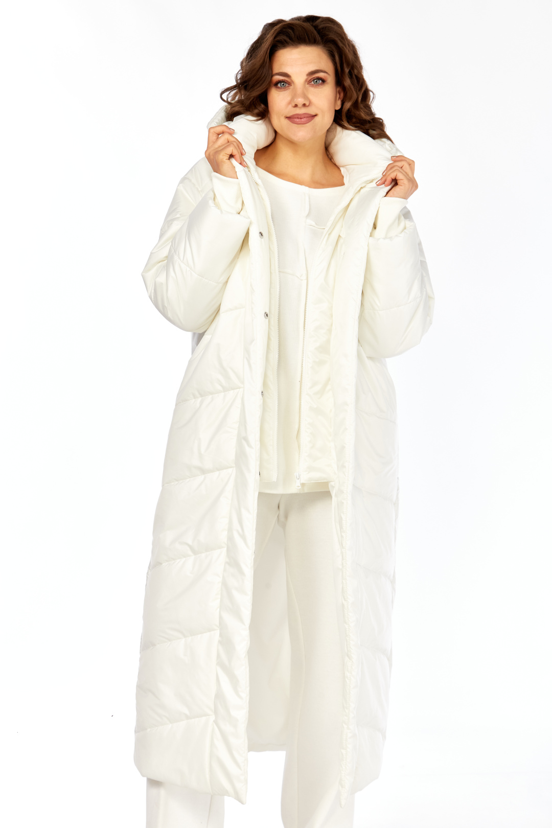 Пальто женское утепленное (длиной до щиколотки). Спинка с горизонтальной стежкой. Боковые швы смещены на перед. Полочки выстеганы по косой. Боковые карманы обработаны в швах. Рукав втачной, одношовный с трикотажными манжетами из-под подгибки. Паьлто с притачной манишкой, которая с воротником-стойкой и на "молнии". Капюшон соединен с планкой, которая застегивается на кнопки сверху до низа изделия. Температурный режим до -10 градусов. Длина по спинке 128 см, длина рукава 60+5 см.