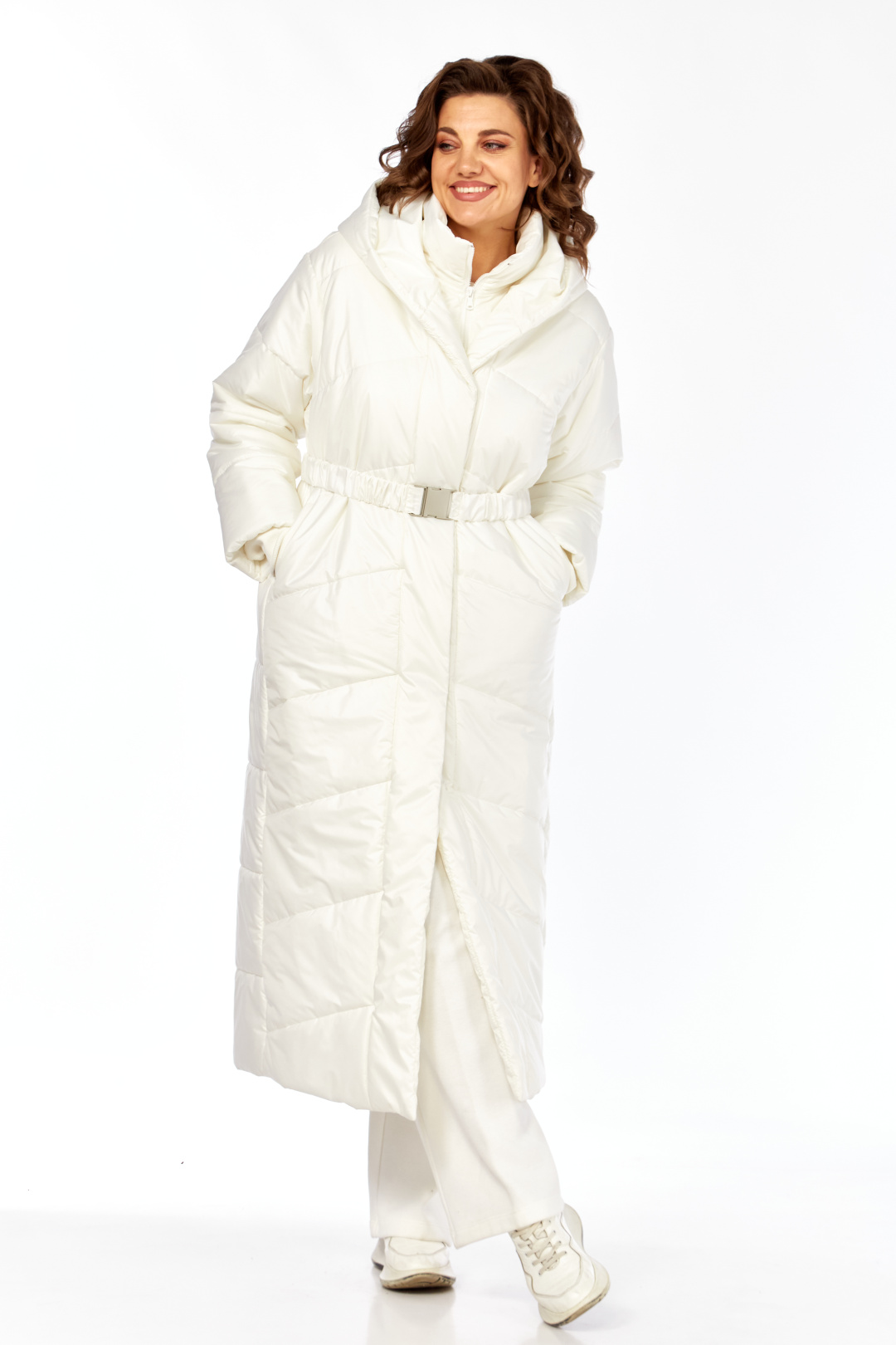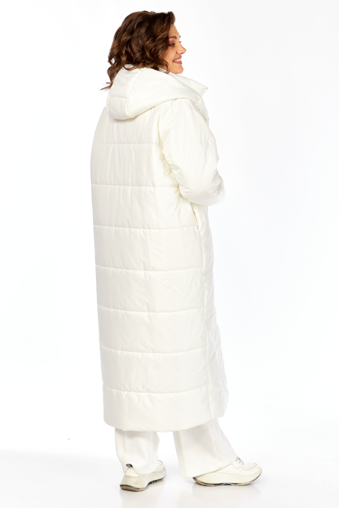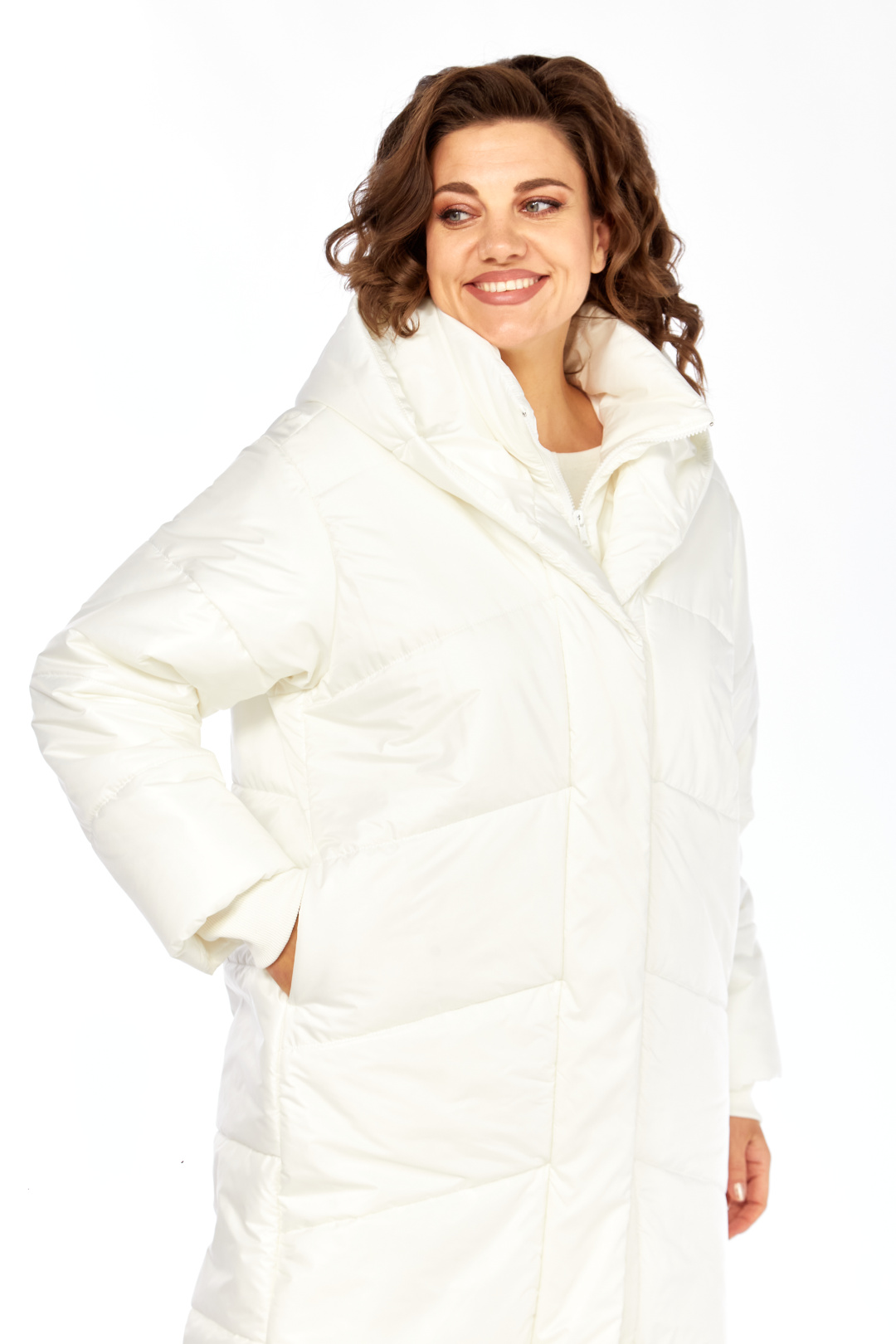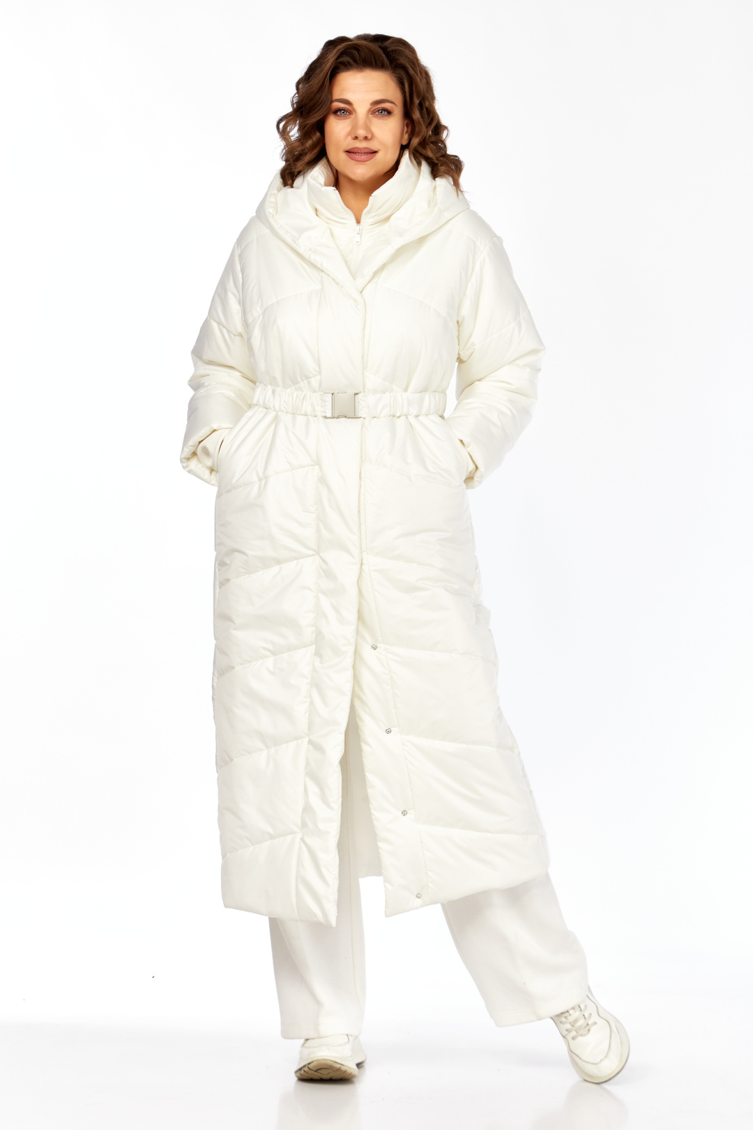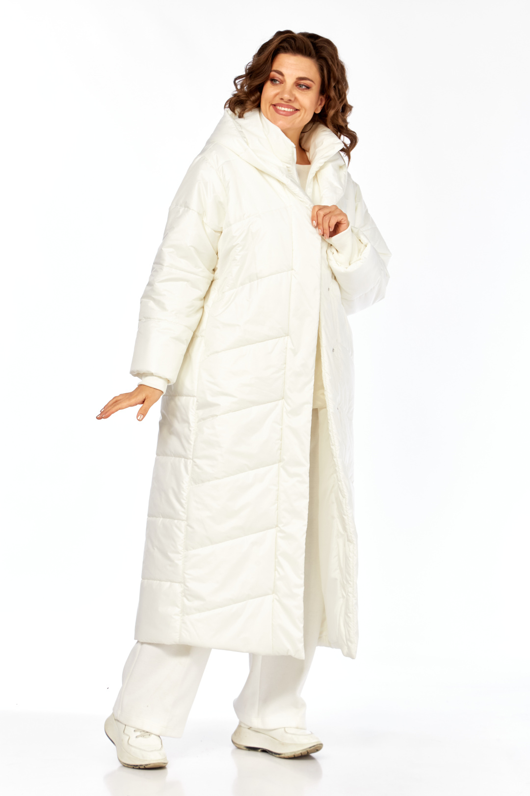 Пальто женское утепленное (длиной до щиколотки). Спинка с горизонтальной стежкой. Боковые швы смещены на перед. Полочки выстеганы по косой. Боковые карманы обработаны в швах. Рукав втачной, одношовный с трикотажными манжетами из-под подгибки. Паьлто с притачной манишкой, которая с воротником-стойкой и на "молнии". Капюшон соединен с планкой, которая застегивается на кнопки сверху до низа изделия. Температурный режим до -10 градусов. Длина по спинке 128 см, длина рукава 60+5 см.