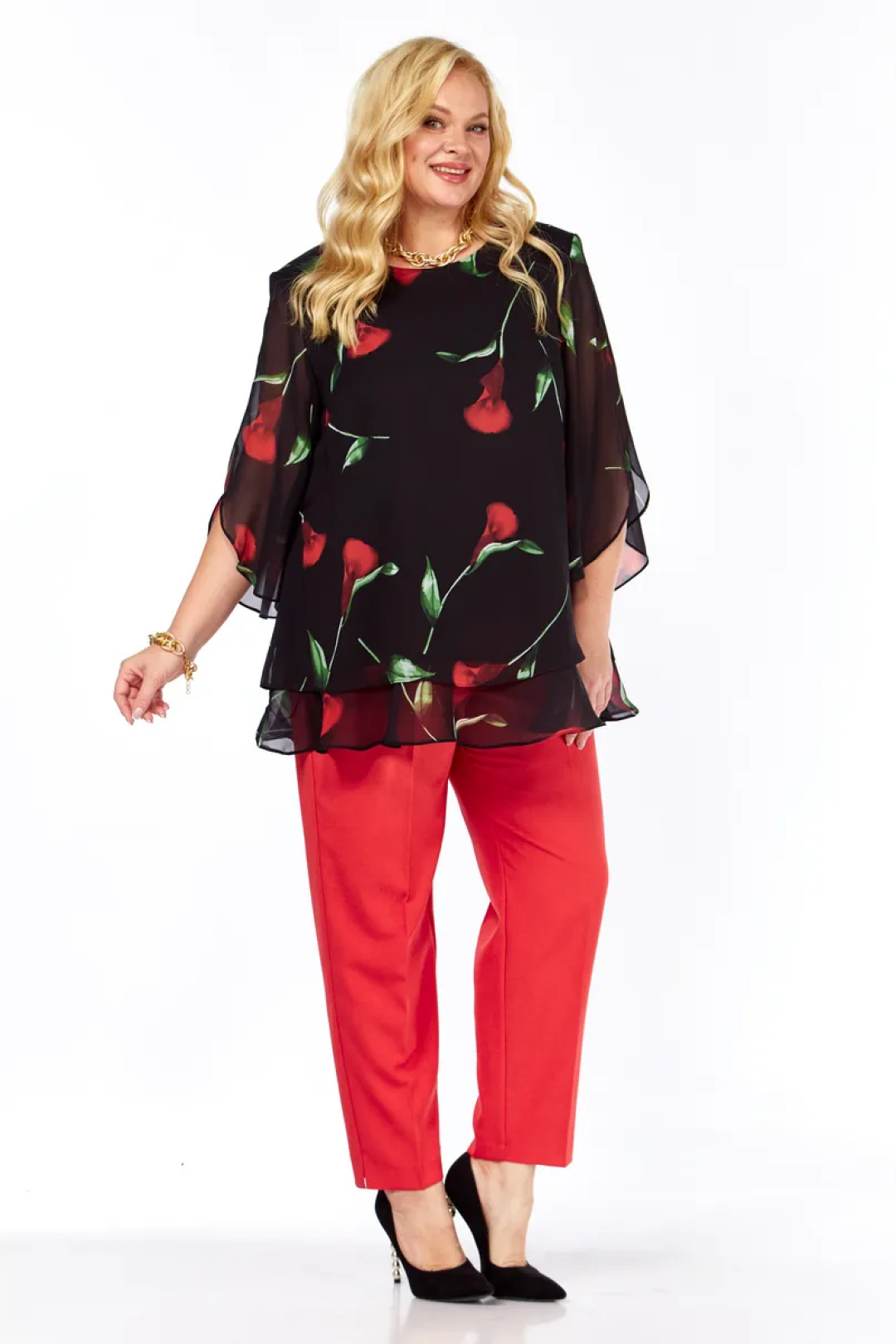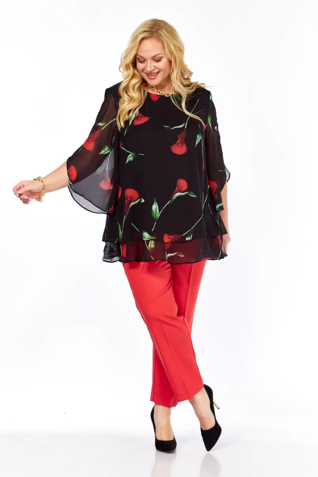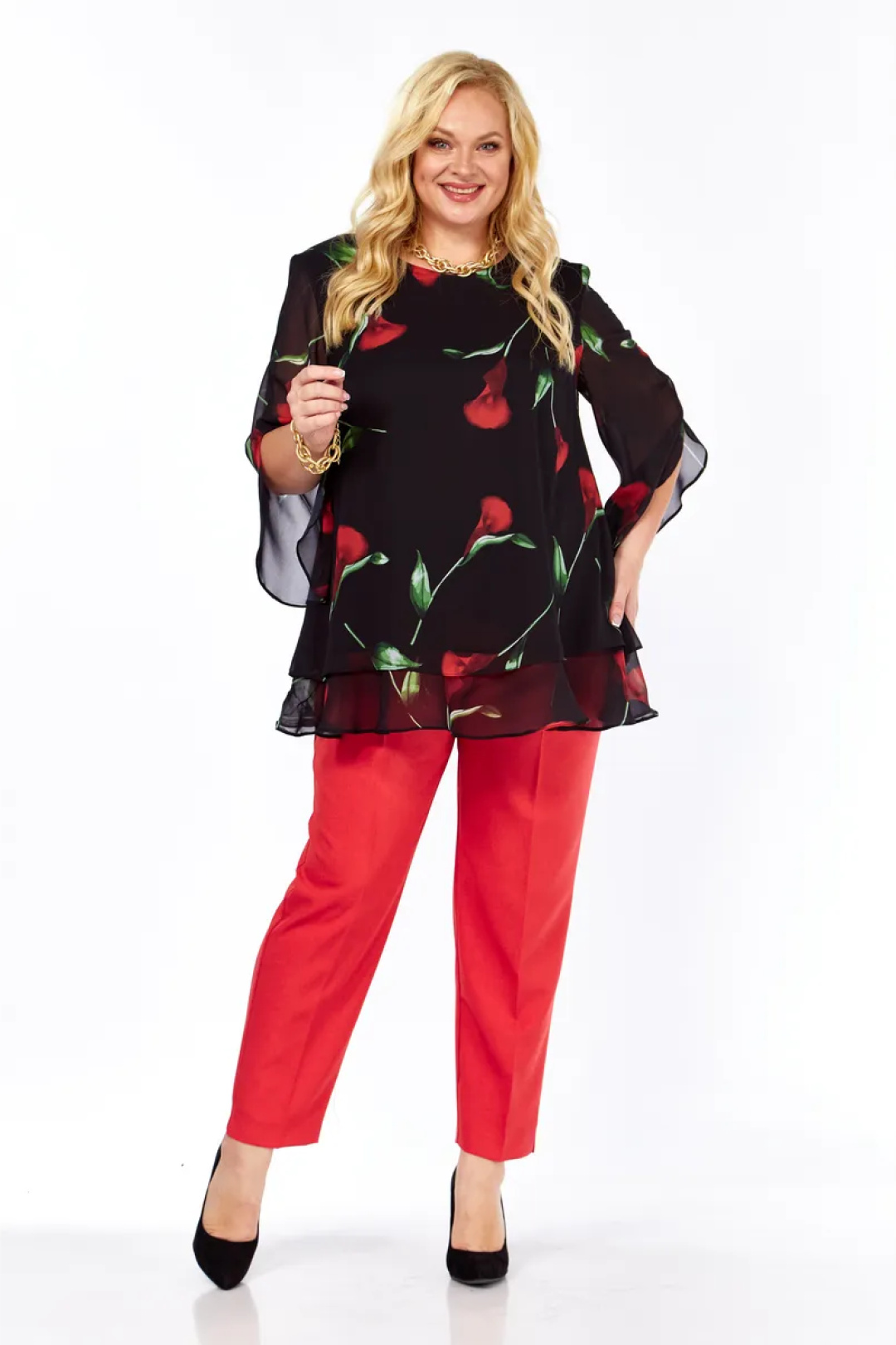 Изделие позволит чувствовать себя ярко и уверенно. Воздушная блуза, свободного кроя, выполнена из принтованного шифона, что придает уникальность стилю своими красками. На полочке нагрудные вытачки, вырез горловины аккуратной округлой формы. Рукав втачной, свободный. Блуза на подкладке.