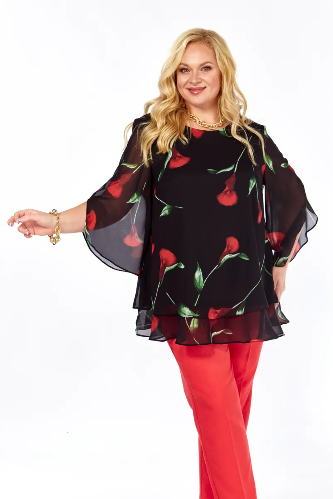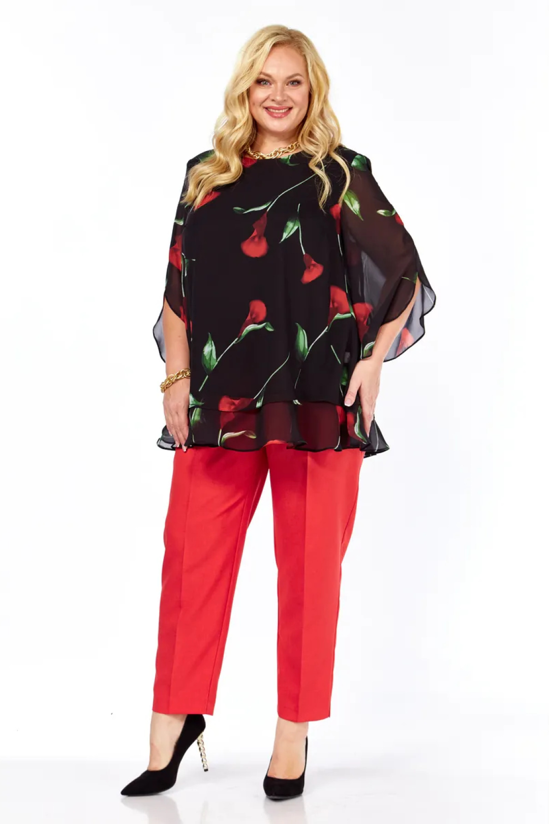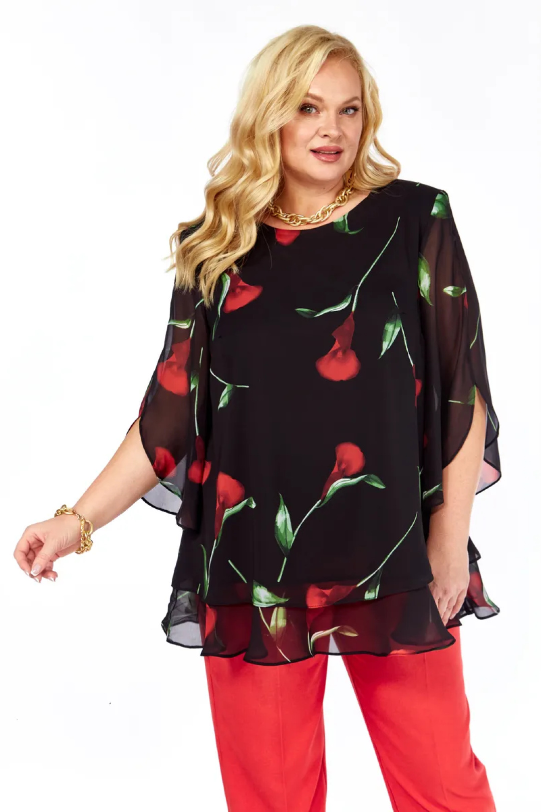 Изделие позволит чувствовать себя ярко и уверенно. Воздушная блуза, свободного кроя, выполнена из принтованного шифона, что придает уникальность стилю своими красками. На полочке нагрудные вытачки, вырез горловины аккуратной округлой формы. Рукав втачной, свободный. Блуза на подкладке.