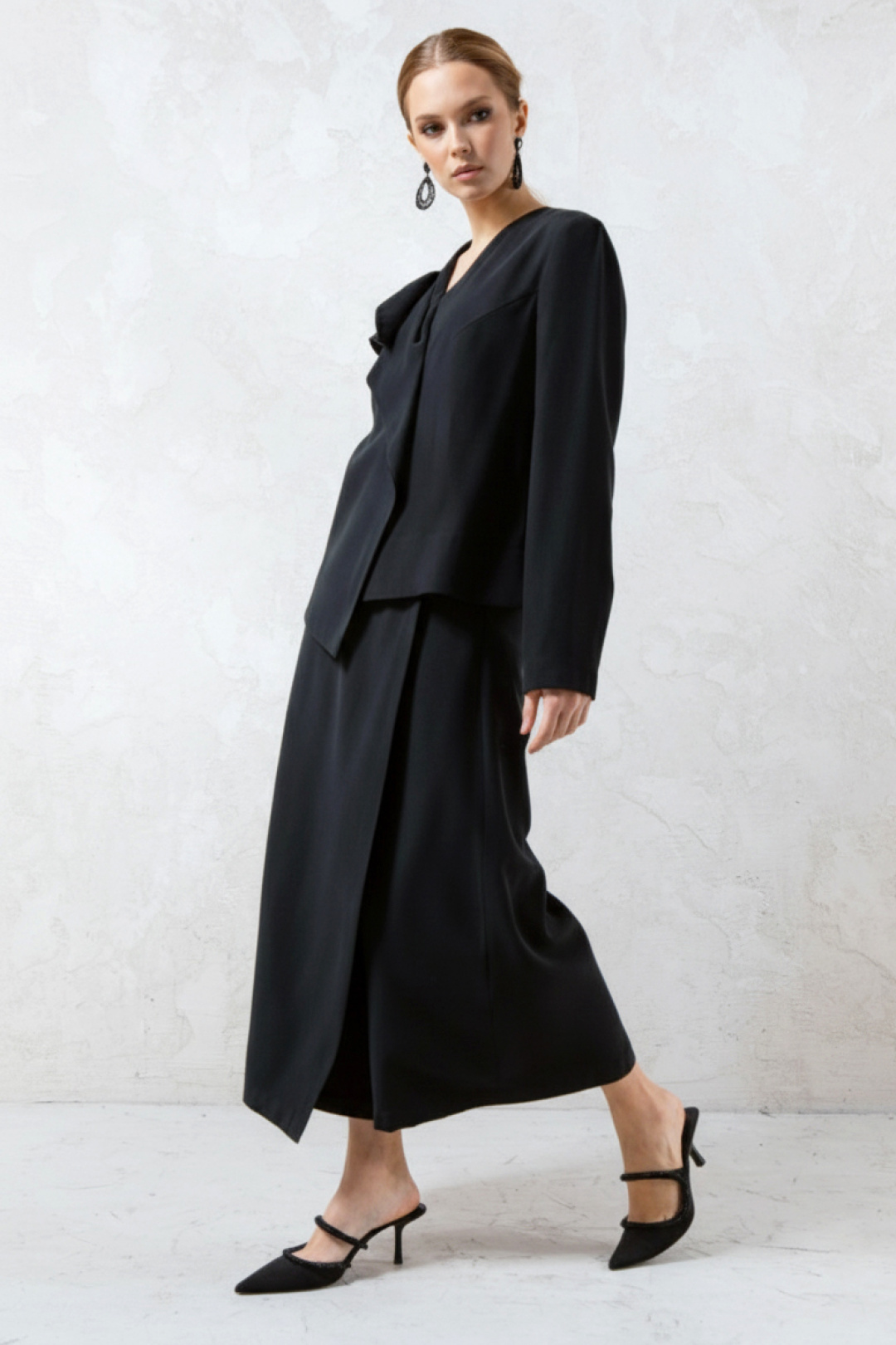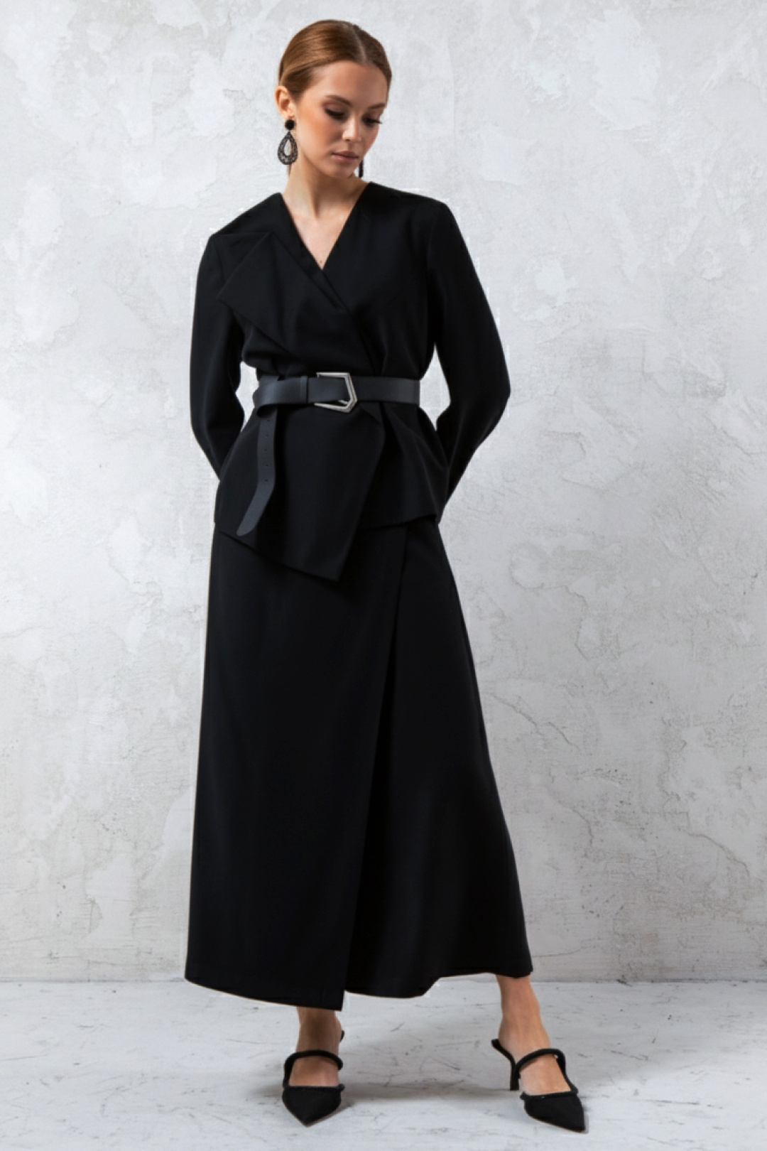 Элегантная чёрная миди длины макси-миди, выполненная в минималистичном стиле.