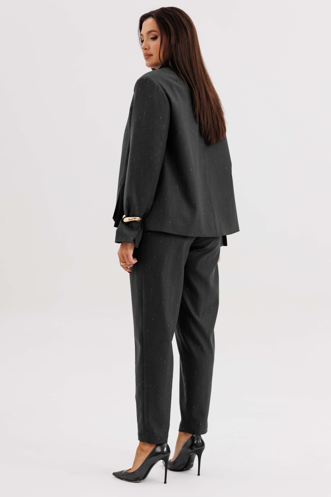 Костюм идеально подойдёт для офисных будней, деловых встреч и стильных повседневных выходов. В нём каждая деталь работает на образ — от благородного оттенка ткани до мягкого блеска люрекса.