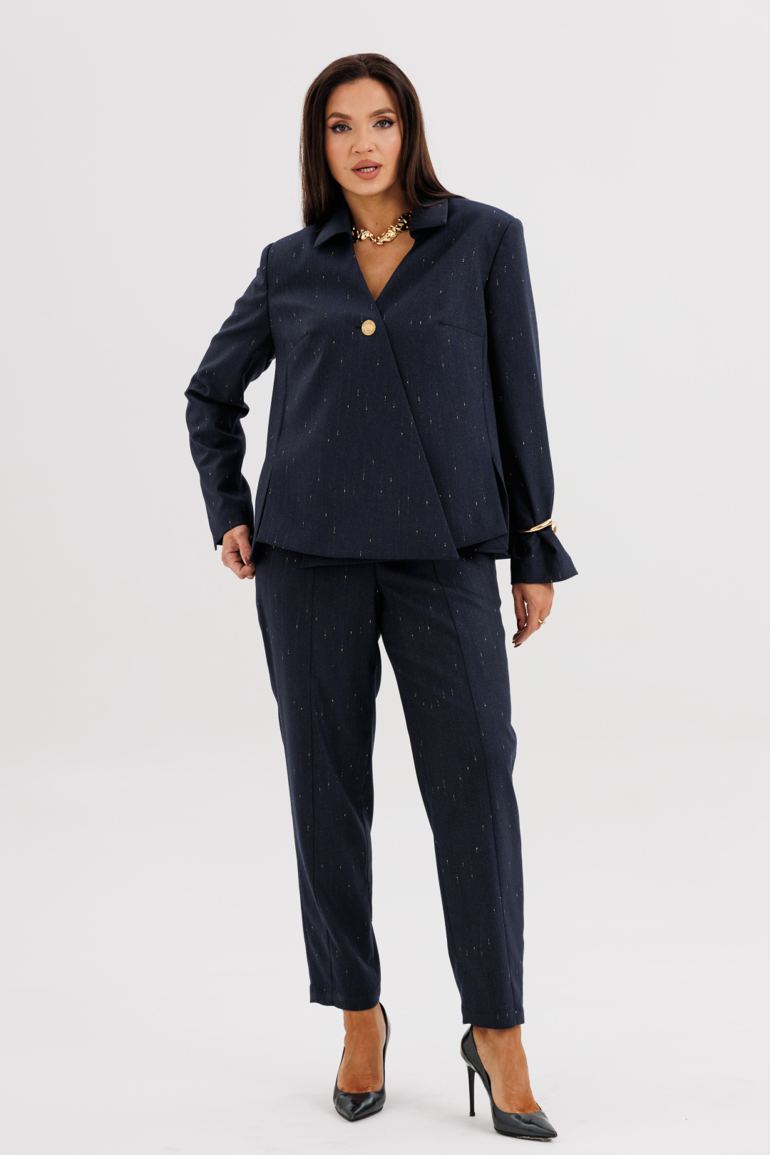 Элегантный брючный костюм из поливискозной ткани с лёгким вкраплением люрекса — выбор современных женщин, ценящих утончённый стиль и комфорт.