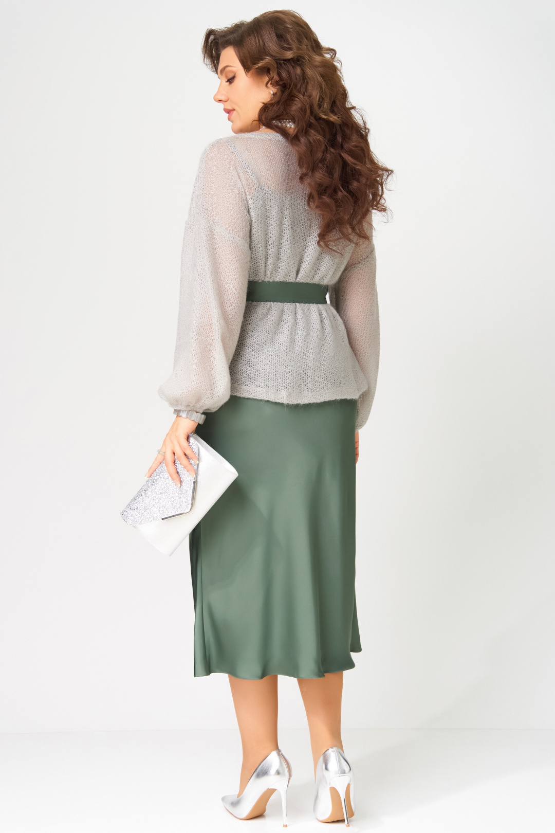 "Эдита" — элегантный образ для волшебной ночи. Сатиновое платье струится мягким блеском, а трикотажная накидка из махера с шерстью добавляет тепла и фактурности. Идеальный наряд для встречи Нового года и других торжеств, когда хочется сиять и чувствовать себя особенно.