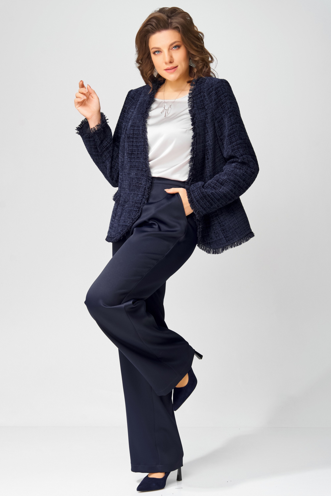 Трехпредметный женский комплект включает жакет, брюки и майку-топ — идеальное сочетание классики и комфорта: