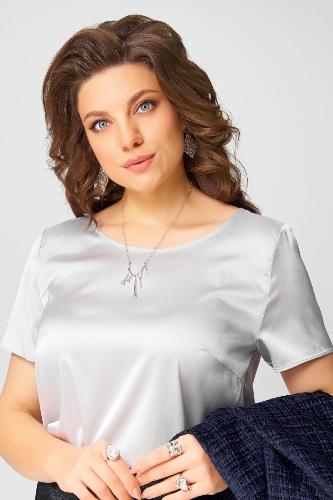 Майка-топ из лёгкого атласа, прямого силуэта, с нагрудными вытачками и разрезами в боковых швах. Обработка низа и рукавов подчёркивает качество исполнения.