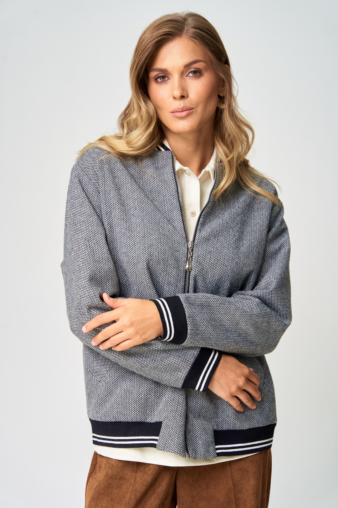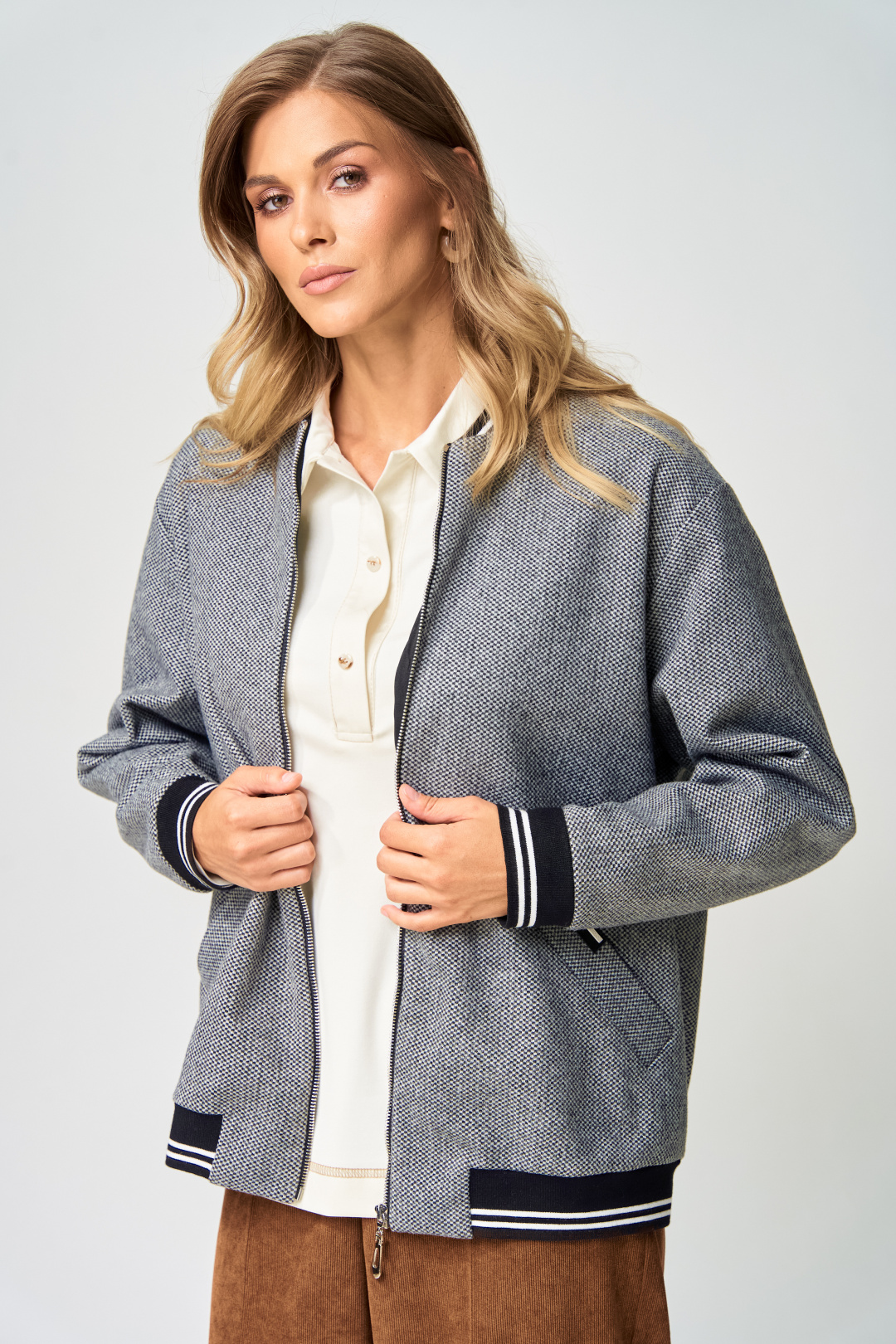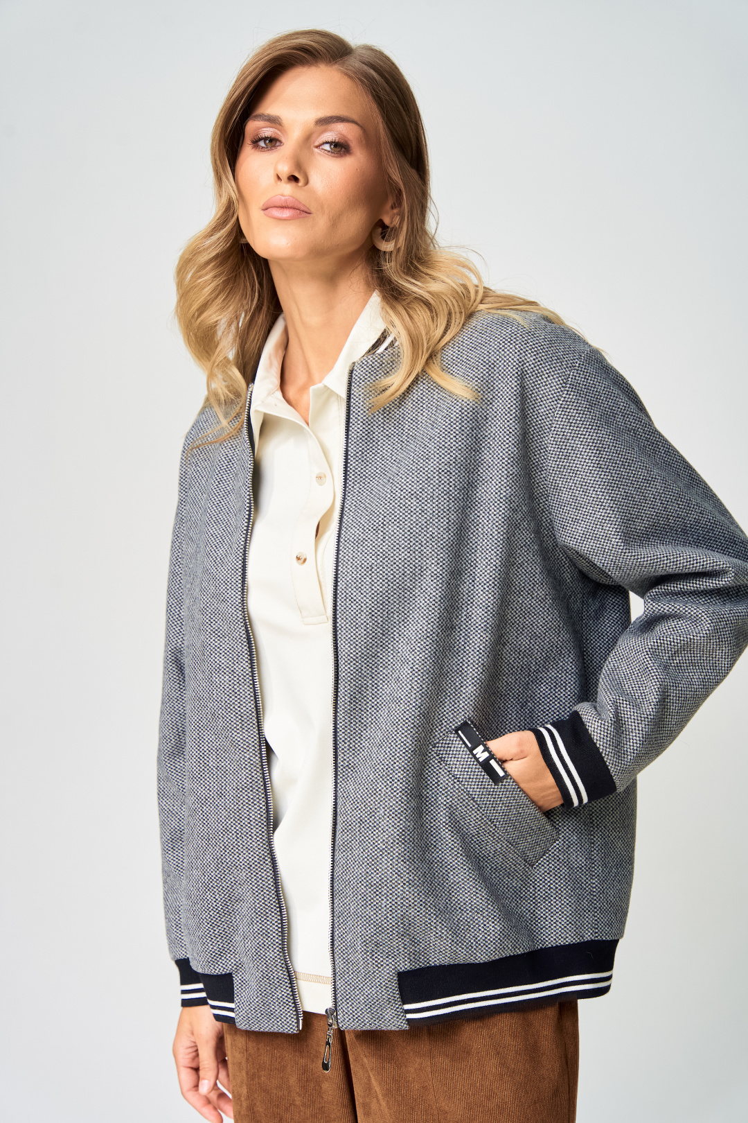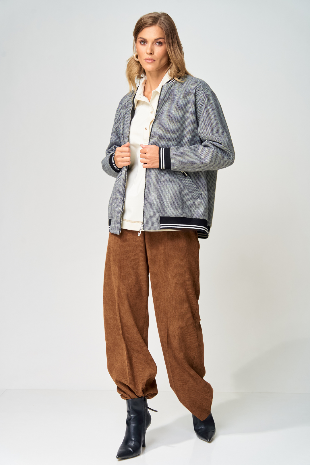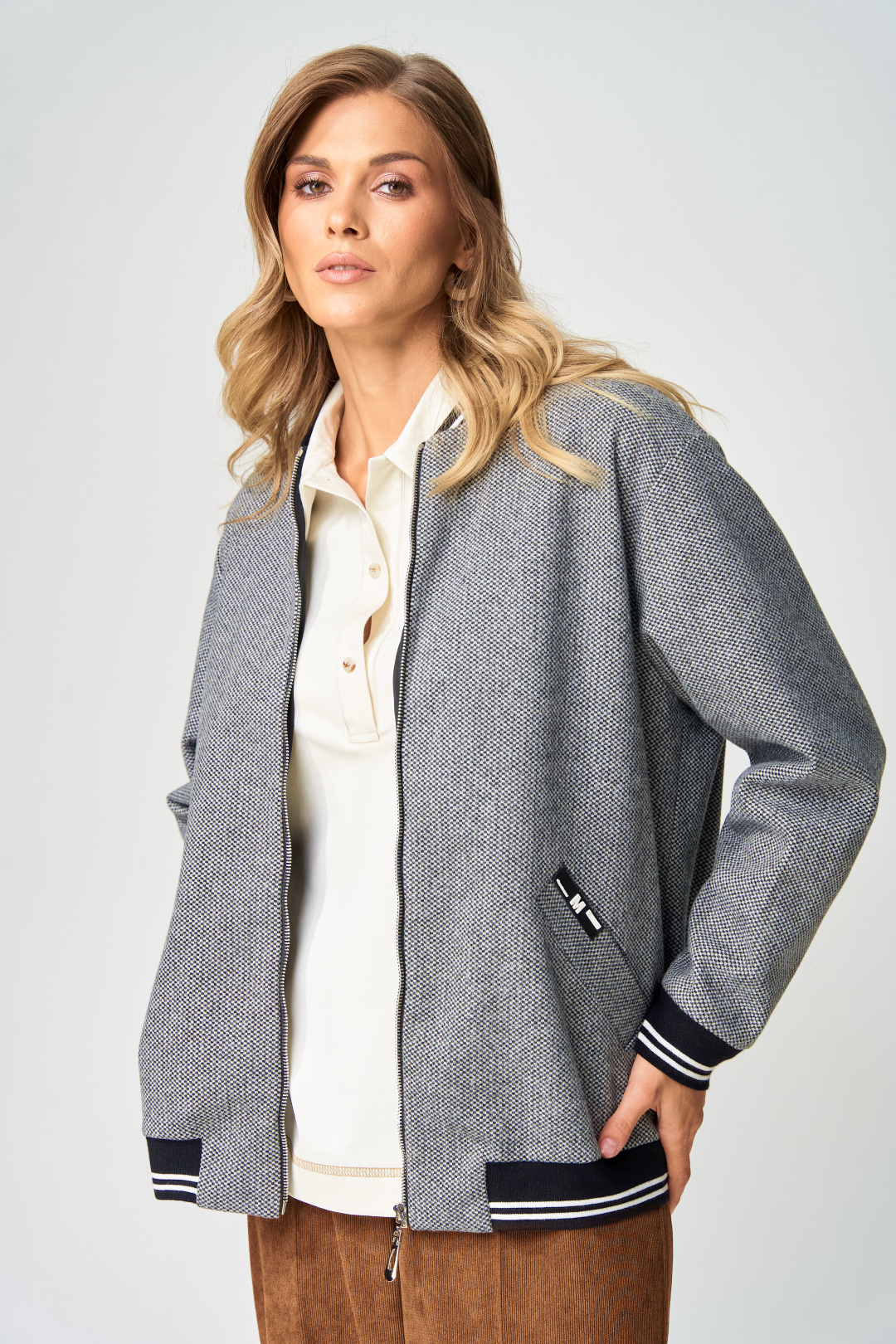 Бомбер выполнен из плотной теплой ткани, перед с застежкой на молнию. Горловина округлой формы обработана довязом. В передней части прорезные карманы с листочкой с наклонным входом. На правой листочке расположена нашивка. Рукав втачной одношовный с манжетой - довязом понизу. Бомбер на подкладке. Длина жакета - 69 см, длина рукава жакета - 57 см. Данная модель прекрасно сочетается с другими моделями из нашей коллекции 35204, 15409, 35377. Создайте гармоничный образ, комбинируя эти изделия!