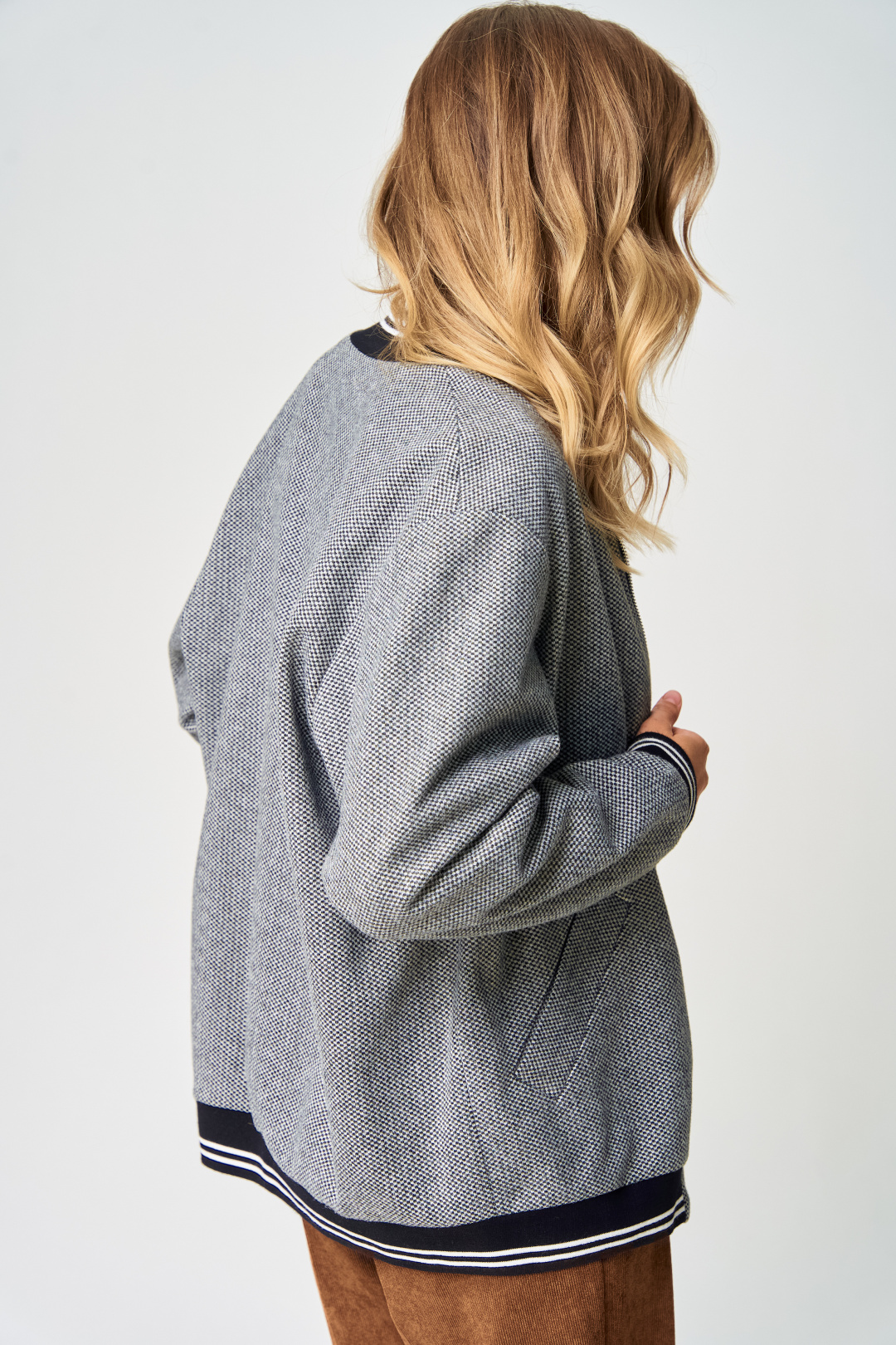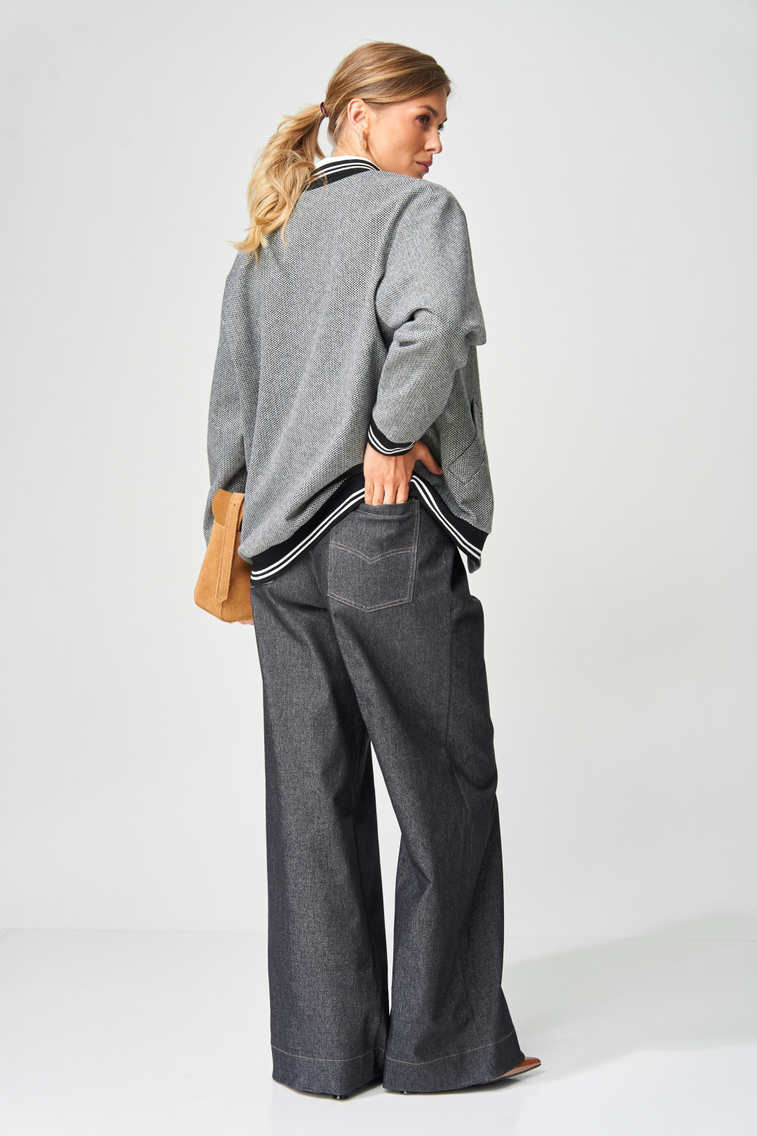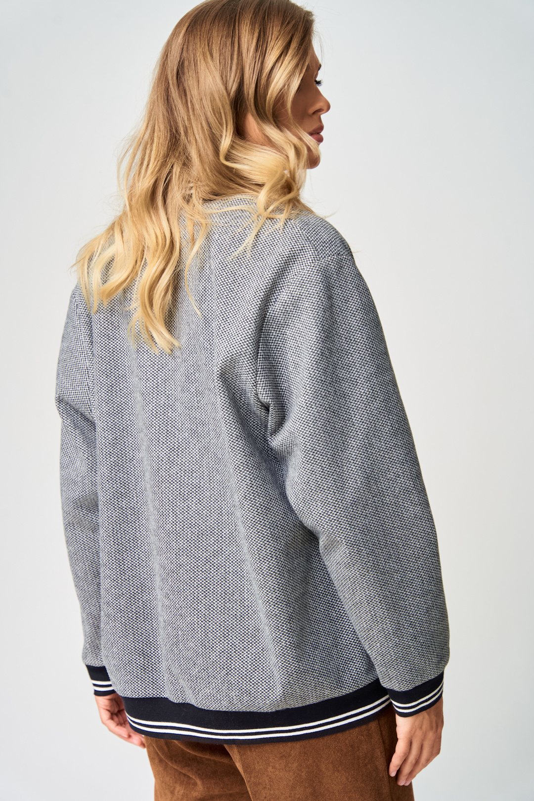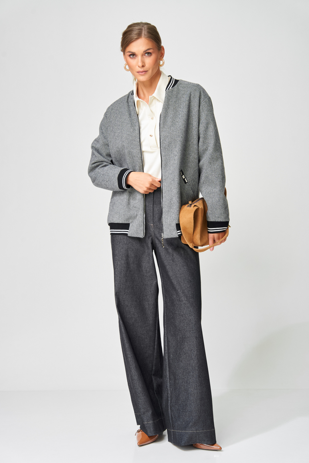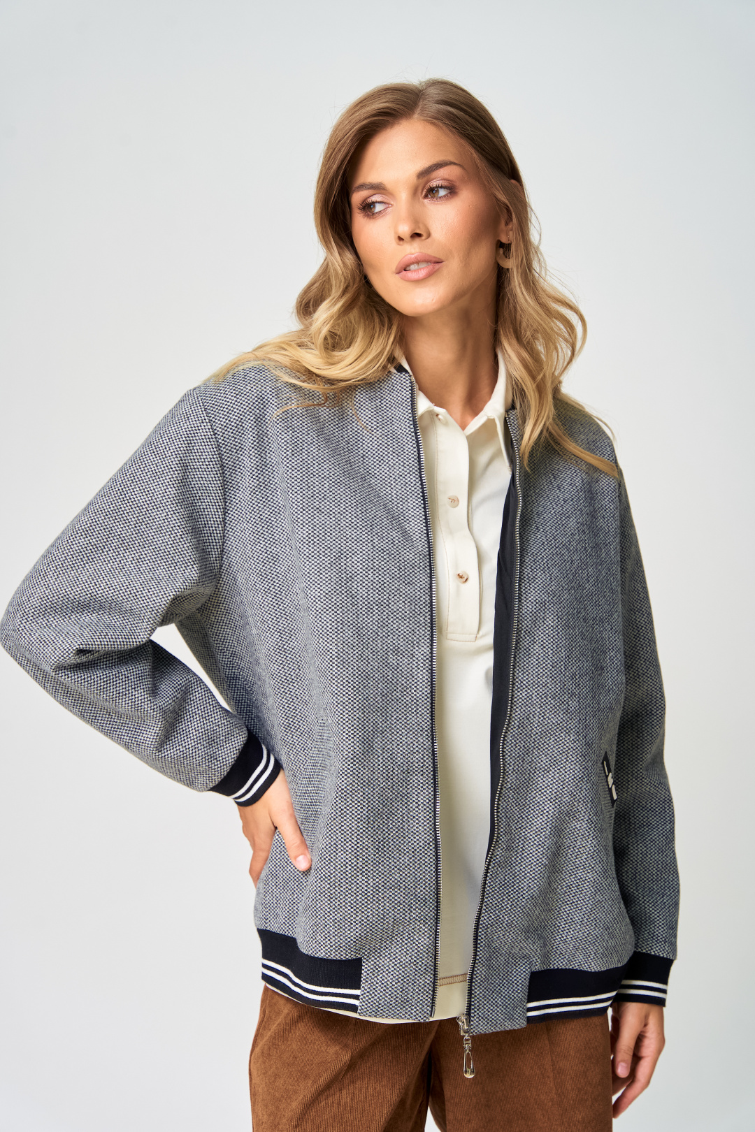 Бомбер выполнен из плотной теплой ткани, перед с застежкой на молнию. Горловина округлой формы обработана довязом. В передней части прорезные карманы с листочкой с наклонным входом. На правой листочке расположена нашивка. Рукав втачной одношовный с манжетой - довязом понизу. Бомбер на подкладке. Длина жакета - 69 см, длина рукава жакета - 57 см. Данная модель прекрасно сочетается с другими моделями из нашей коллекции 35204, 15409, 35377. Создайте гармоничный образ, комбинируя эти изделия!