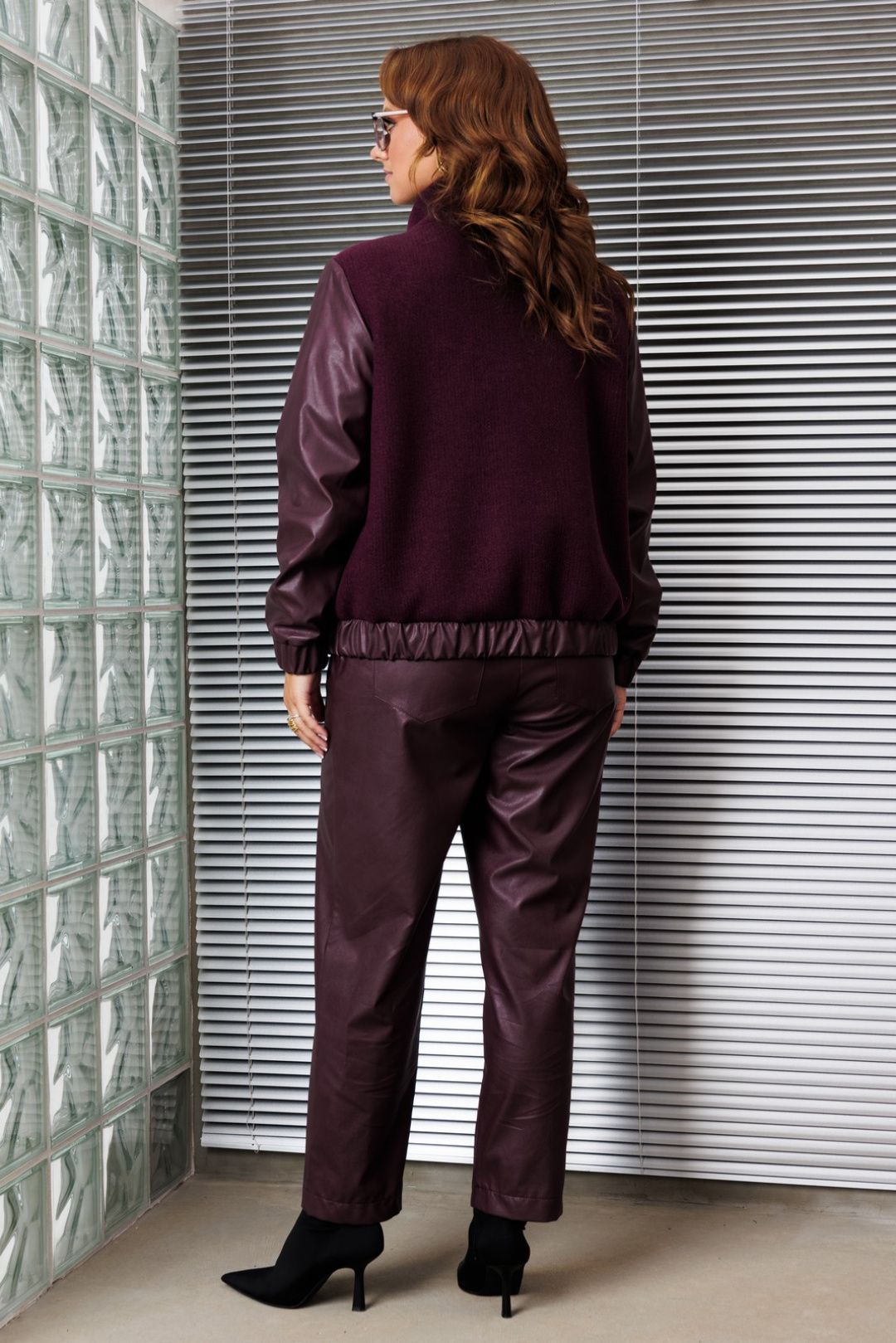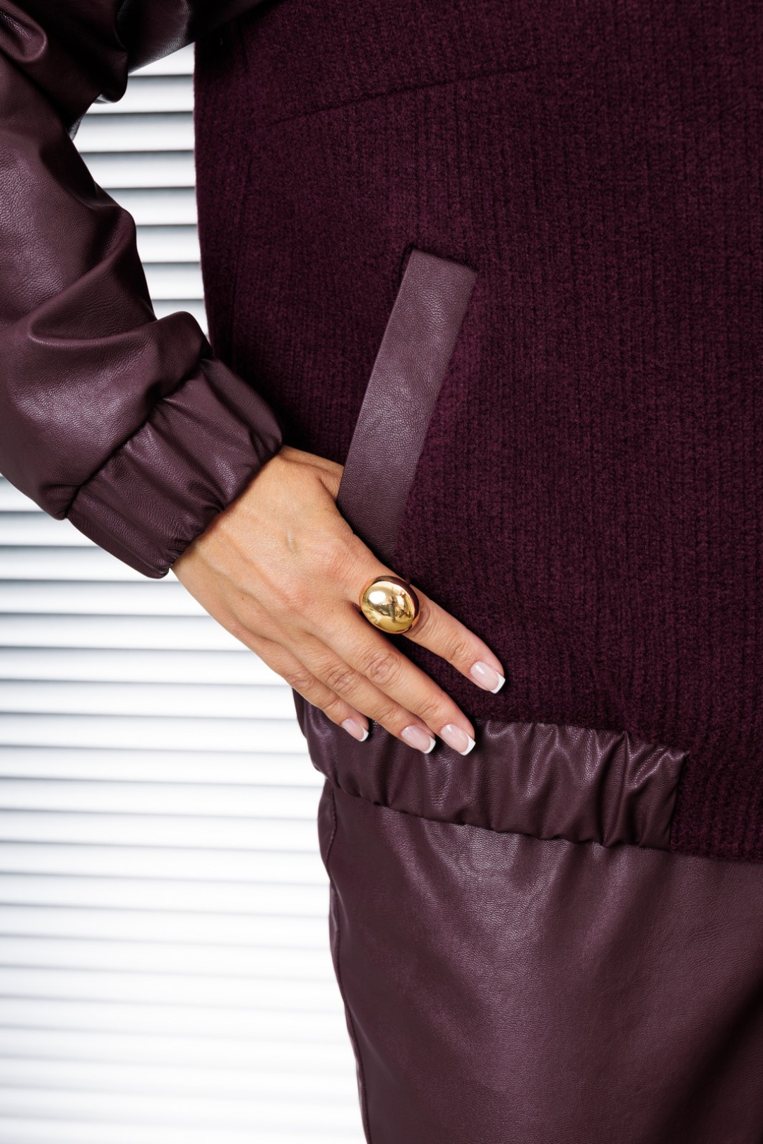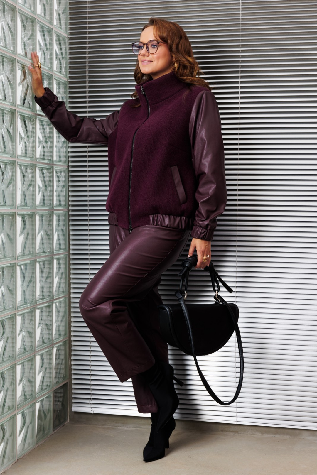 Жакет-бомбер свободного силуэта, выполнен в сочетании из двух тканей, горловина - стойка. Рукав втачной, на резинке по низу. По переду карманы с листочкой, по низу жакет на резинке. Застежка на тесьму-молнию. Изделие на подкалке.