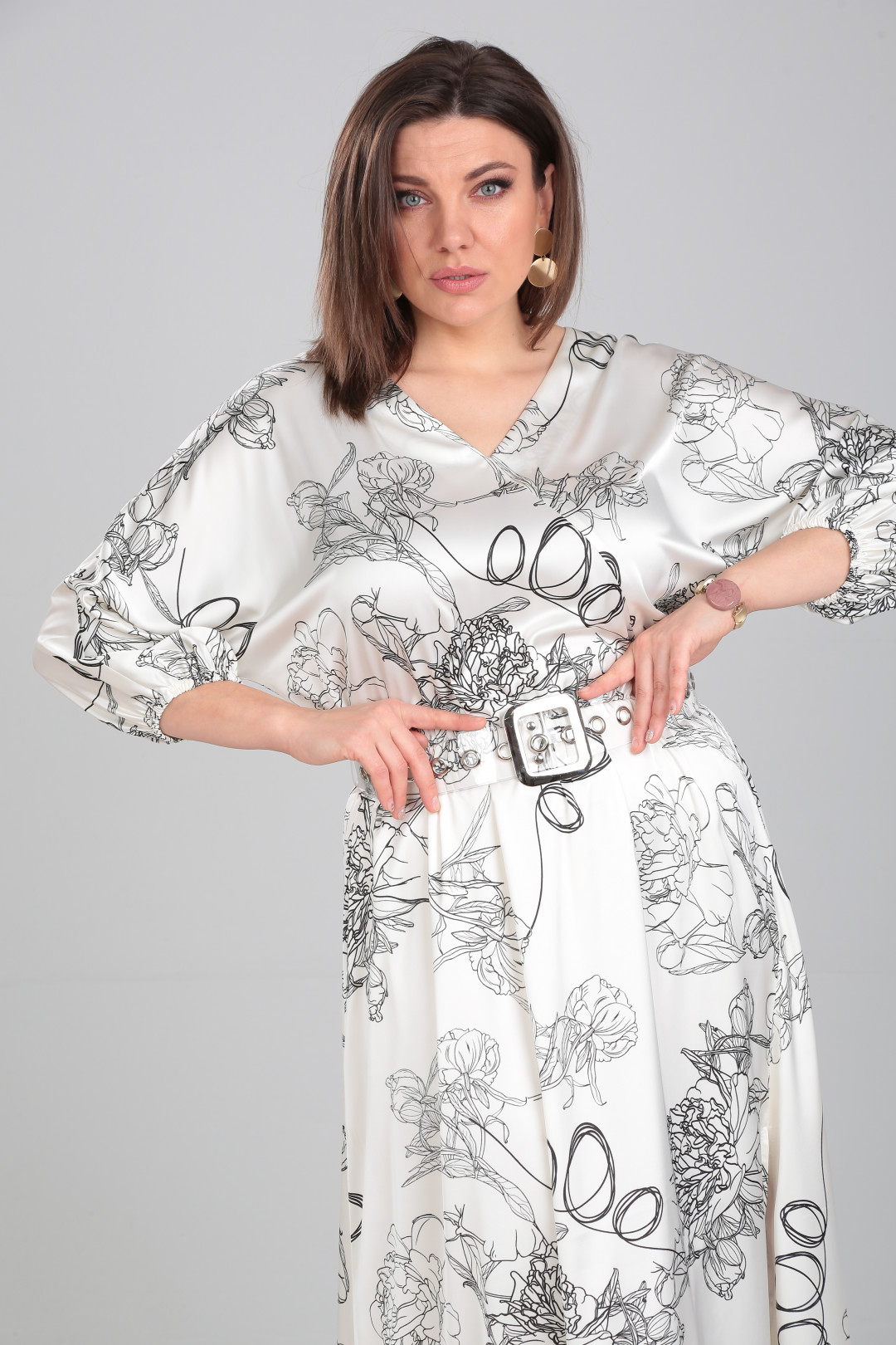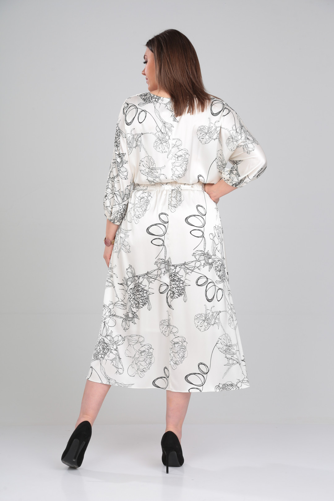 Платье женское из атласного сатина с V образным вырезом горловины , Покрой рукава цельнокроеный с лифом. Низ рукава собран на резиночку. Боковой шов переходит на перед, заканчивается разрезом. Платье без подкладки. Ремень входит в комплект. Длина платья 126 см