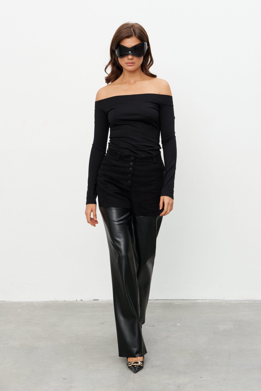 Джемпер из трикотажного полотна прилегающего силуэта с открытыми плечами. Отрезная деталь по верху изделия плотно фиксирует изделие на фигуре. Длина рукава 42р -59 см 44-46р - 59,5 см 48р - 60 см