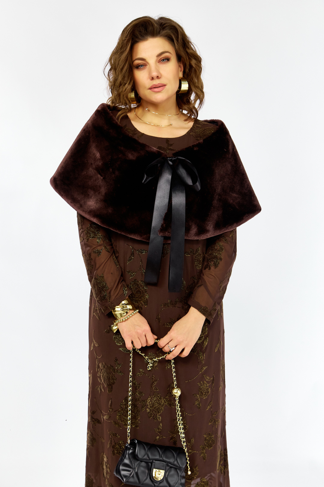 Меховая горжетка в глубоких тёмных тонах её бархатистая текстура контрастирует с лёгкостью платья ,этот комплект идеально подойдёт для вечерних мероприятий торжеств и особых случаев.