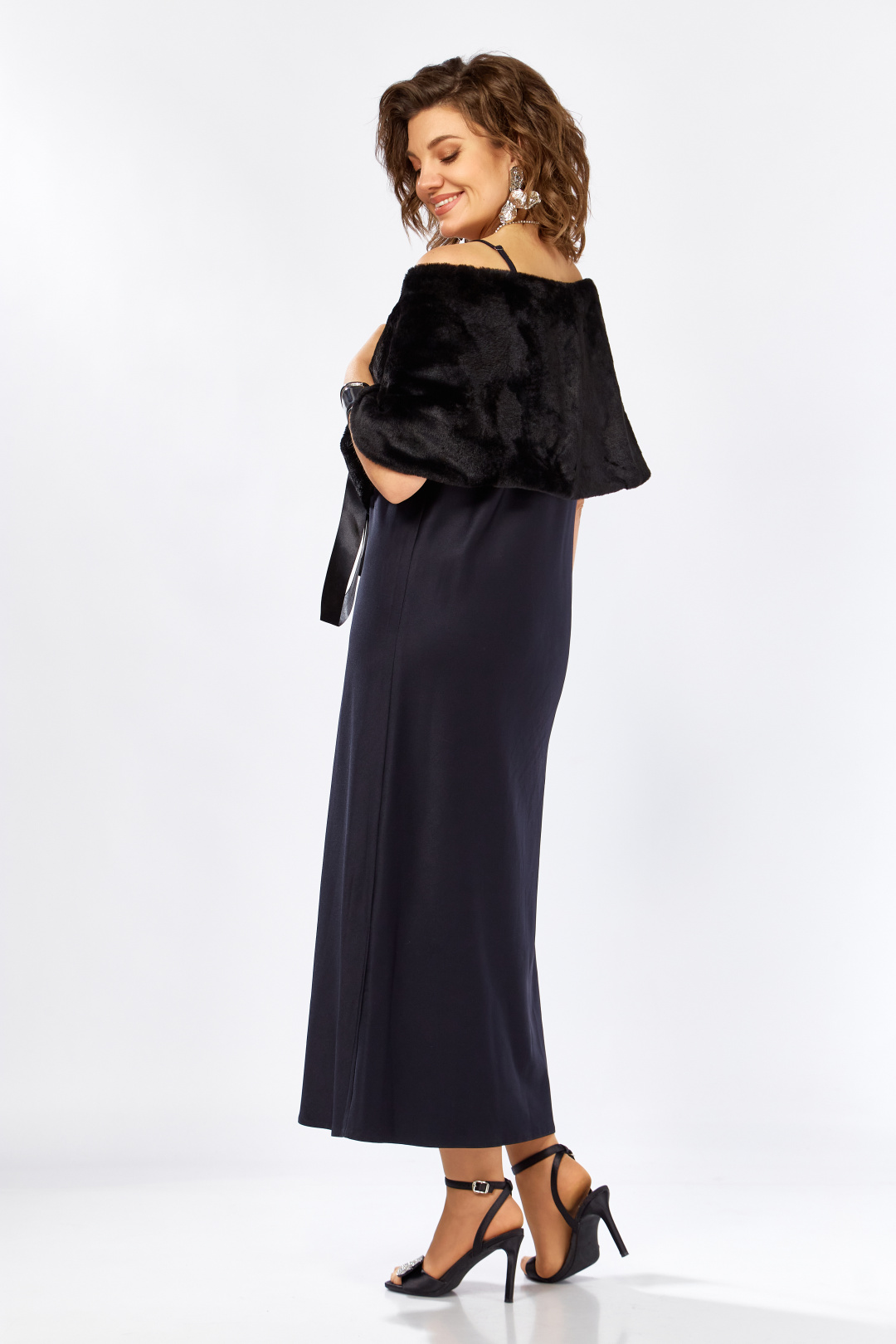 Изысканный комплект сочетает в себе платье из плотного атласа, свободного А образного силуэта ,изящной меховой горжеткой создавая образ утончённой элегантности женственности