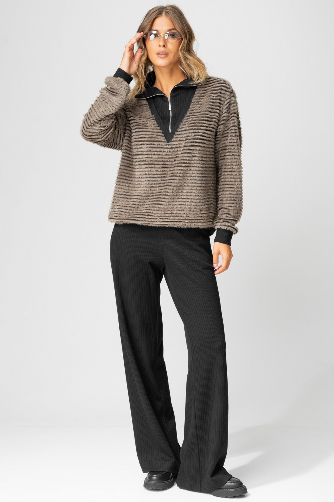 Стильный трикотажный комплект от LAIKONY свободного силуэта, состоящий из джемпера и брюк.