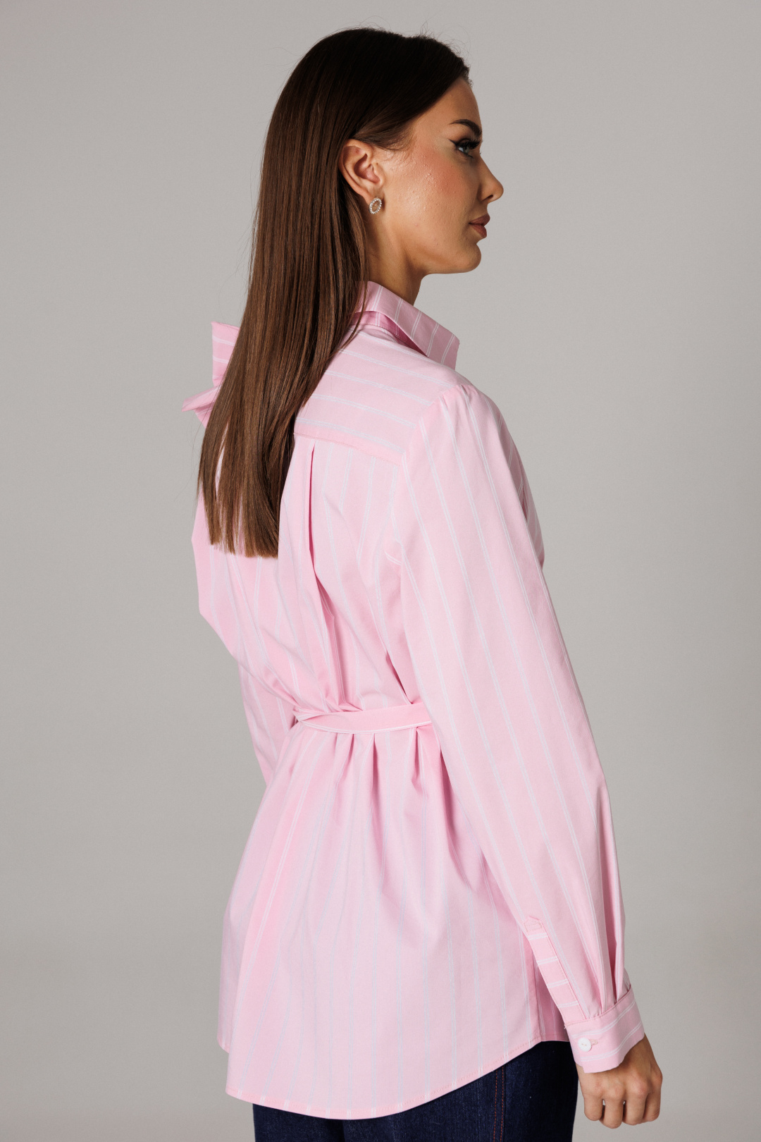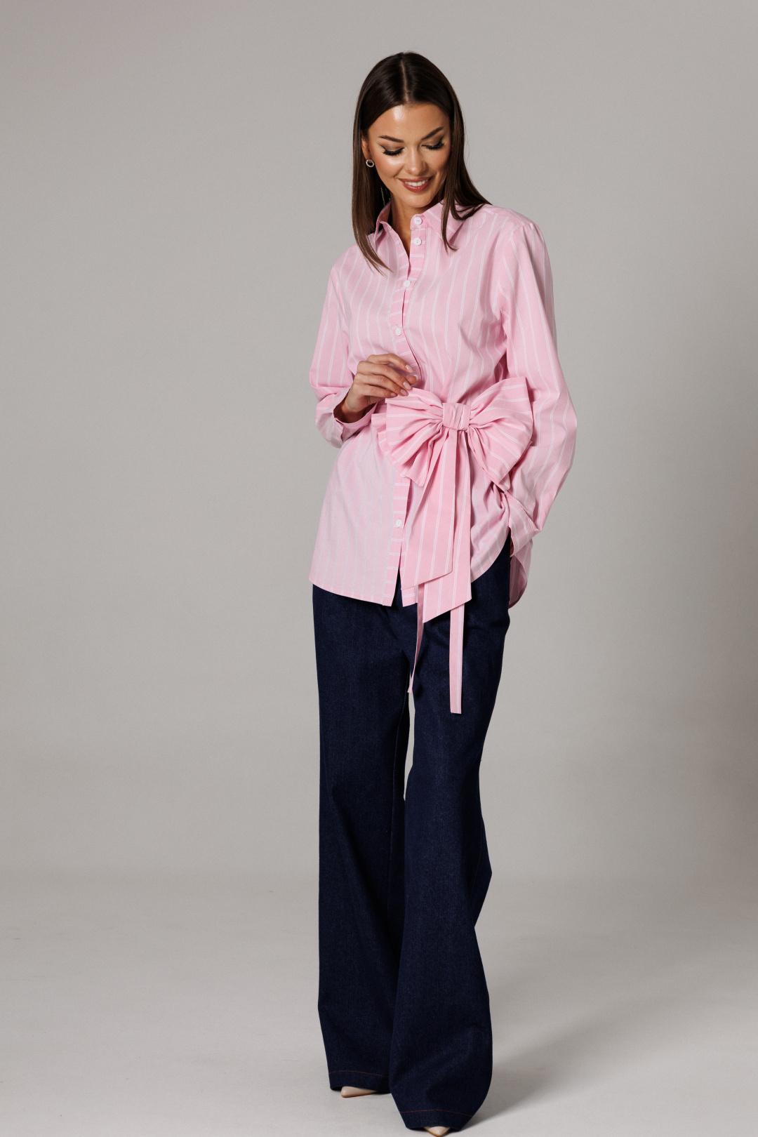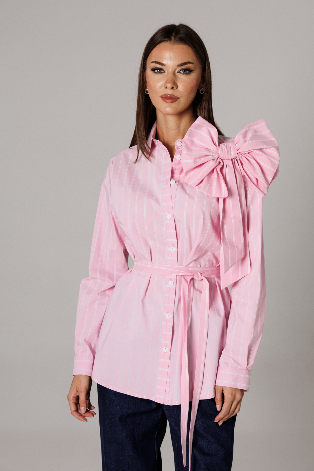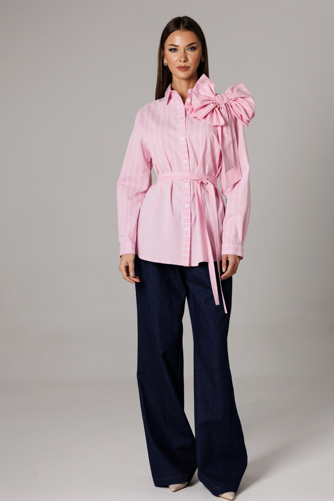 В комплекте присутствуют съемные текстильные дополнения: пояс и декоративная брошь в виде банта.
