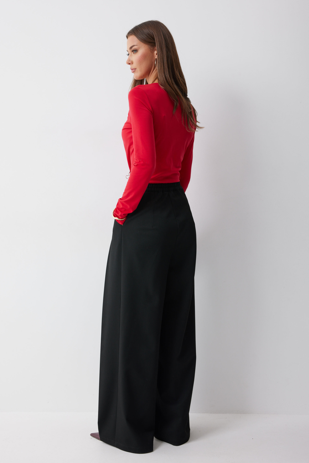 Джемпер прилегающего силуэта из трикотажного полотна. Горловина с фигурным вырезом декоративными складками и фурнитурой. Рукав втачной удлиненный . Обращаем ваше внимание, что фурнитура может отличаться от фото.