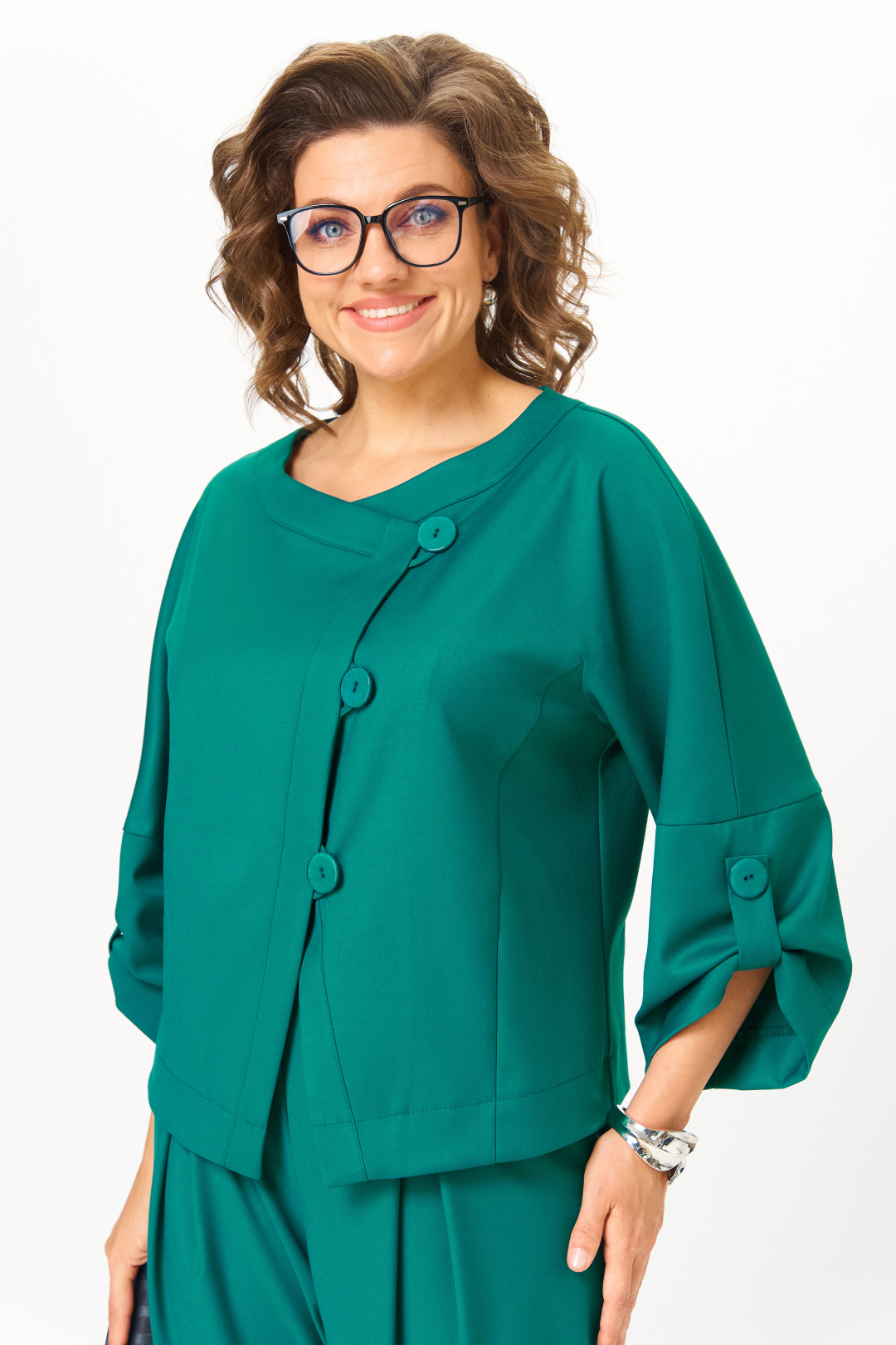 * Жакет с модной асимметрией и декоративными пуговицами.