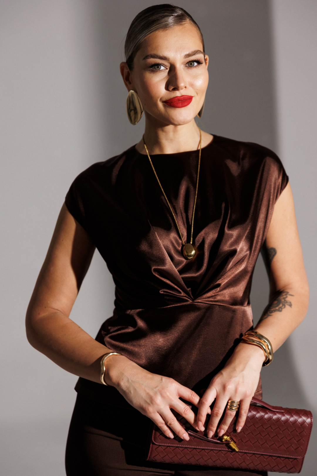 Эта блуза идеально подходит для создания элегантного и непринужденного образа, легко комбинируется с различными видами низа и аксессуарами.