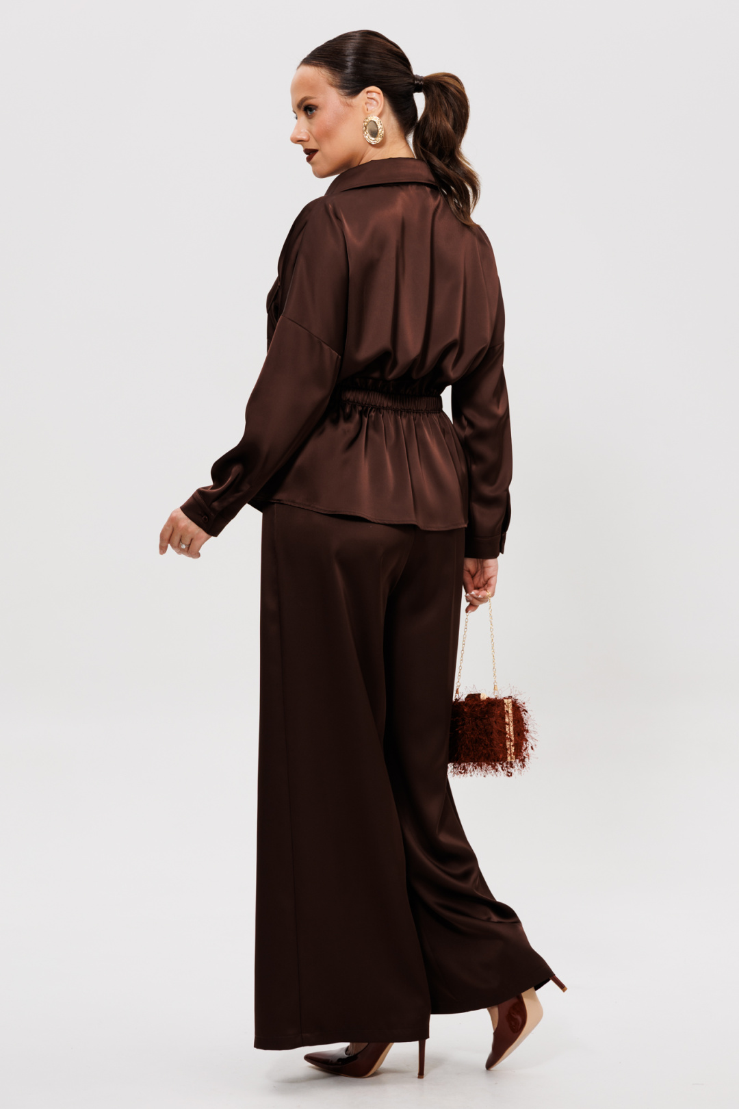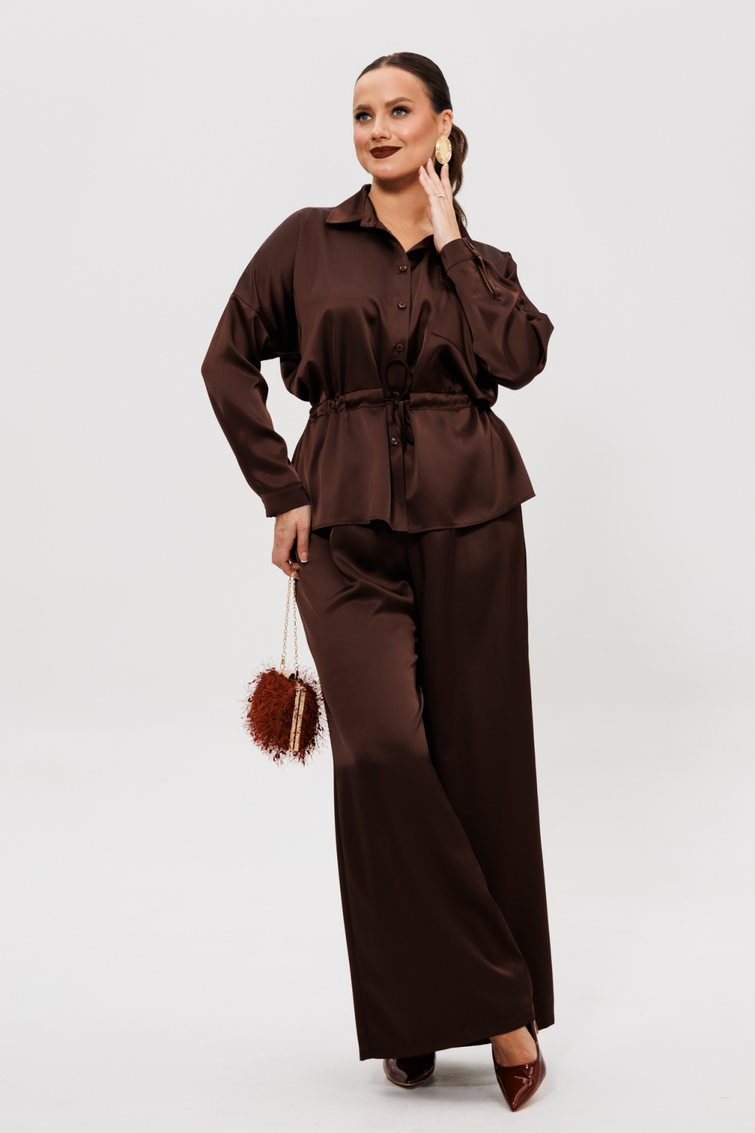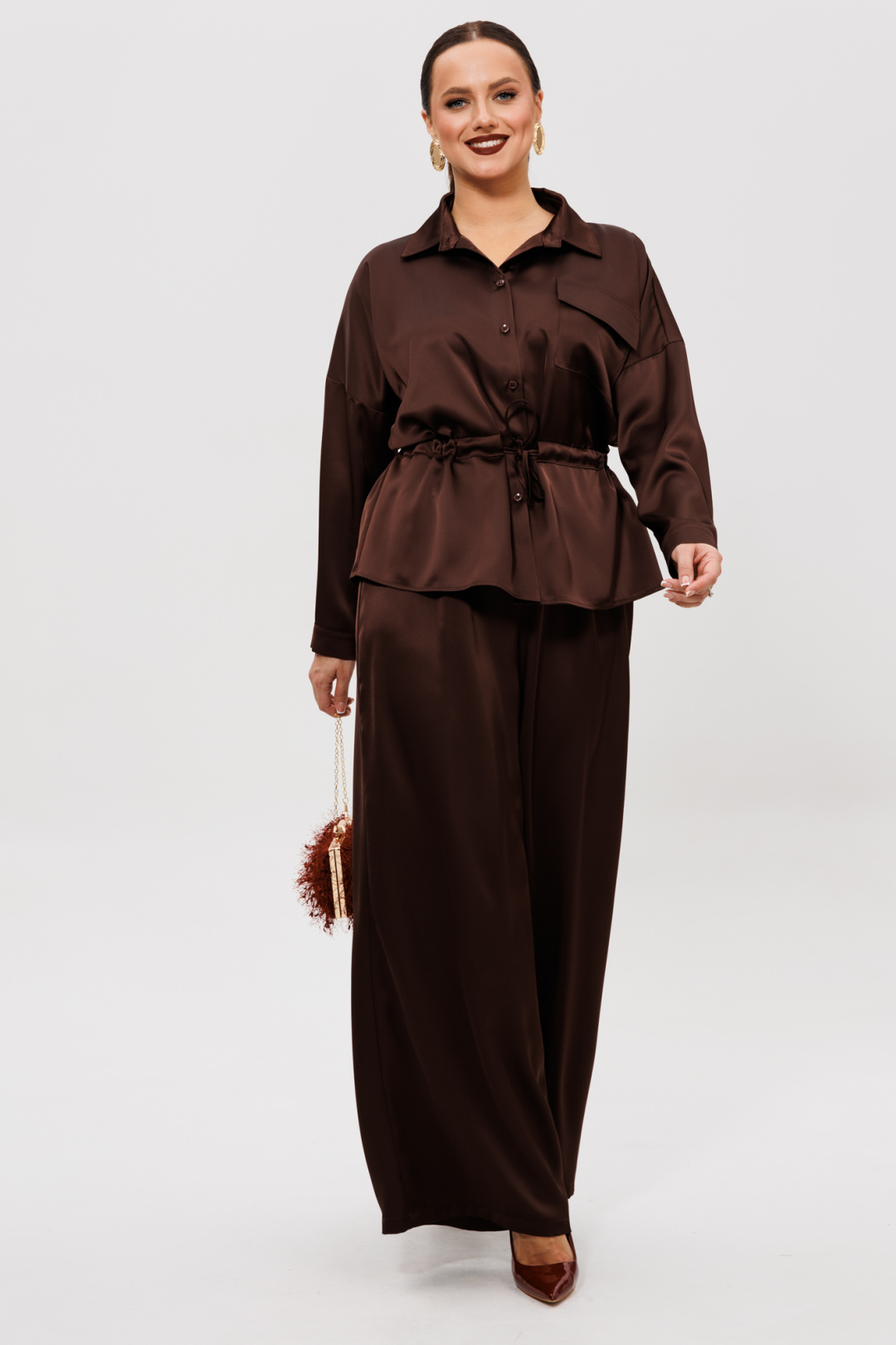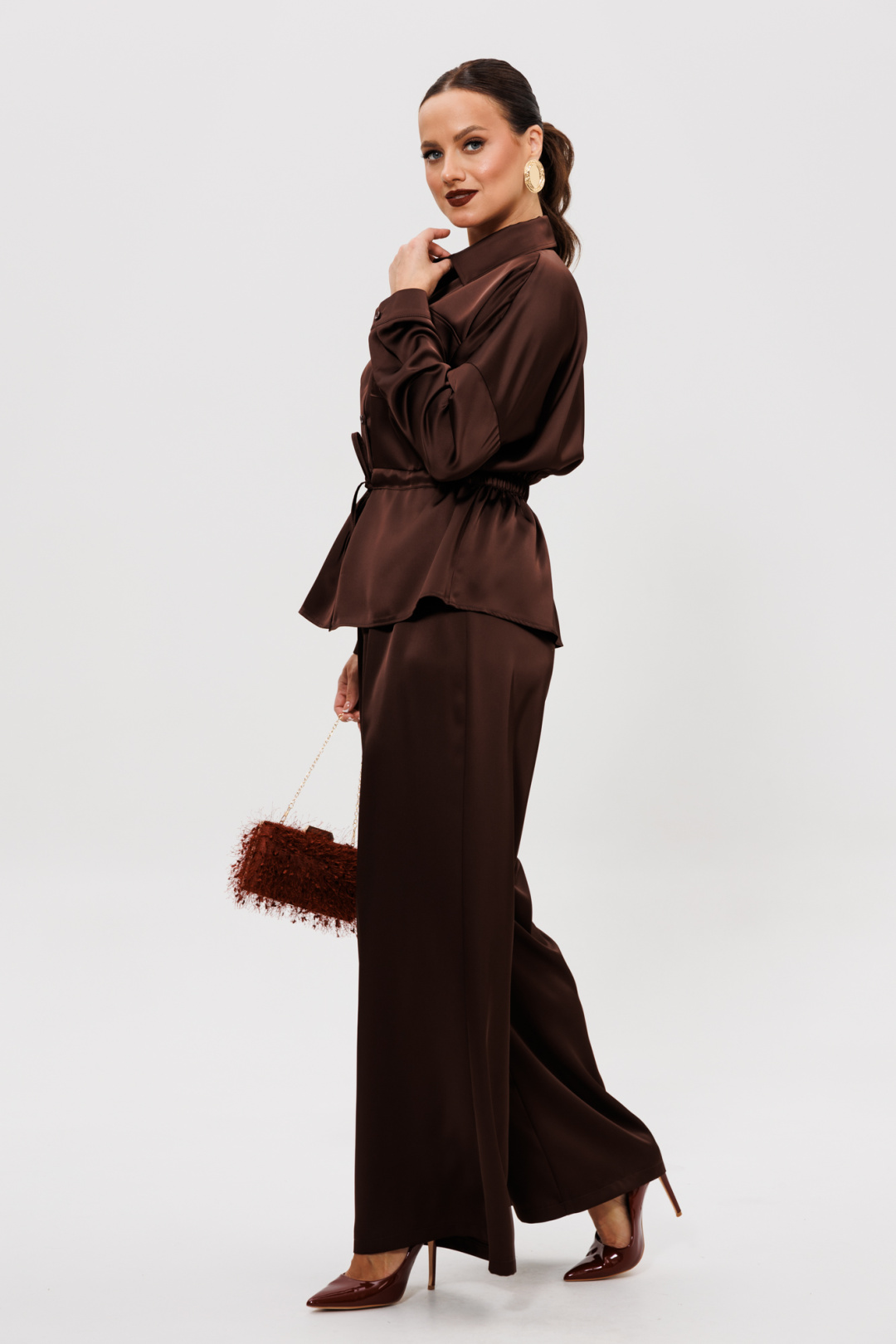 Нарядный брючный костюм, выполненный из струящегося шелка «Армани» (тянется).