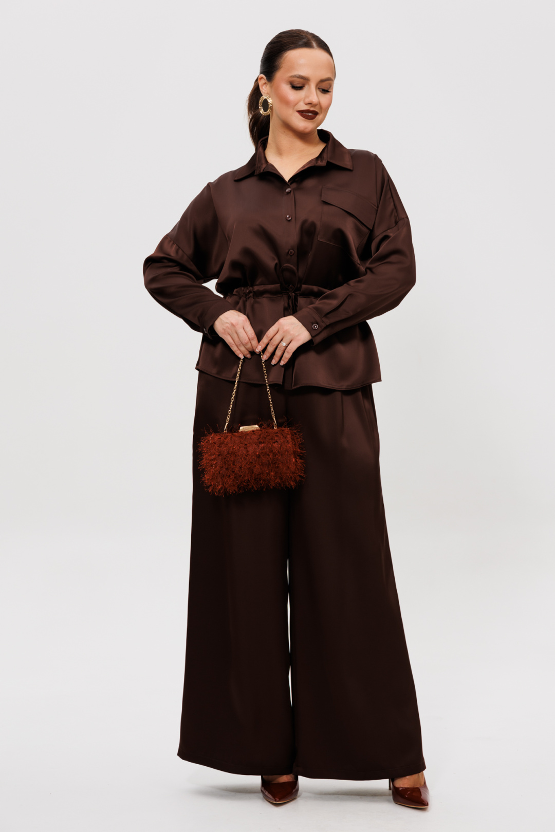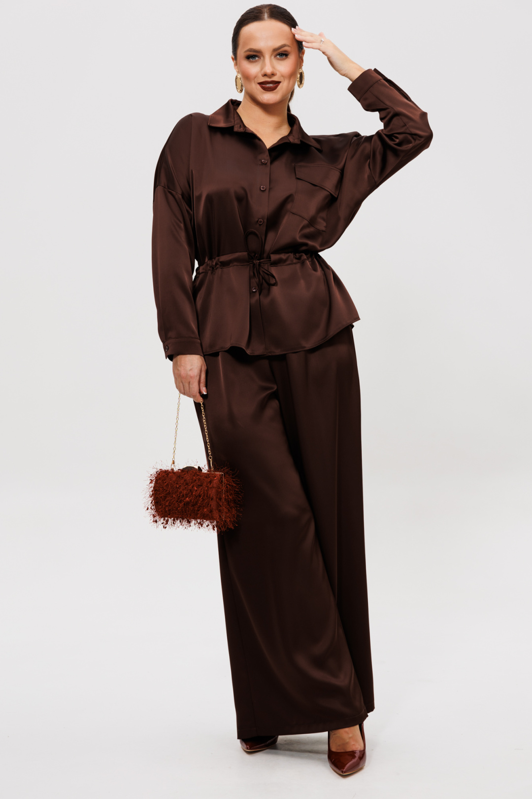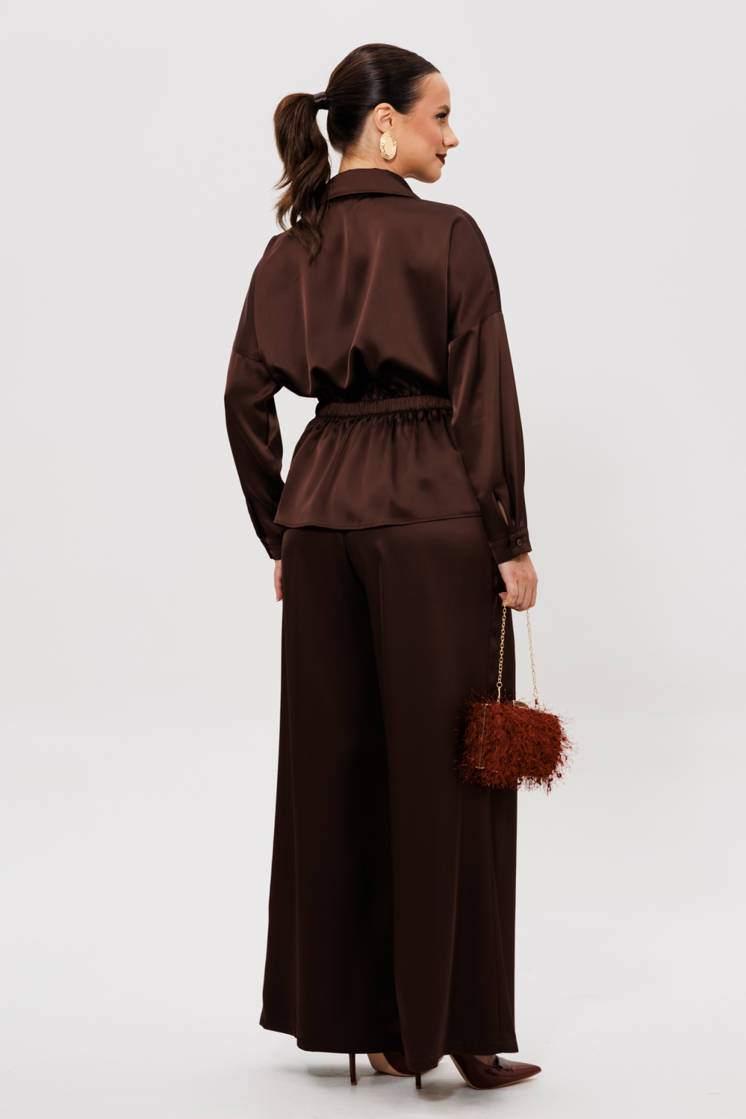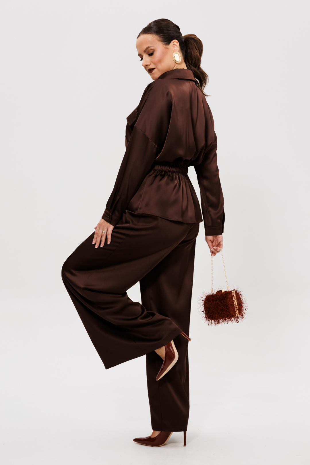 Нарядный брючный костюм, выполненный из струящегося шелка «Армани» (тянется).