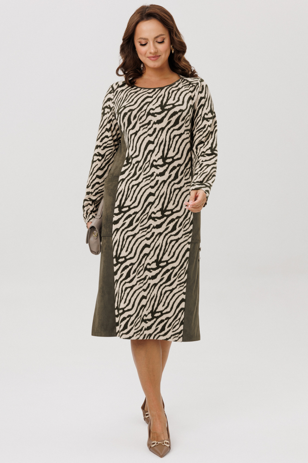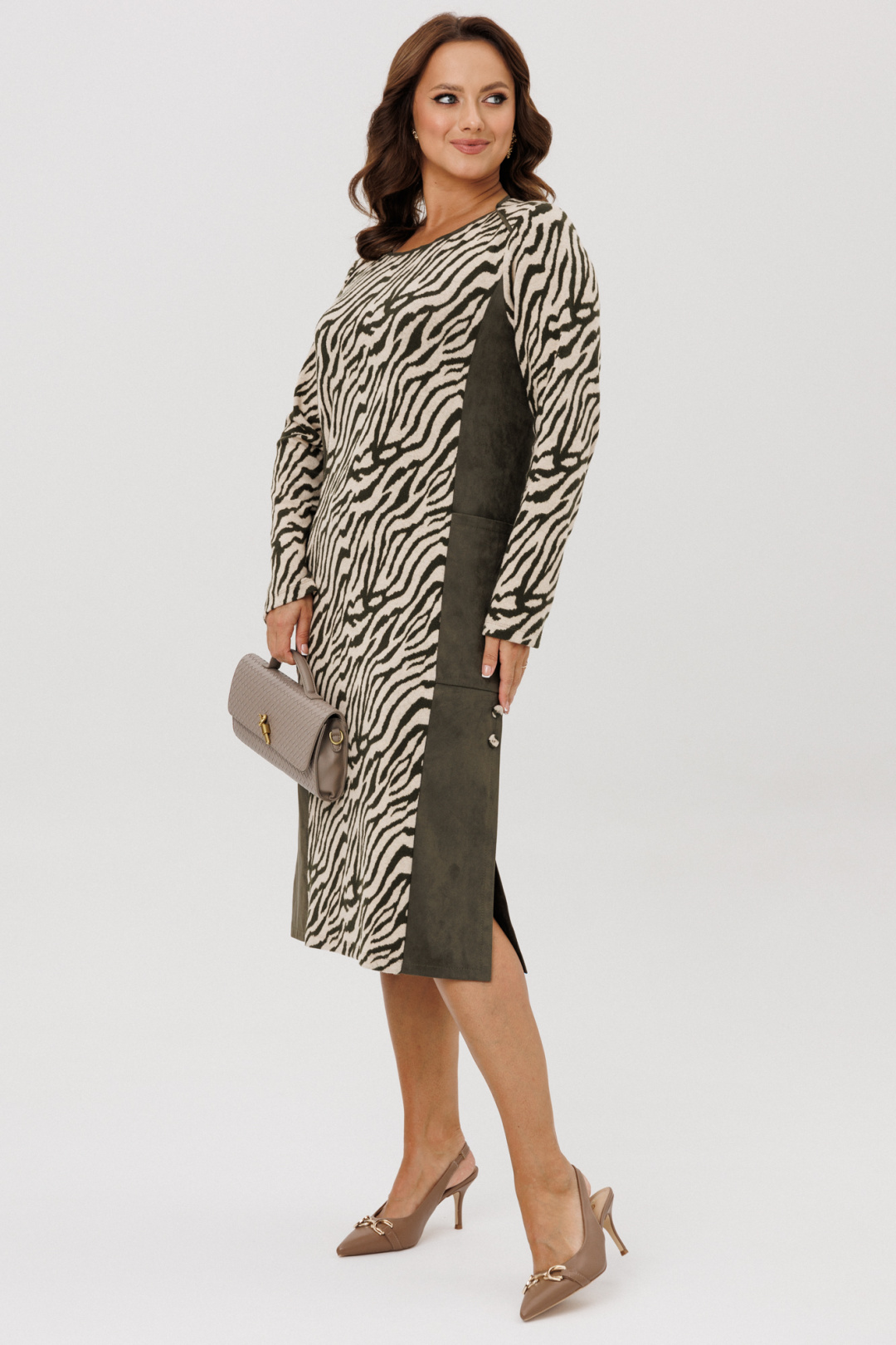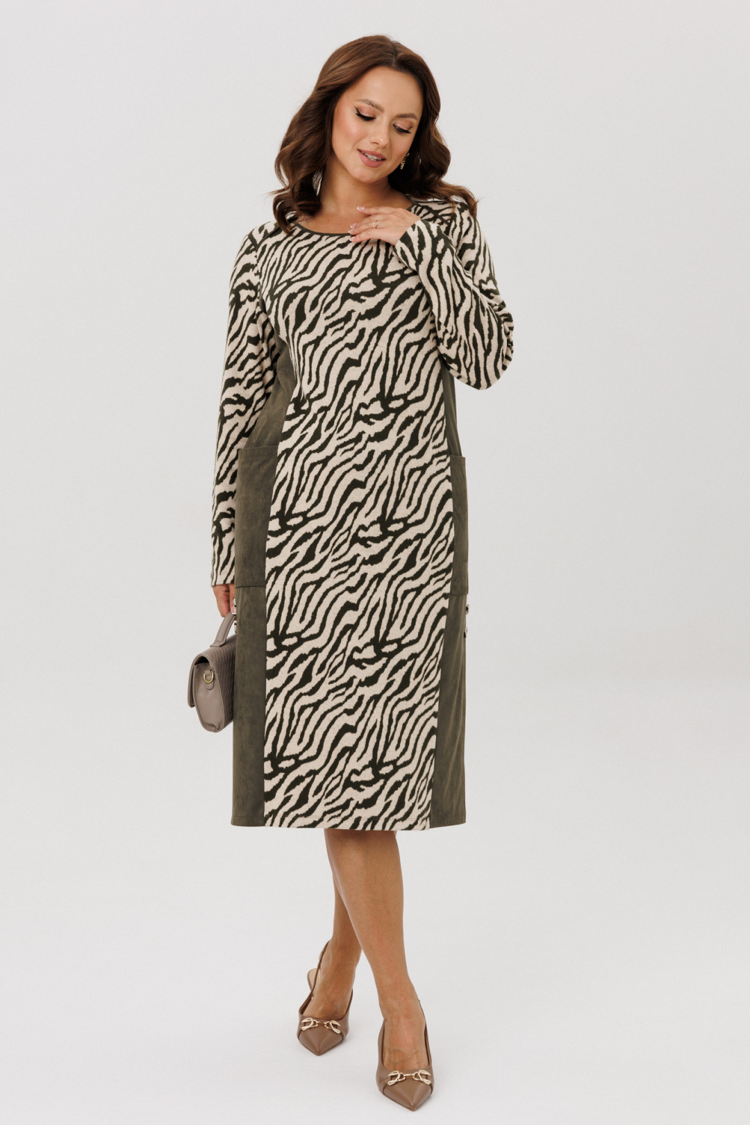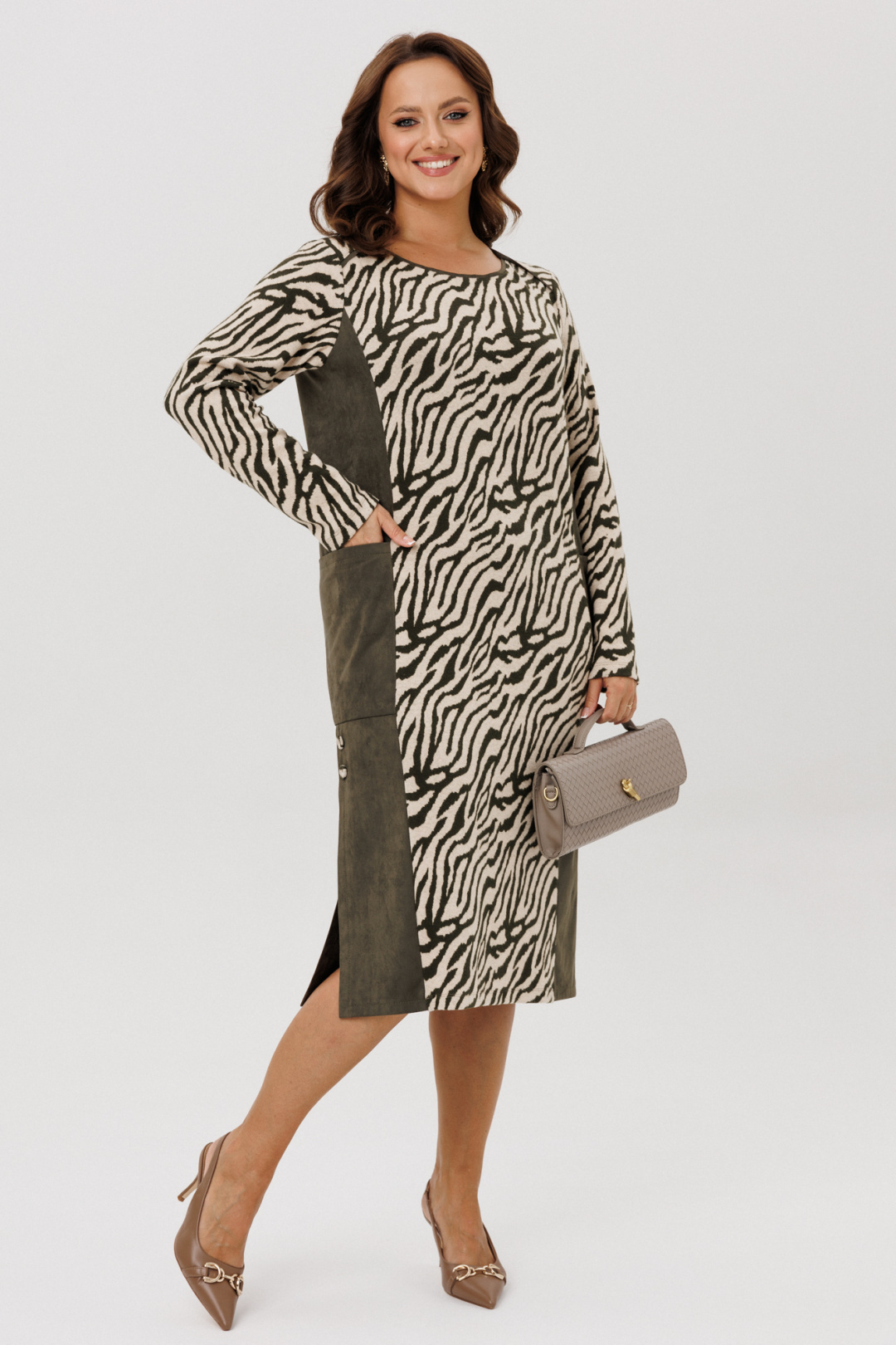 Цвет: зебра бежево-зеленая. По бокам платья вставки хаки (олива).