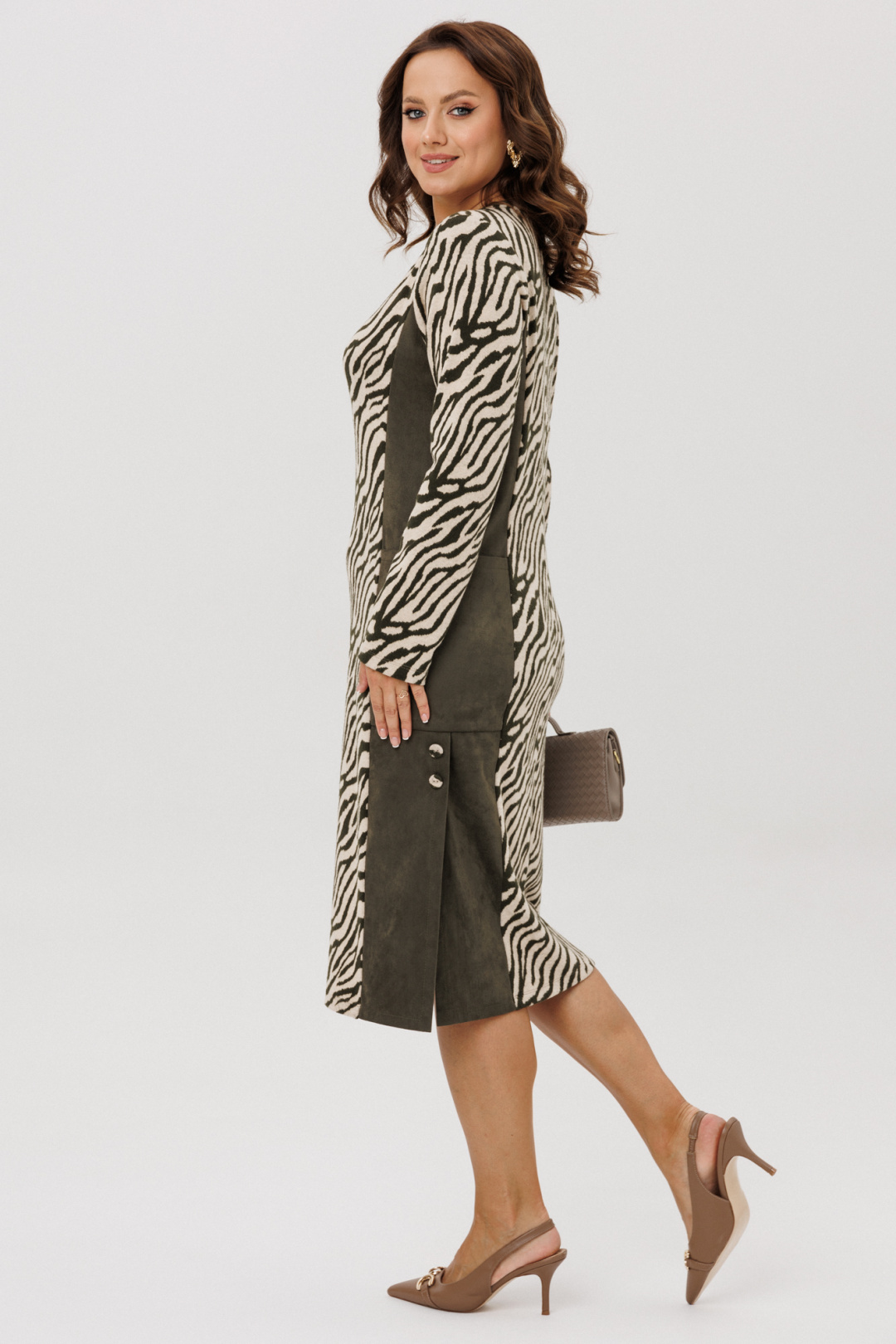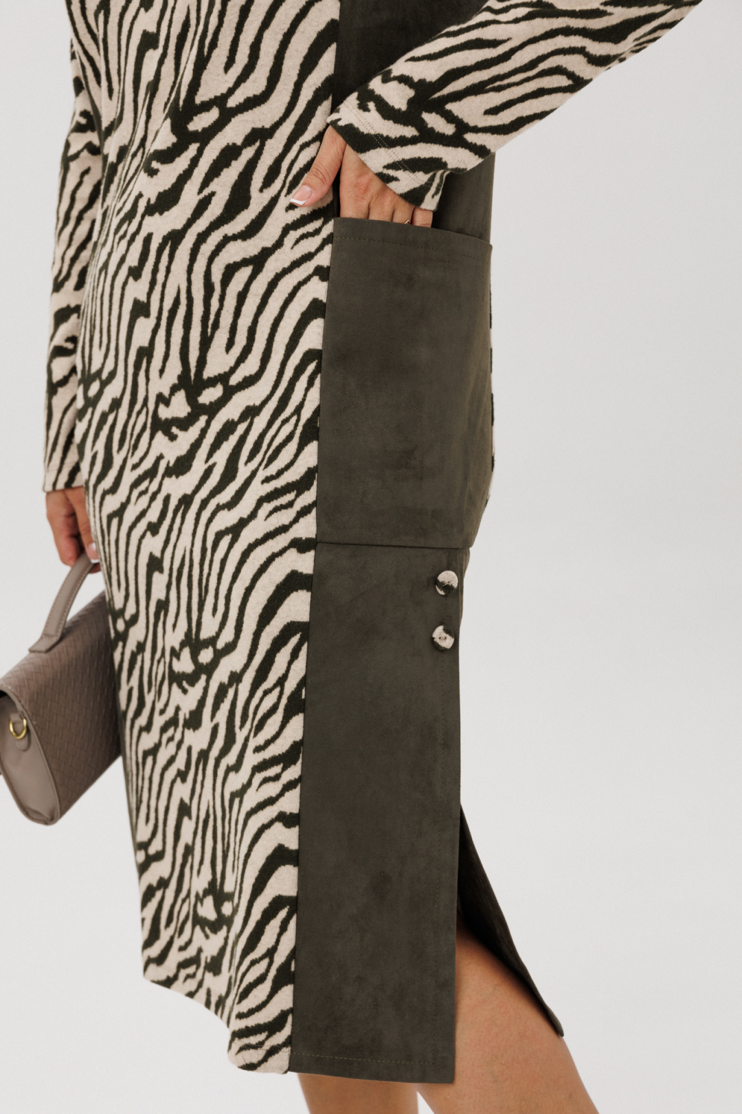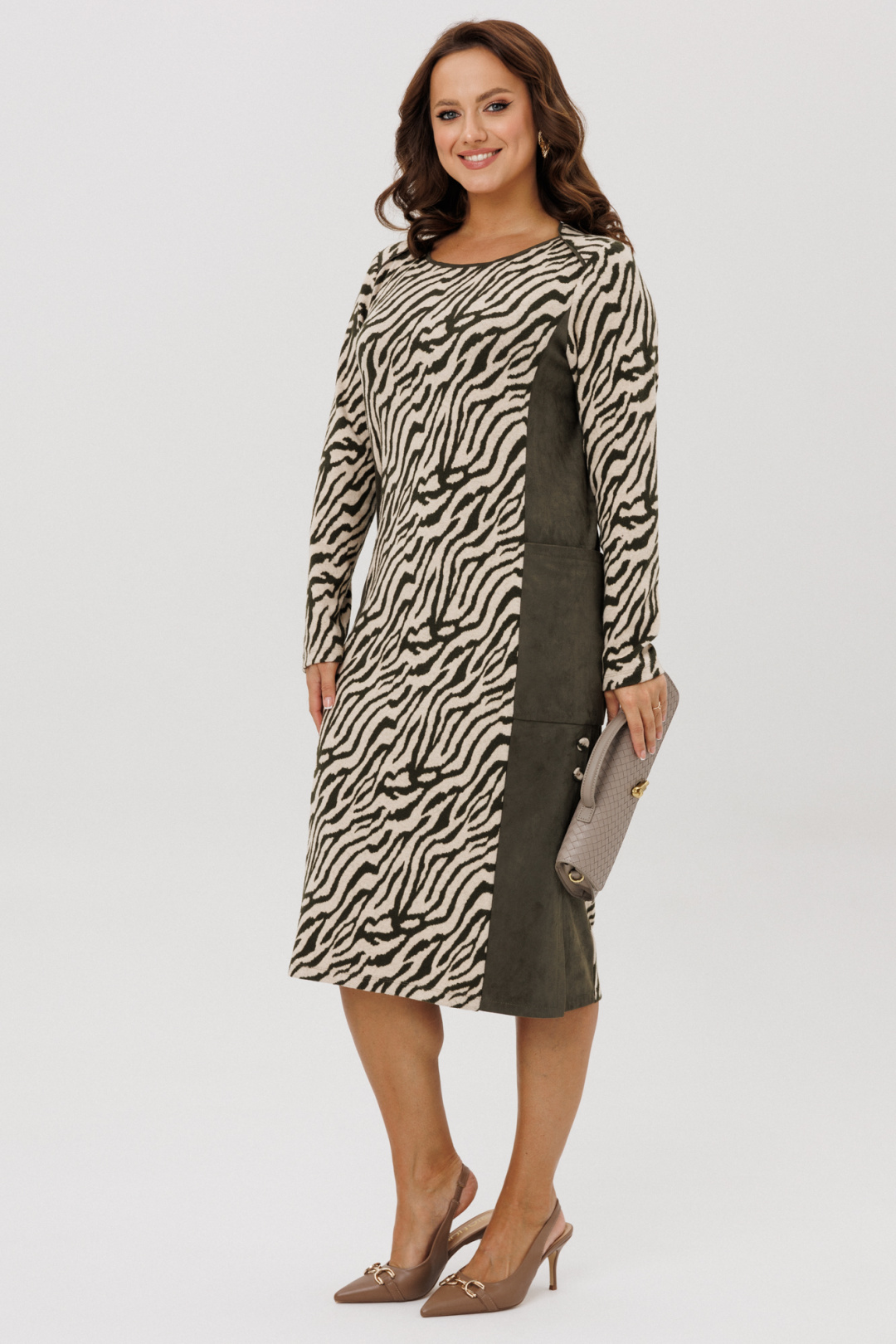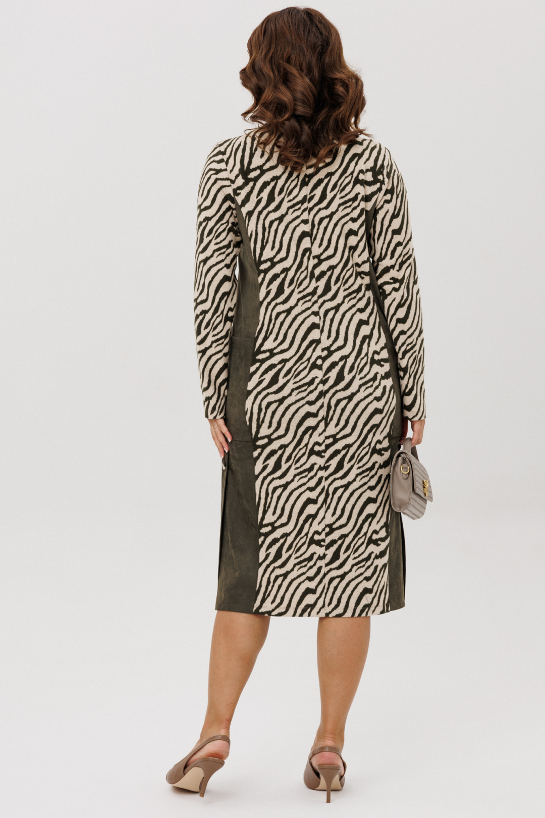 Цвет: зебра бежево-зеленая. По бокам платья вставки хаки (олива).
