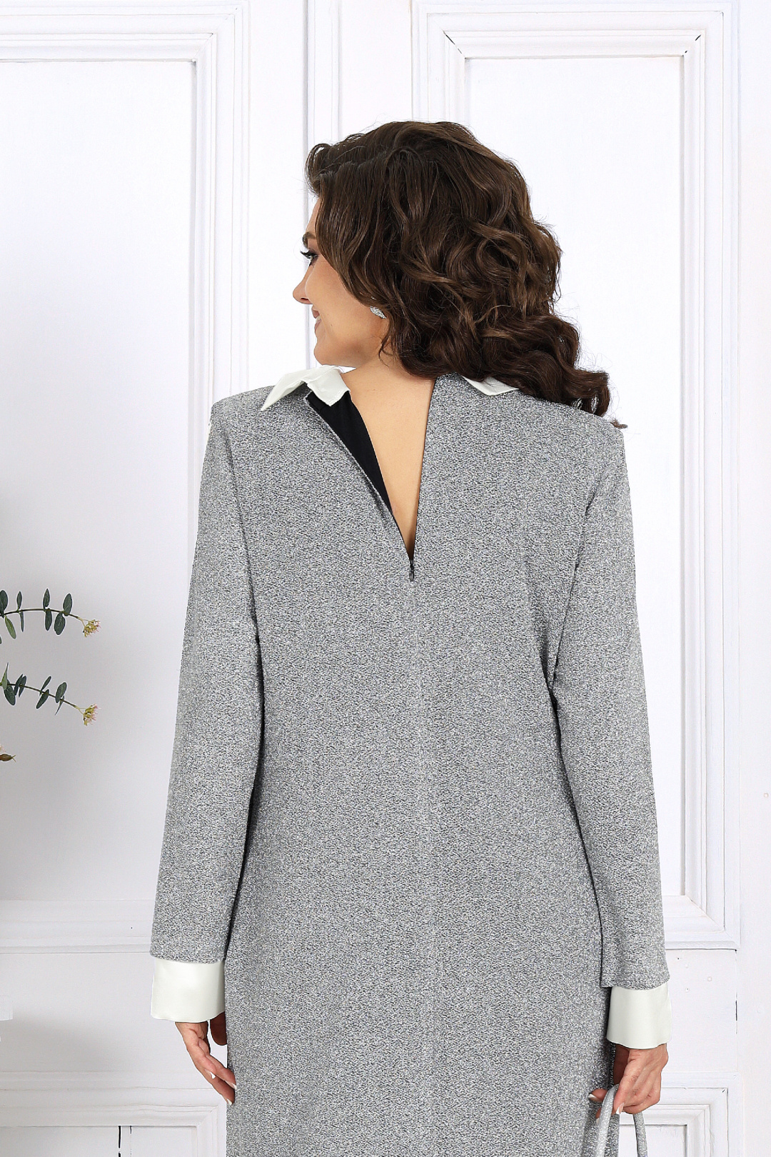 Это платье станет прекрасным выбором для вечерних мероприятий, деловых встреч или особых случаев, когда хочется быть уверенной в себе и выглядеть восхитительно. Выполненное из трикотажного полотна с изысканной фактурой и блеском люрекса, оно привлекает взгляд и подчеркивает вашу индивидуальность. Воротник и манжеты легко снимаются, превращая платье из нарядного вечернего в более повседневный вариант.