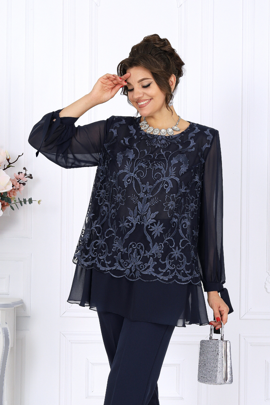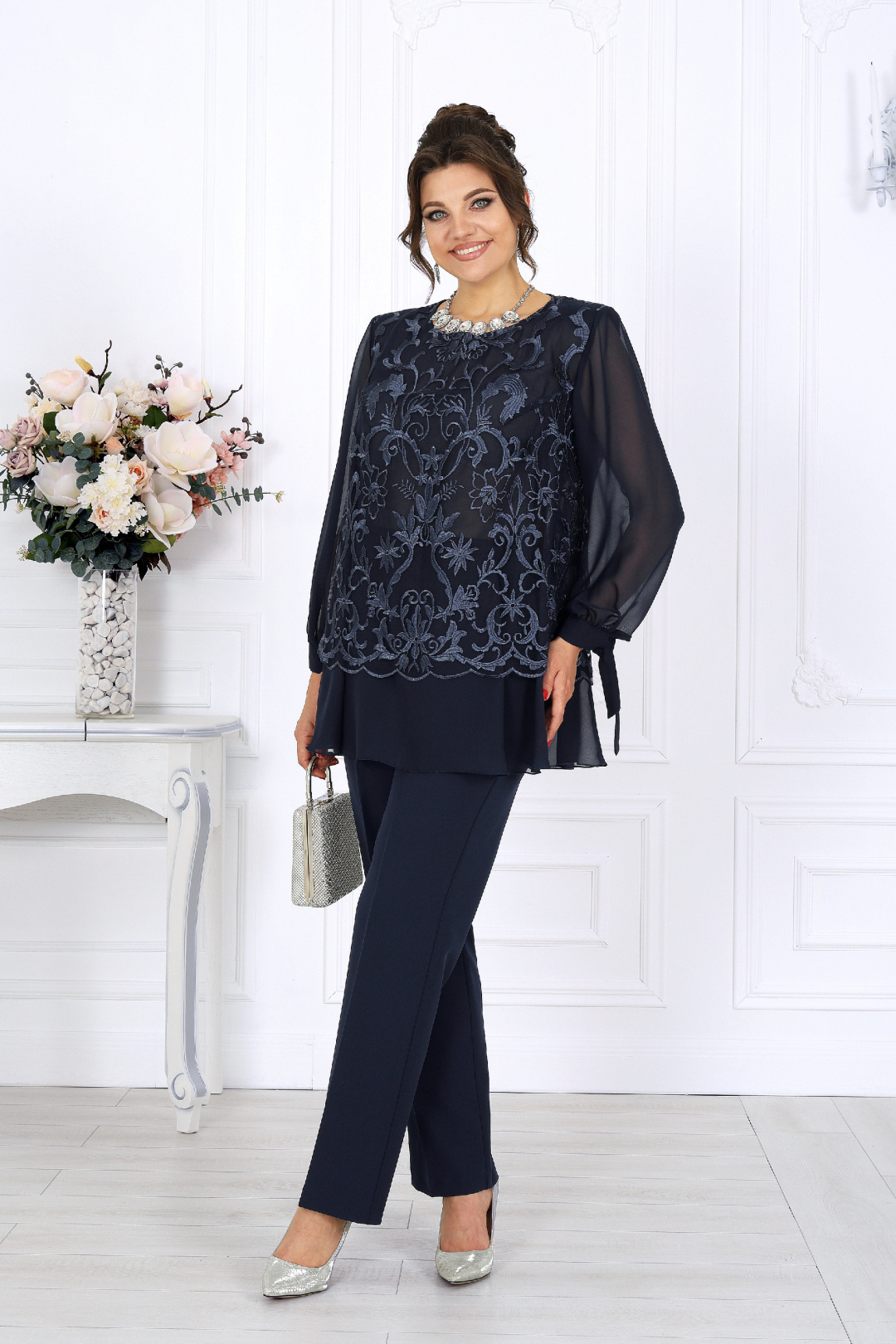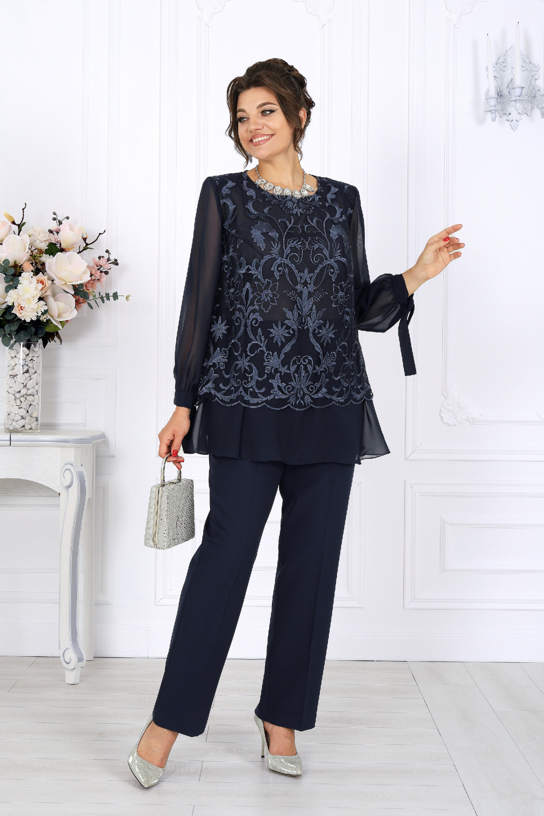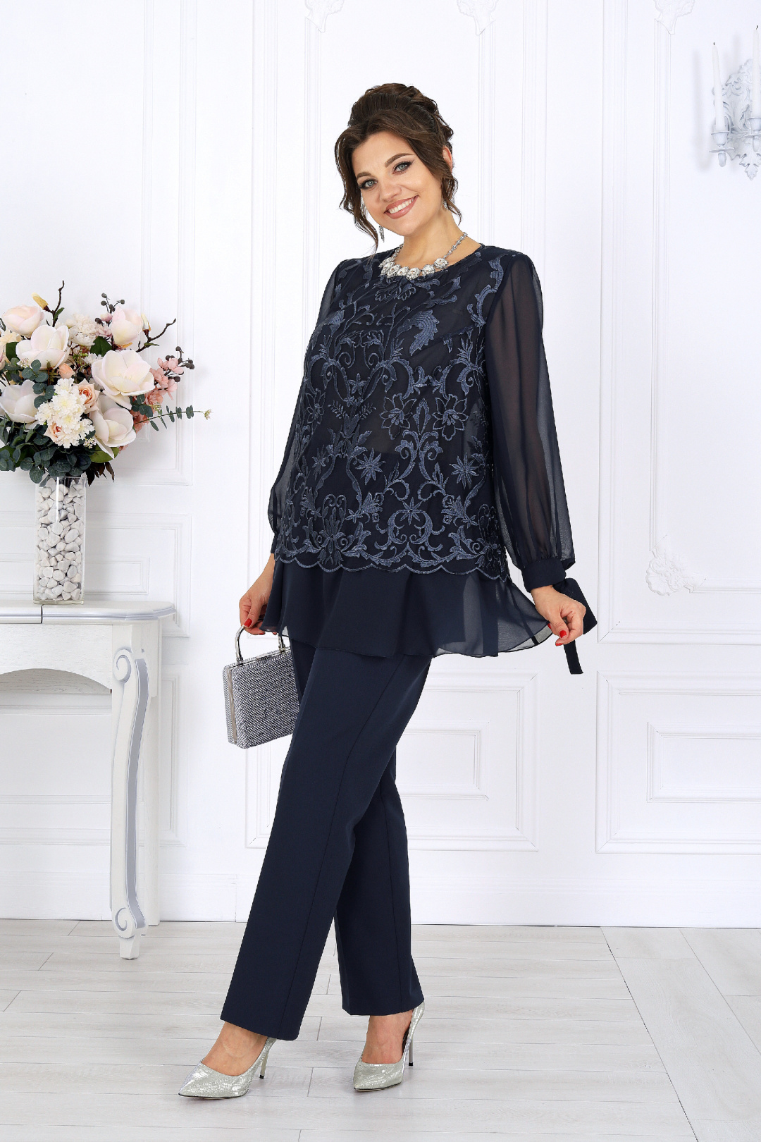 Этот нарядный костюм для полных женщин станет вашим универсальным решением — он уместен и на праздничном вечере, и в офисной обстановке. Модель гармонично сочетает в себе торжественность и лаконичность, поэтому одинаково эффектно смотрится как с лодочками и клатчем, так и с более сдержанными аксессуарами.