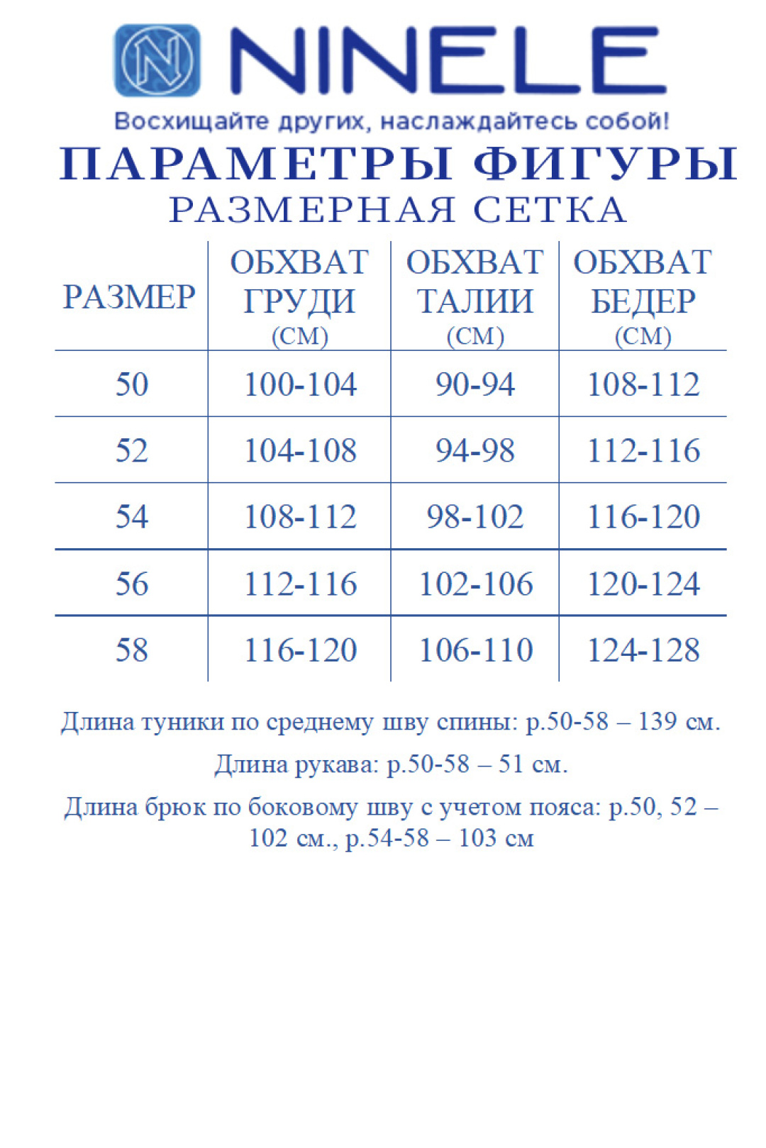 Состав: туника - полиэстер 70%, люрекс 25%, спандекс 5%; подкладка туники – ПЭ 100%; брюки – полиэстер 97%, спандекс 3%
